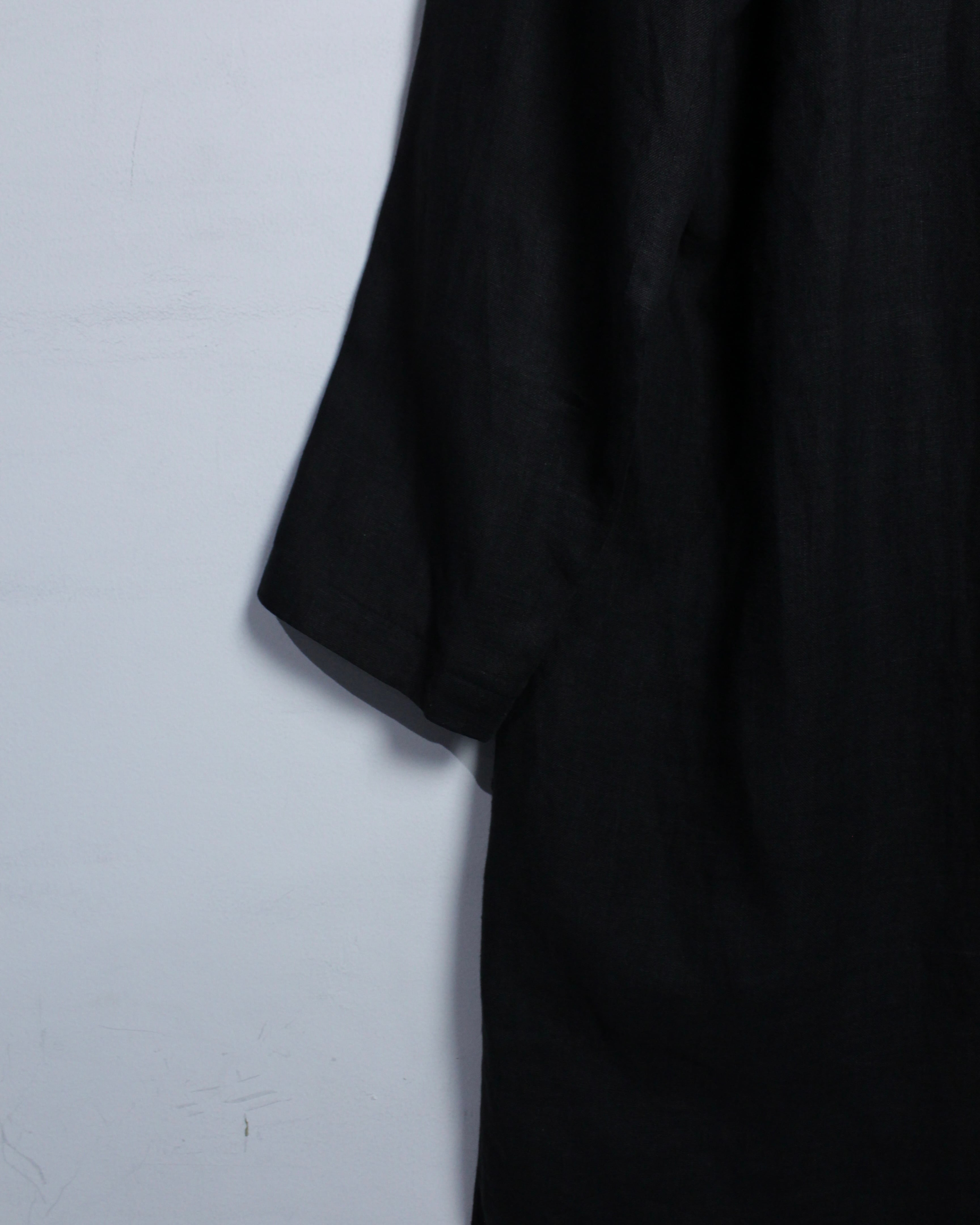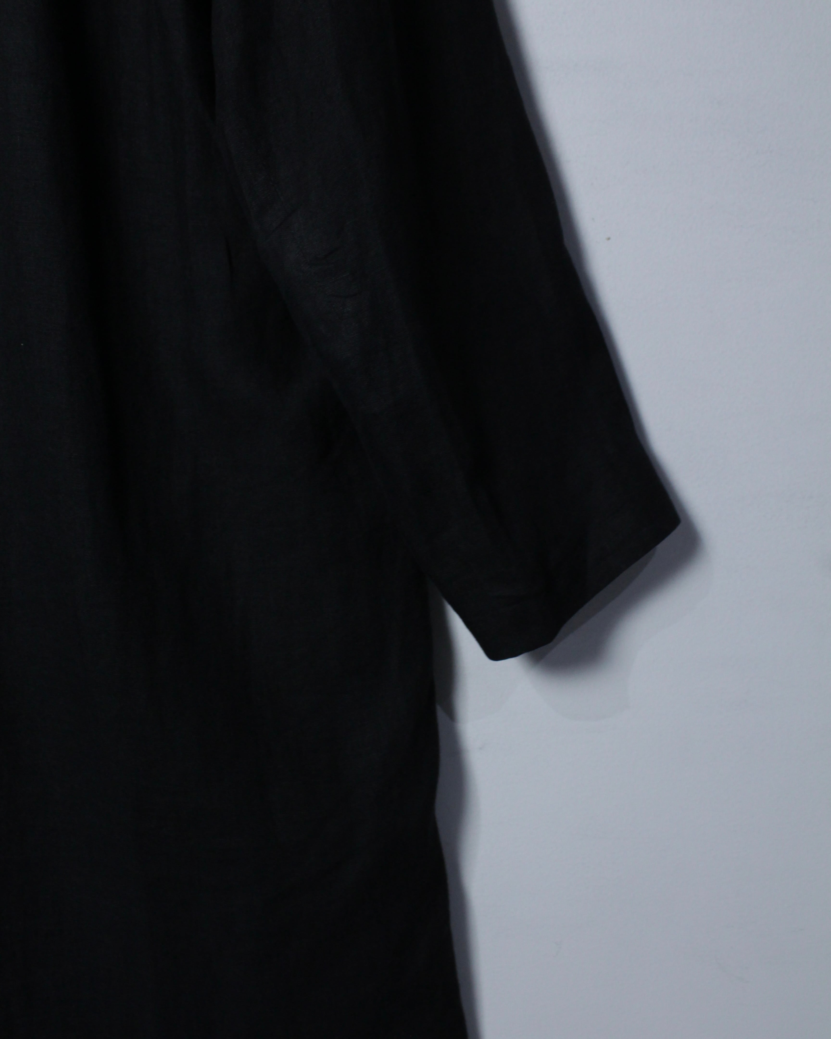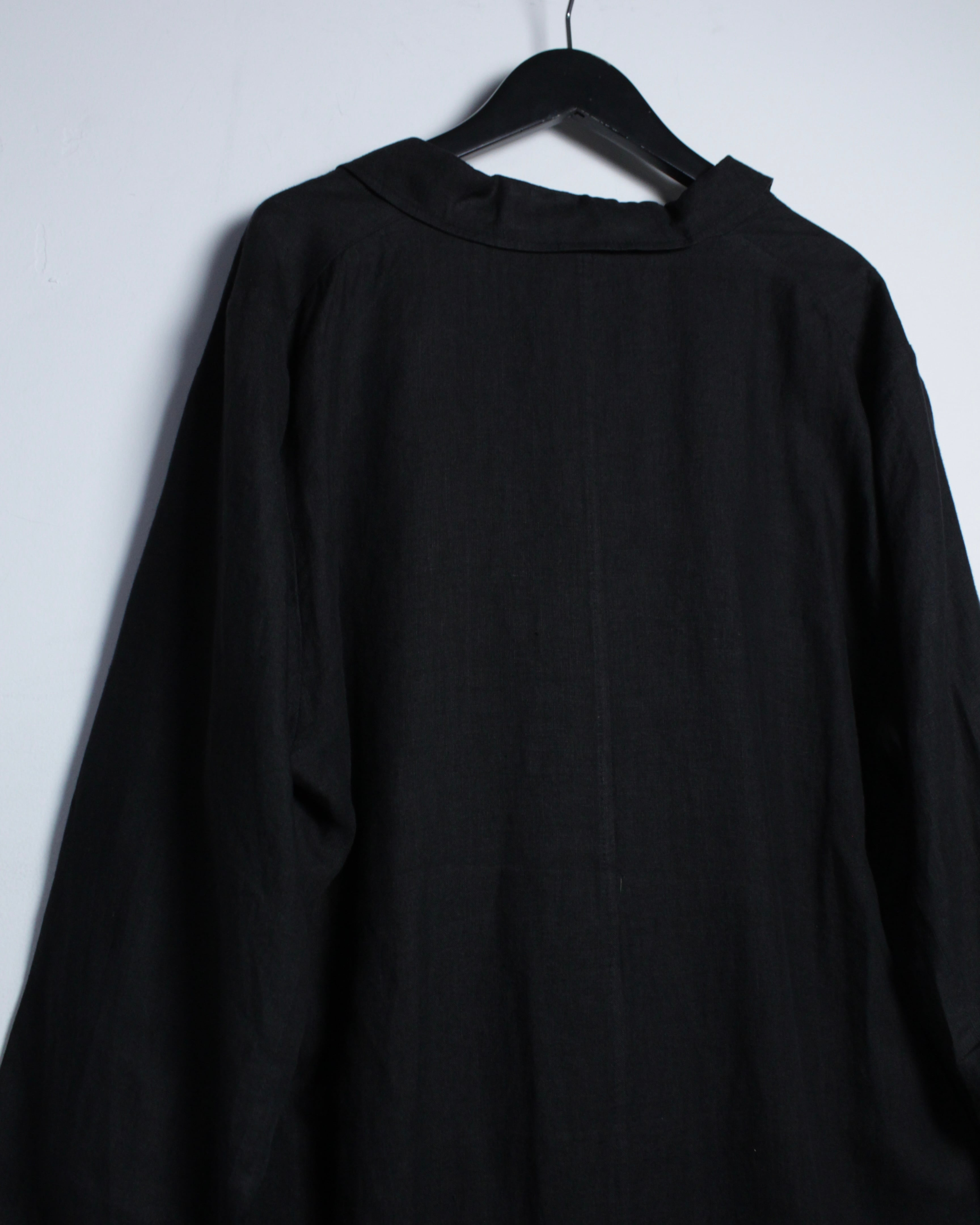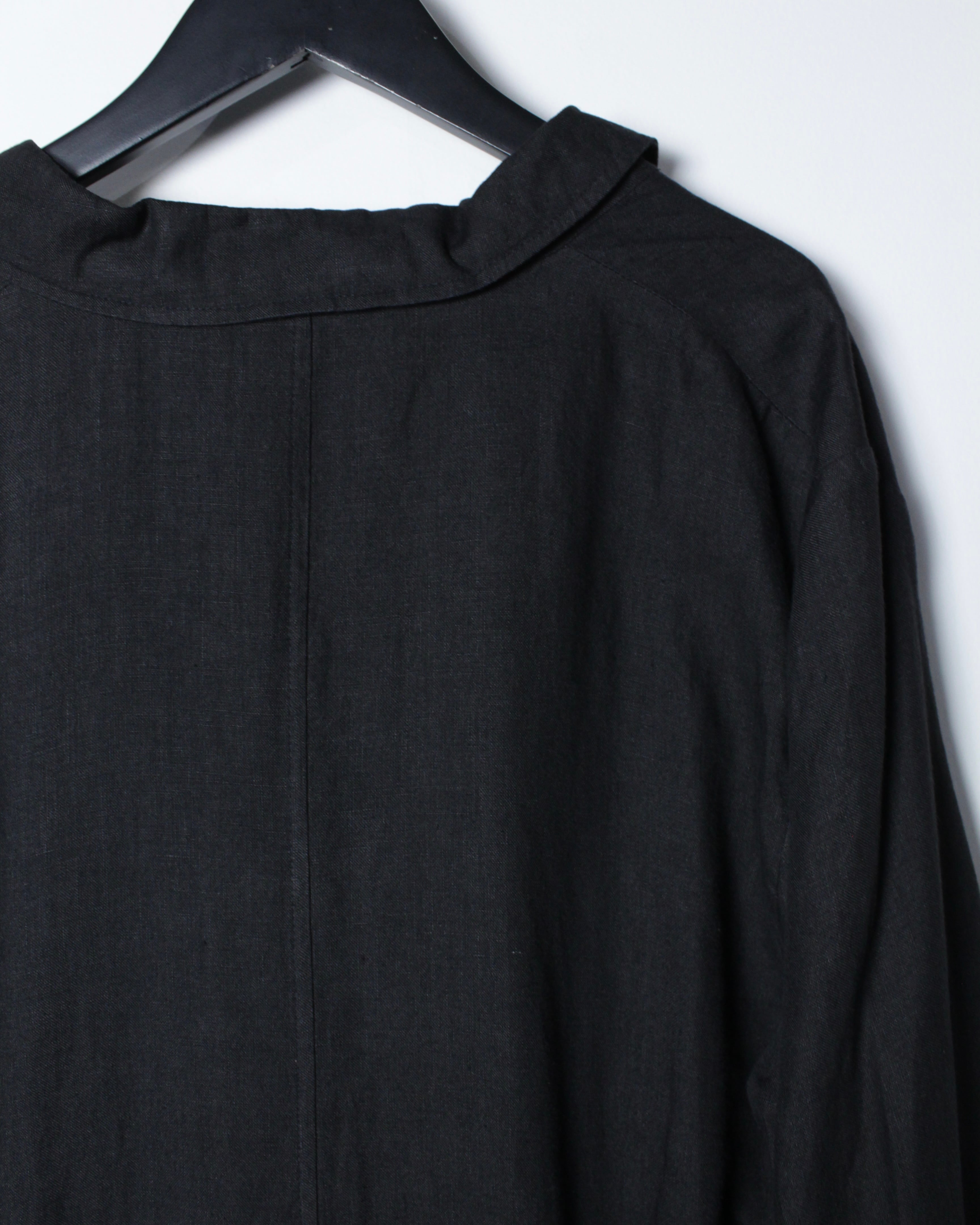 着込むほど柔らかく、着る人の体に馴染んでいくリネン。黒色ということもあり、汎用性が高く末永くお付き合いして頂ける逸品です。