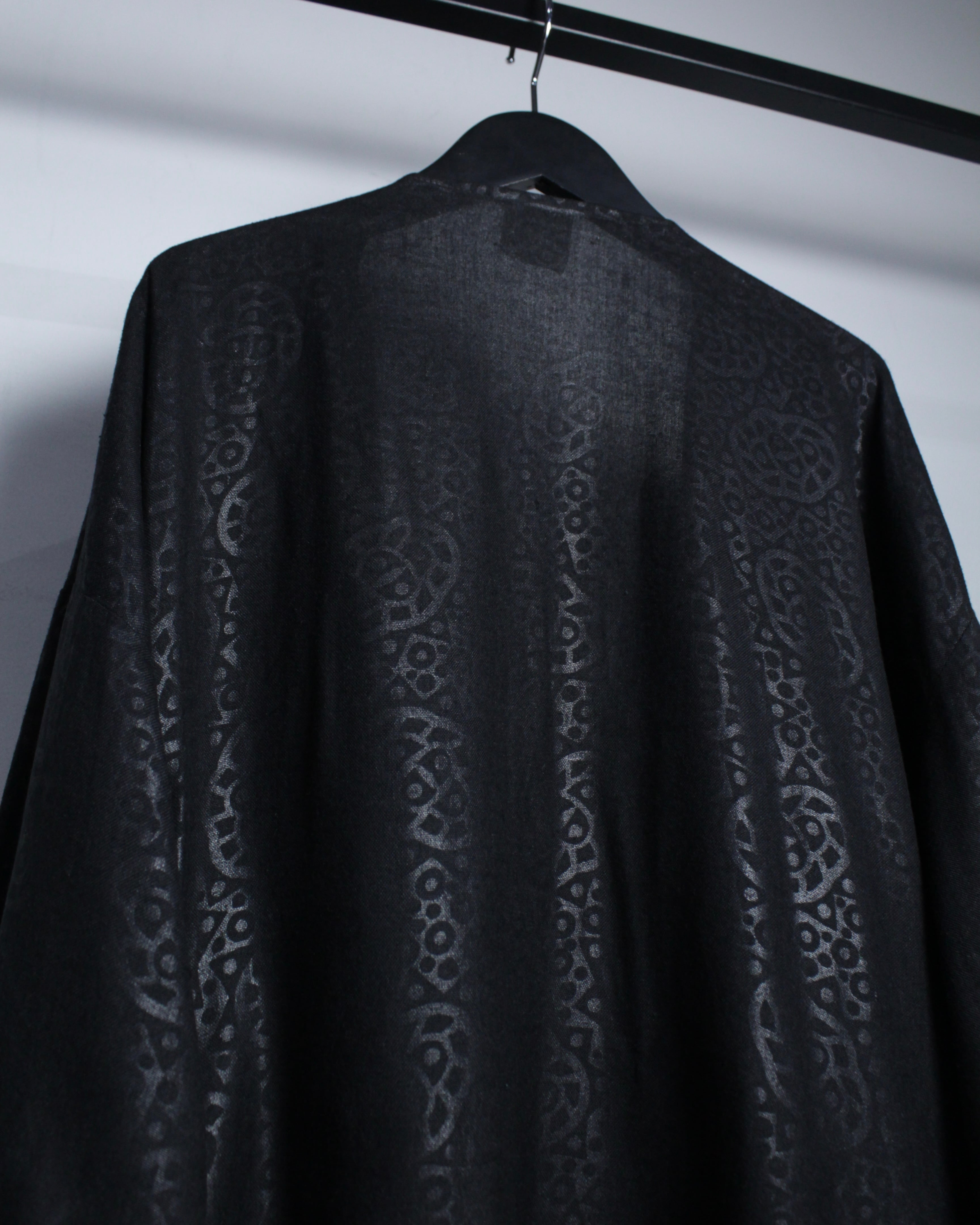 ゆったりとしたシルエットで抜け感を持たせつつ、柄のインパクトでしっかりと主張。羽織のシルエットとモノトーンのカラーリングで、モードなスタイリングに相性抜群。