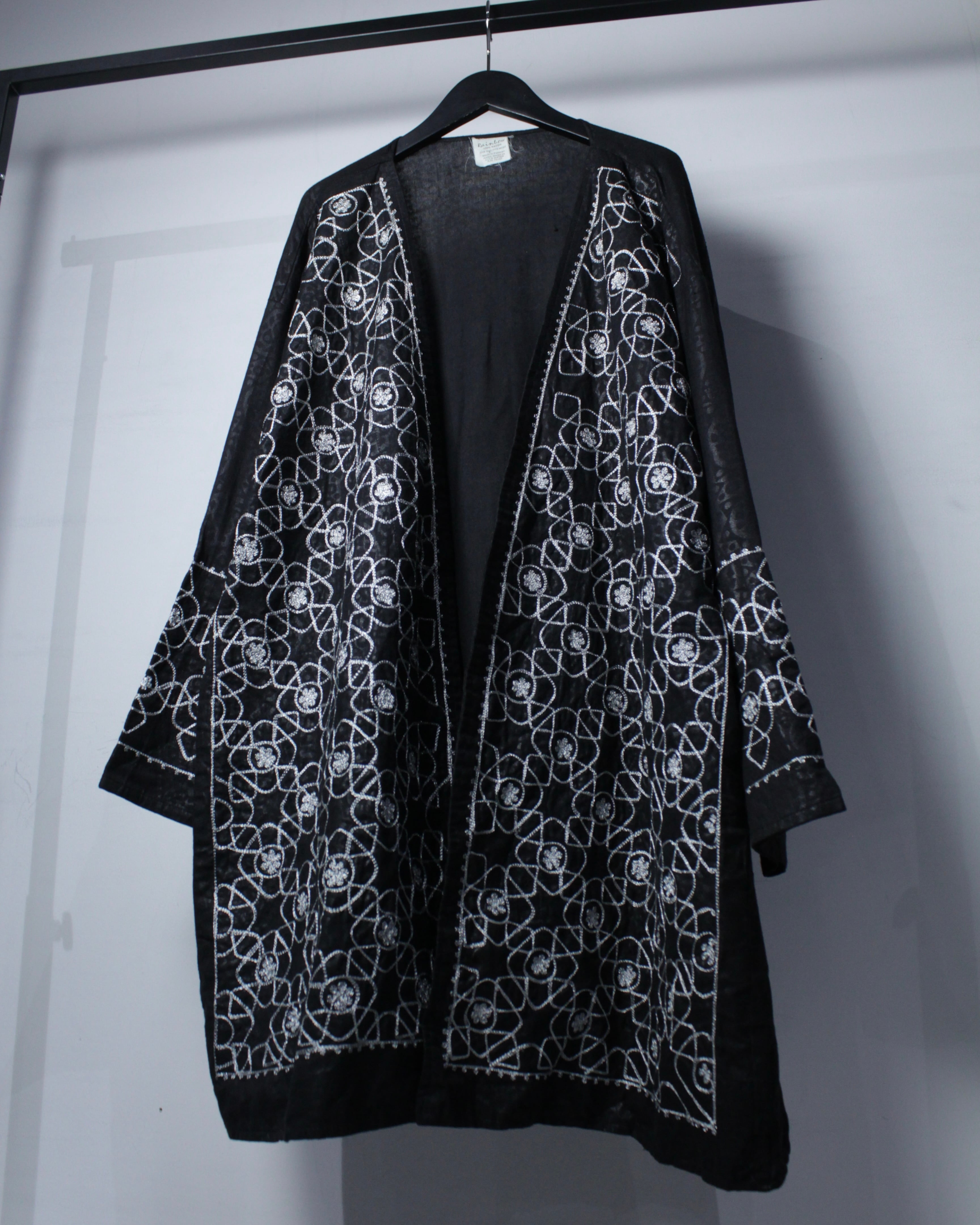 プリント×刺繍でデザインに奥行きを持たせた、羽織ジャケットの逸品。