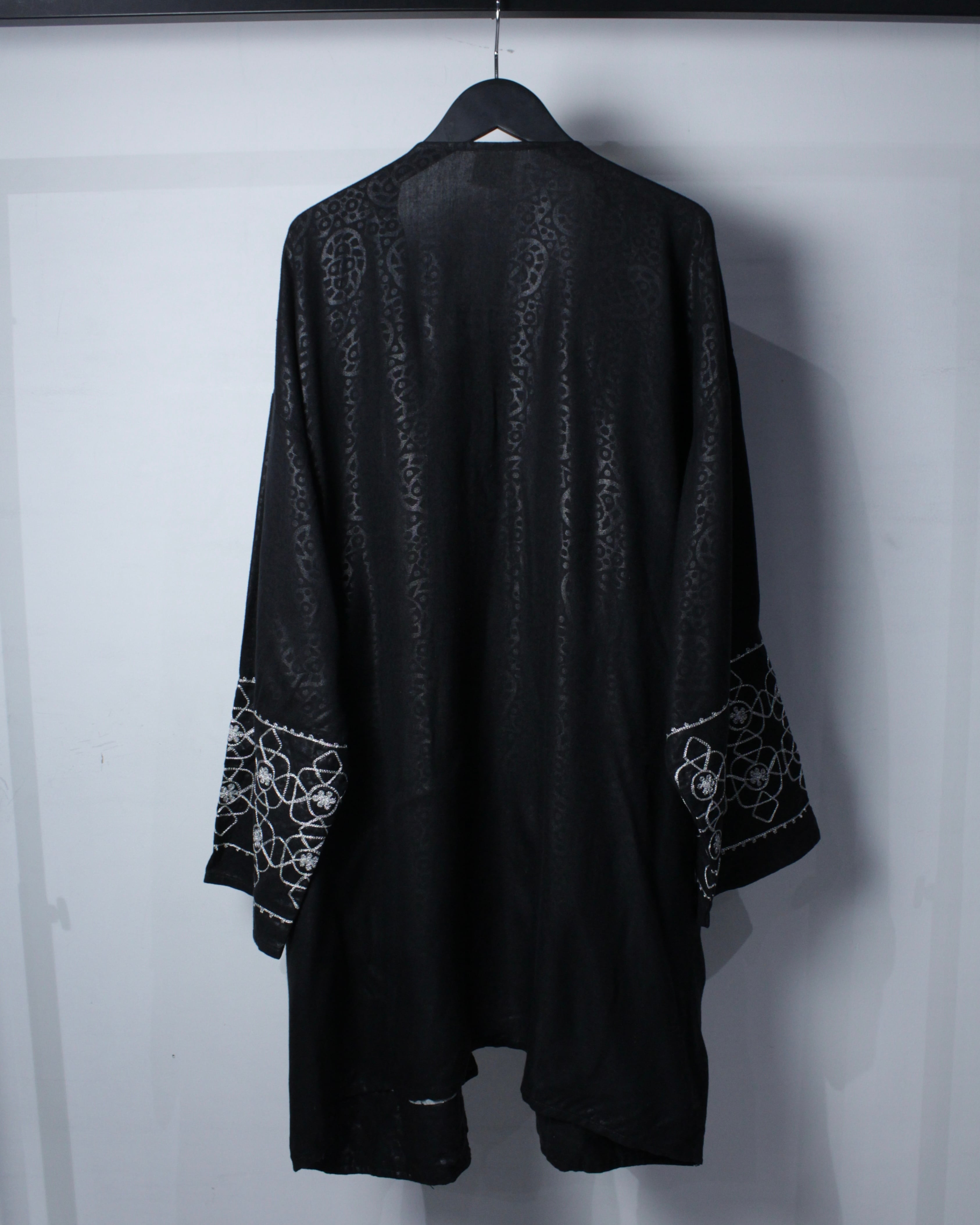 プリントと刺繍が織りなす表情が唯一無二の存在感を放つ、スペシャルな羽織ジャケットです。