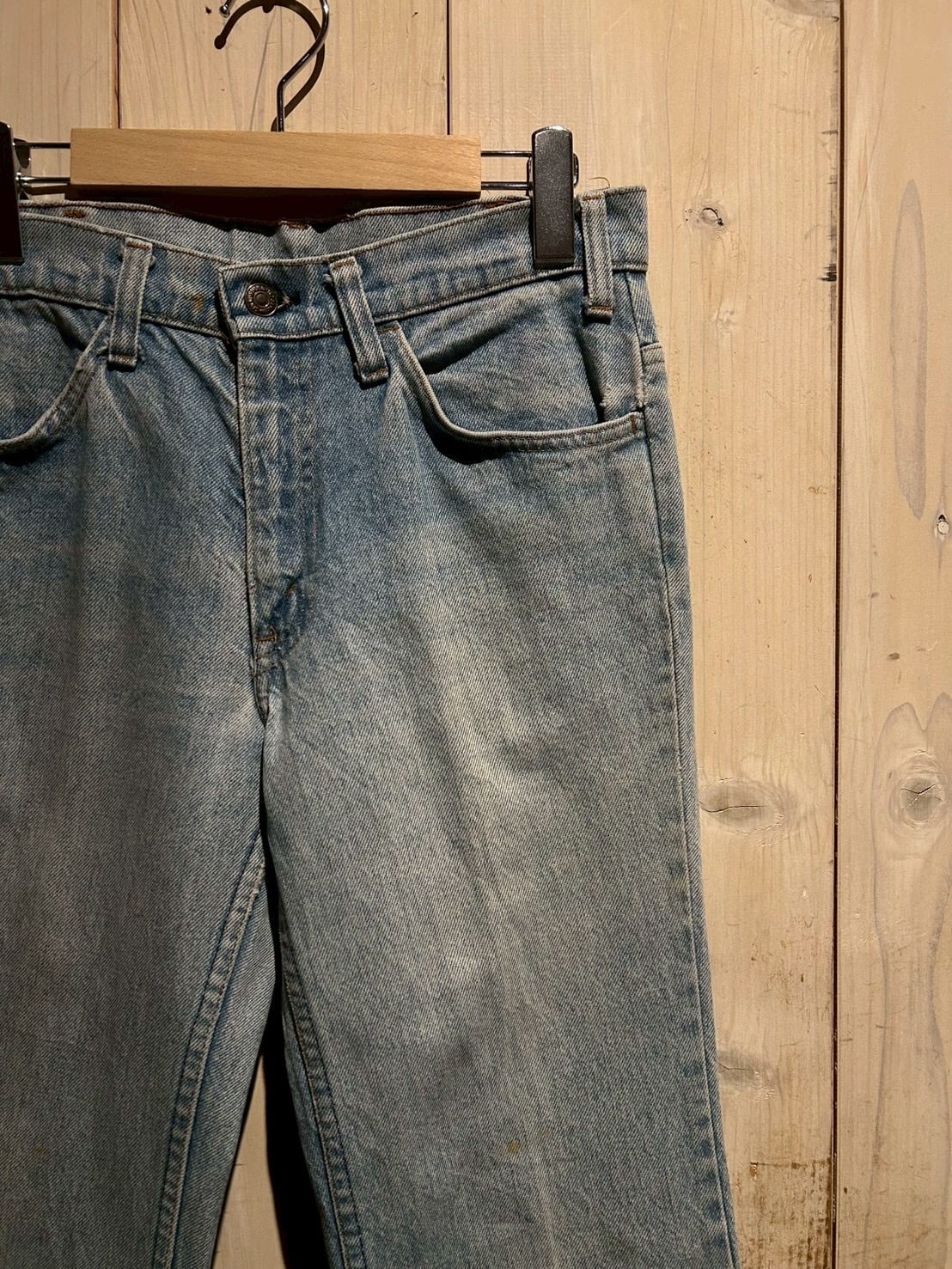 しっかりと履き込まれたことで生まれた、淡くフェードしたアイスブルーの色味が◎ヴィンテージ特有のムラ感やアタリが表情として現れ、一本でスタイルに奥行きを与えてくれます。