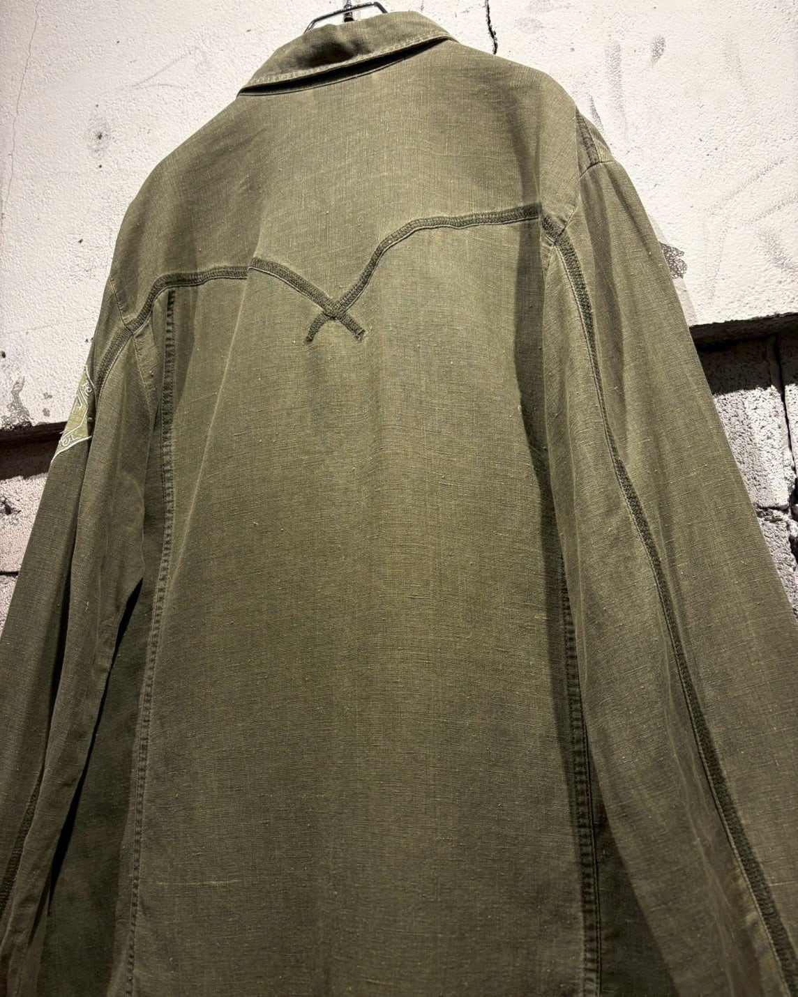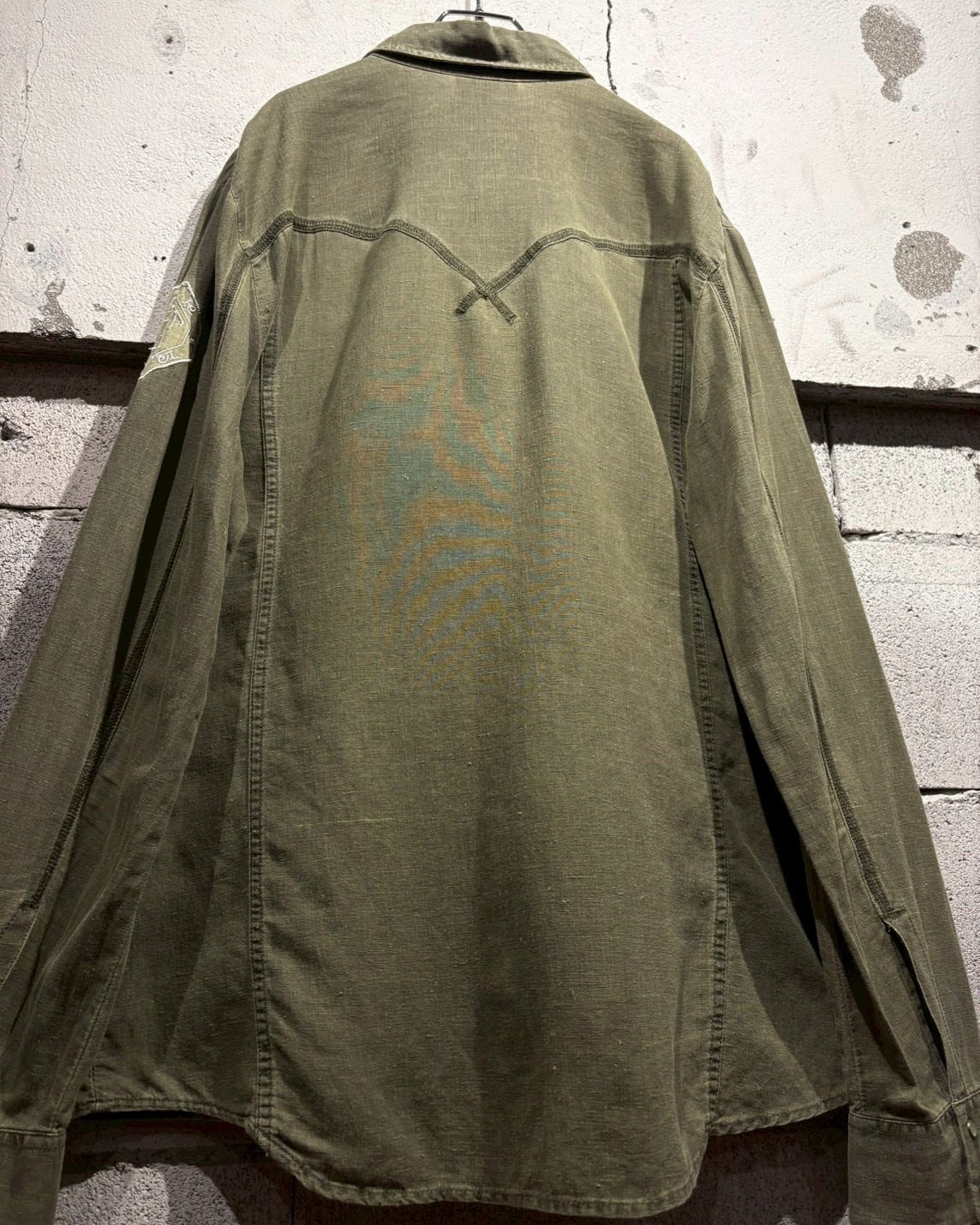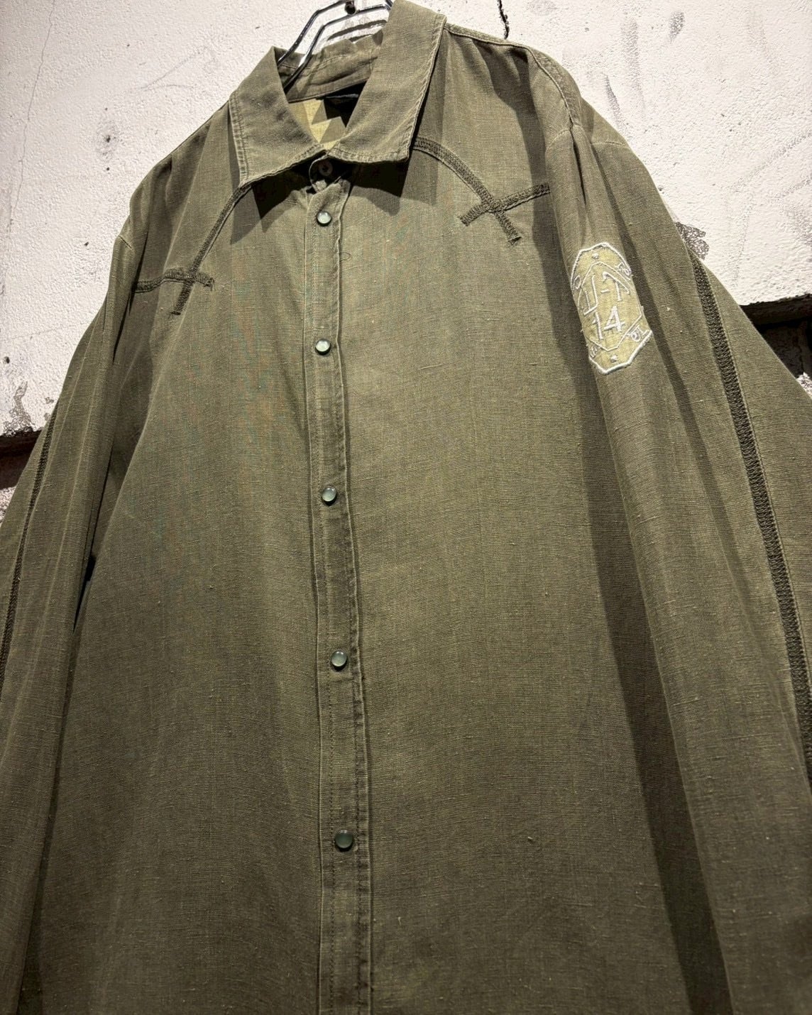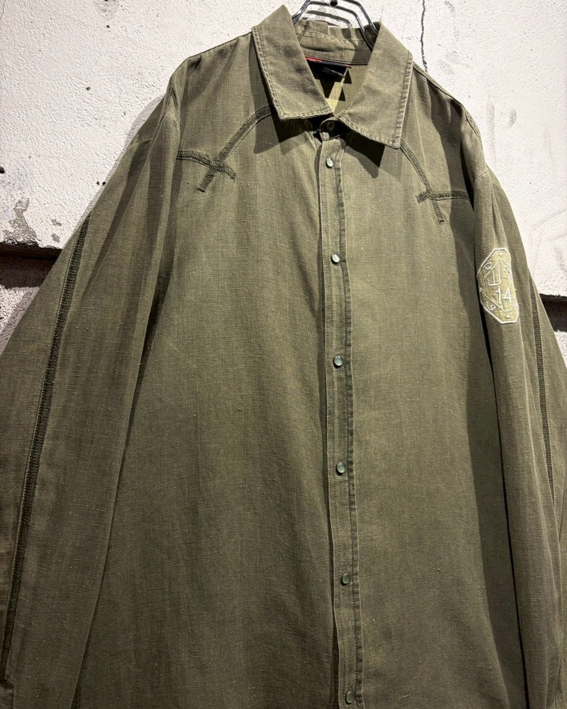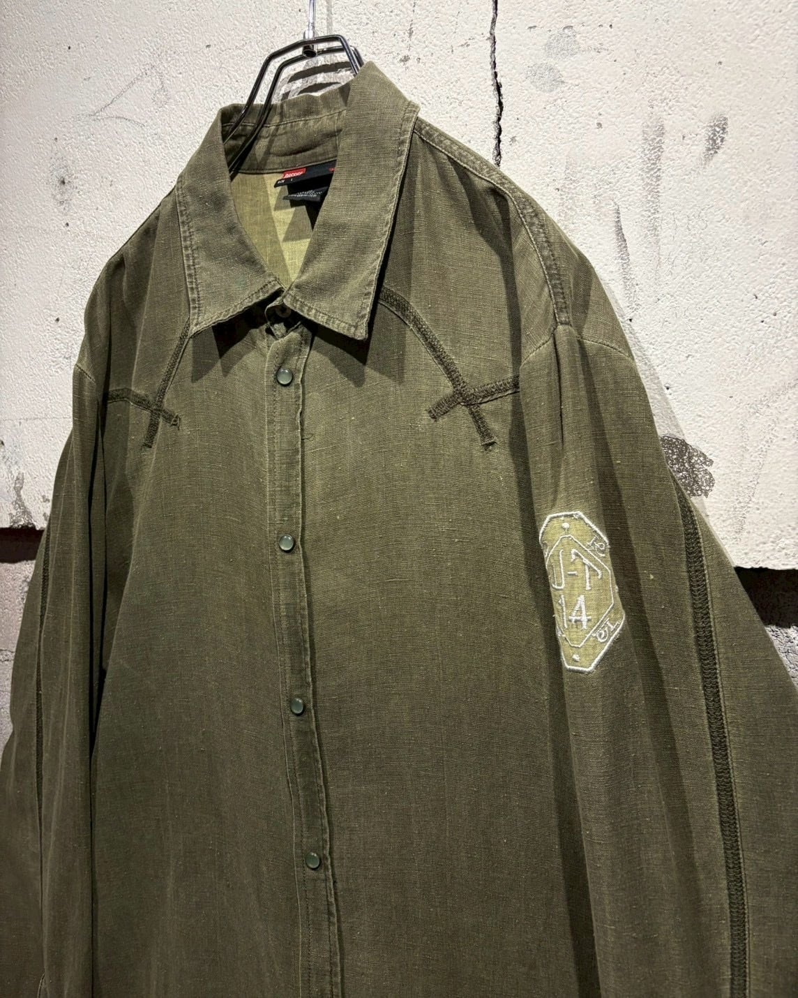 左腕にはエンブレム調の刺繍をON。切り替え×ステッチによって施されたヨークに、フロント&袖口のスナップボタンと、ウエスタンのディテールをミニマルに落とし込んだデザインで、このMix感が洒落てます。