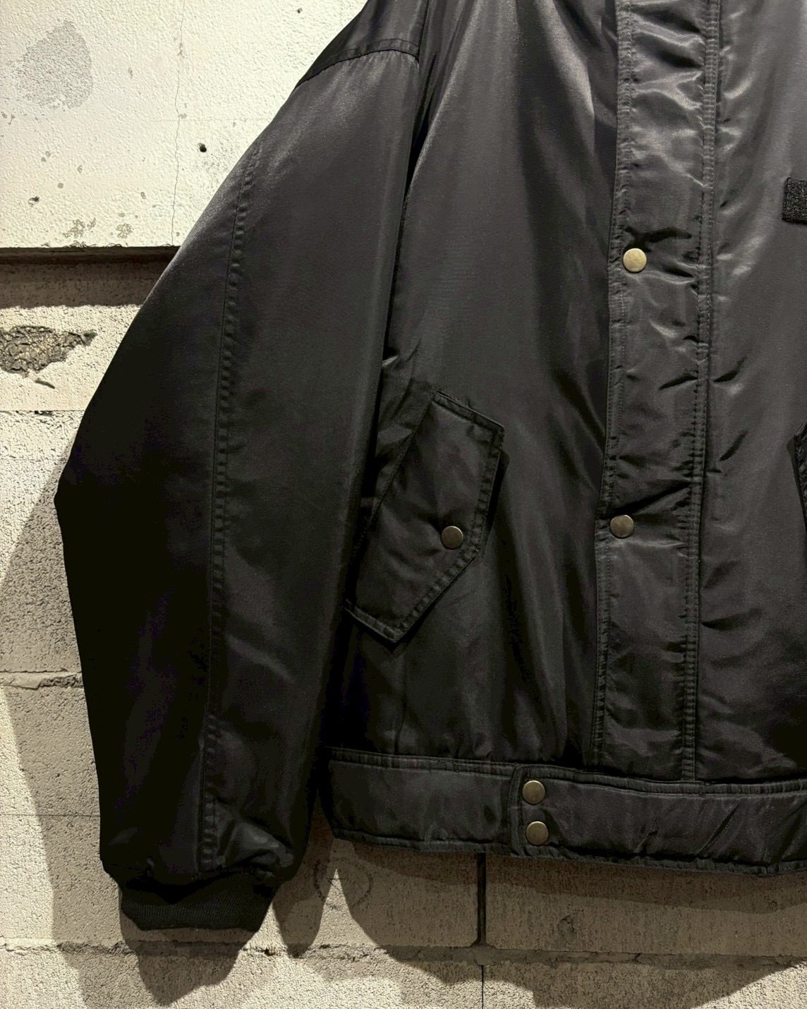 フロントにはスナップボタンを採用し、着脱のしやすさとミニマルな表情を両立。胸元にはジップポケット、随所に走る白のパイピングが全体を引き締め、デザインの輪郭を際立たせるアクセントとして効いています。
