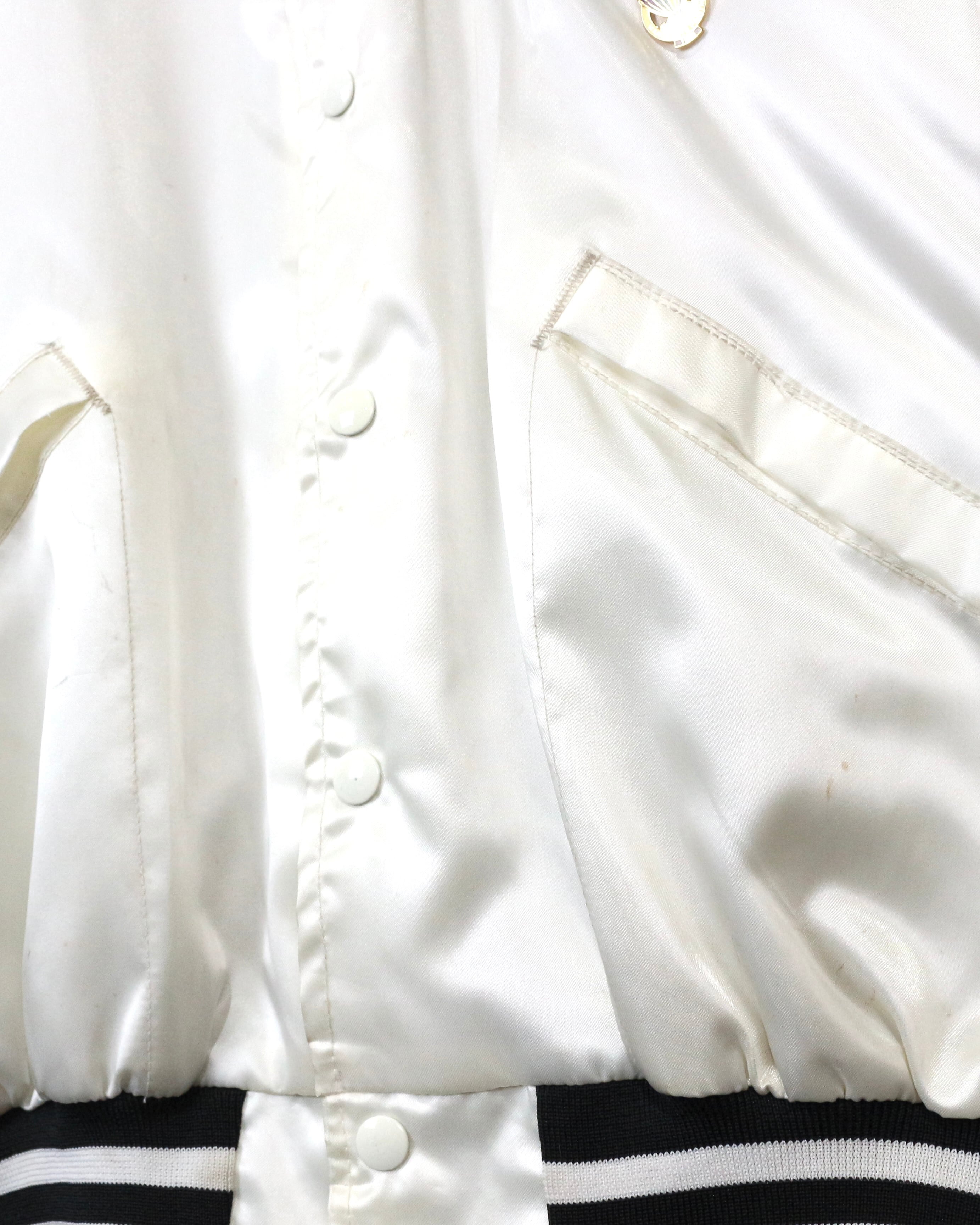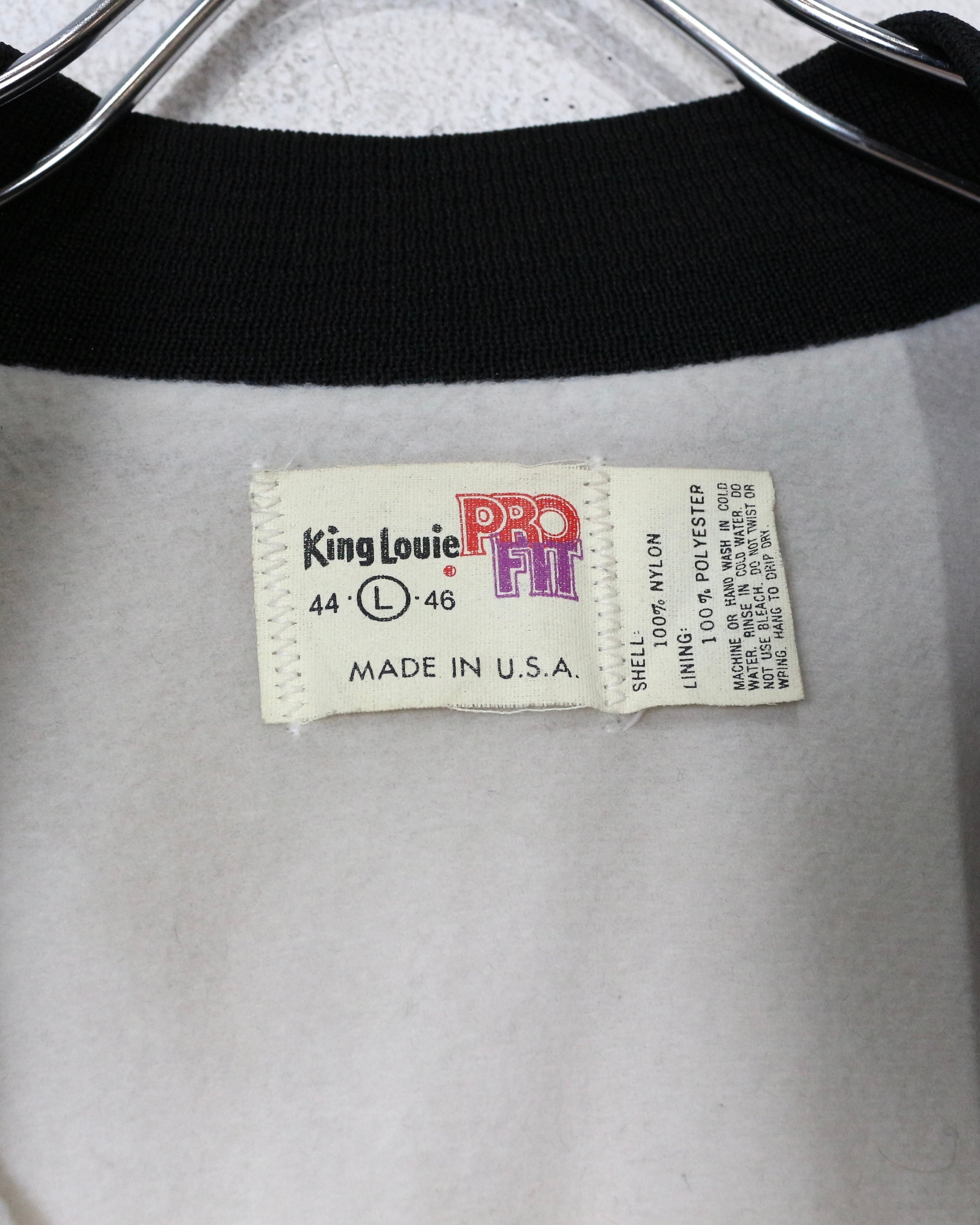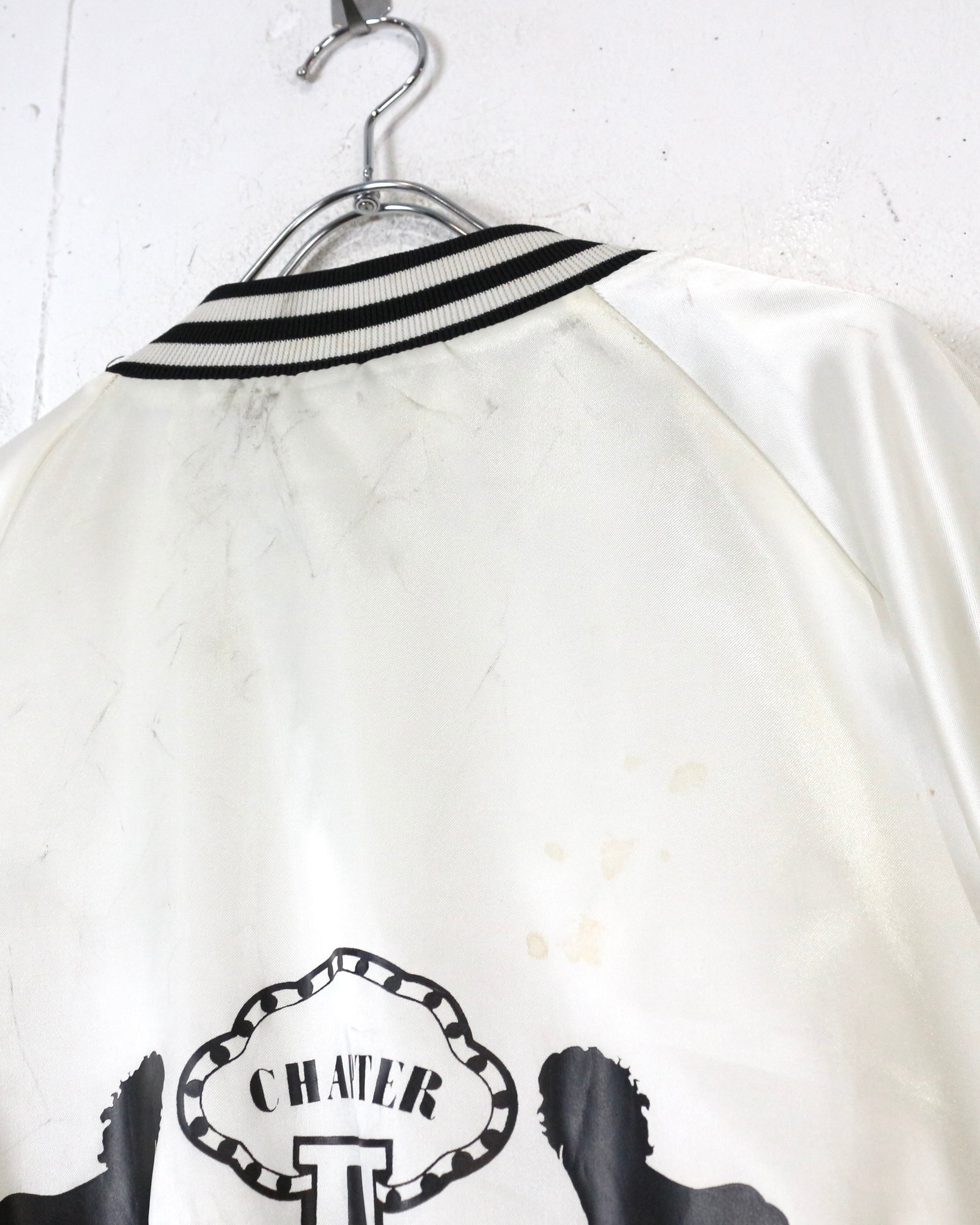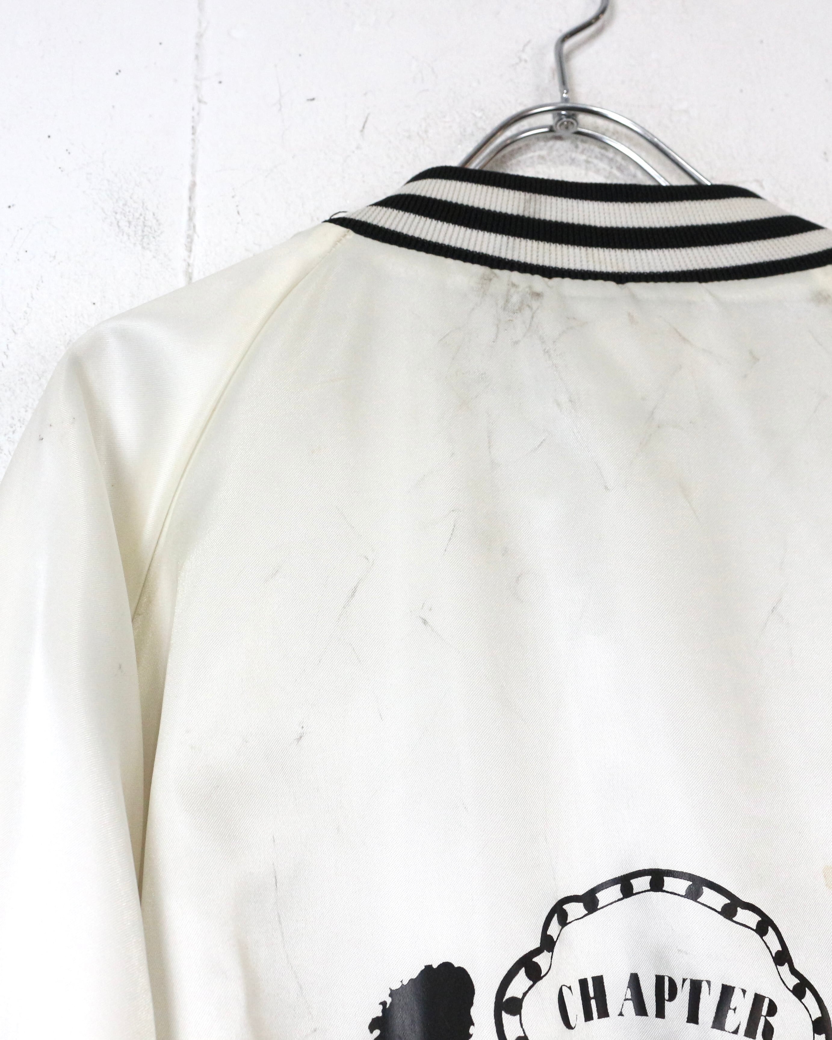 ローカルラウンジのスタッフジャケットとして使用されていた背景を持つ1着。フロントにはピンズを贅沢に配置し、当時の背景が読み取れたりと、ヴィンテージならではの1点物の表情へと昇華されています。