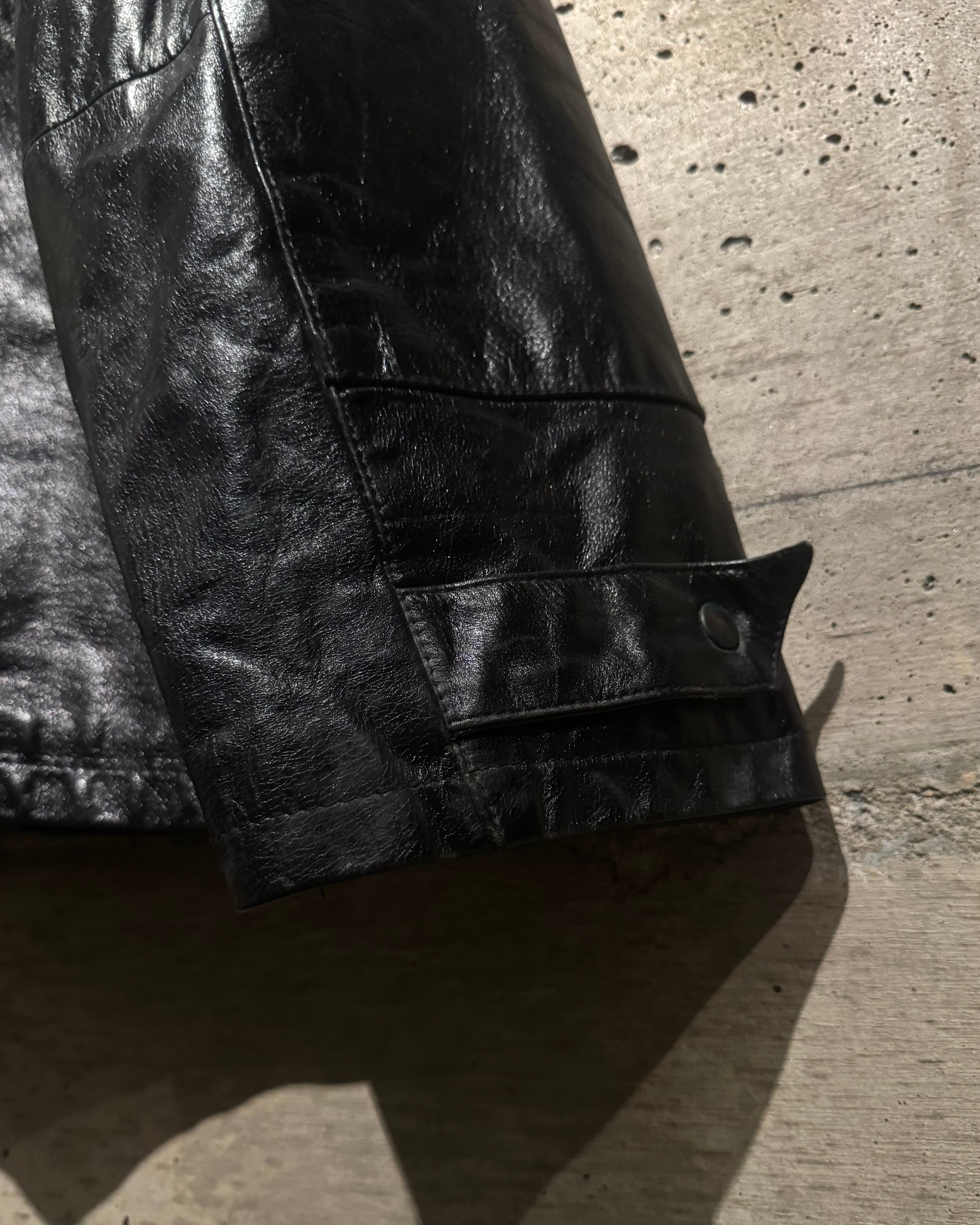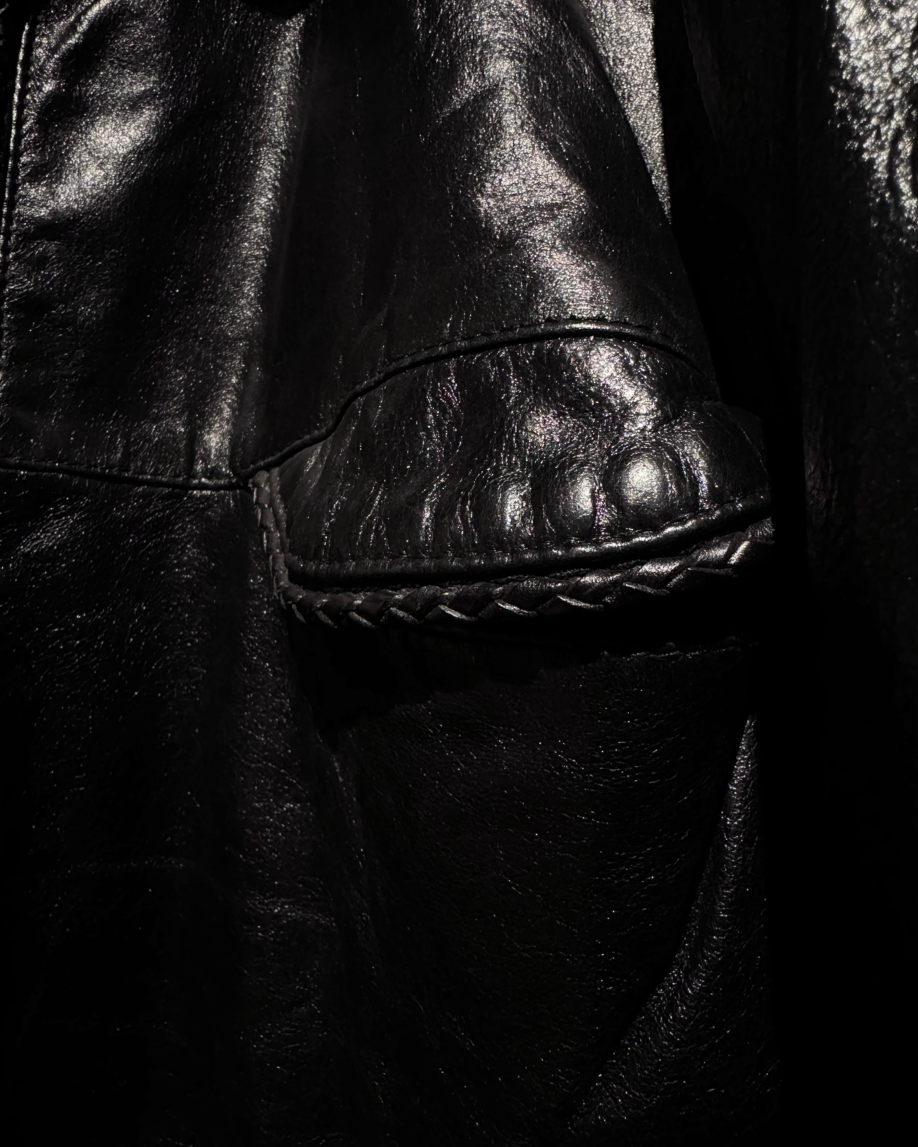 艶やかな光沢を帯びたブラックレザーを全面に使用し、しなやかさと重厚感を兼ね備えたボディで、イタリアメイドならではの上質な革質が、着用と共に深みを増していきます。