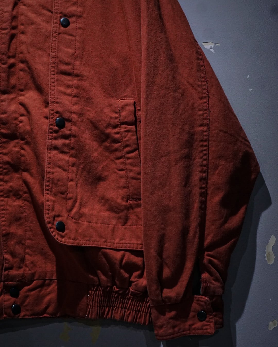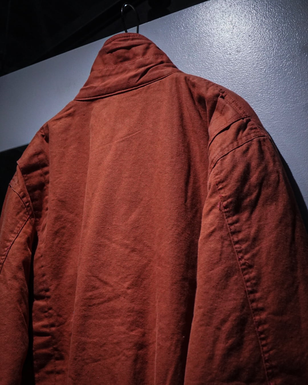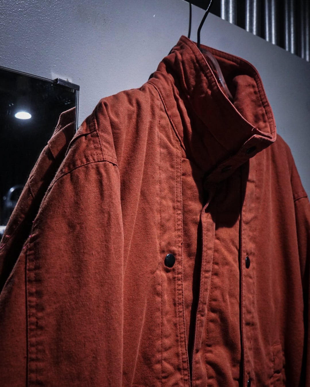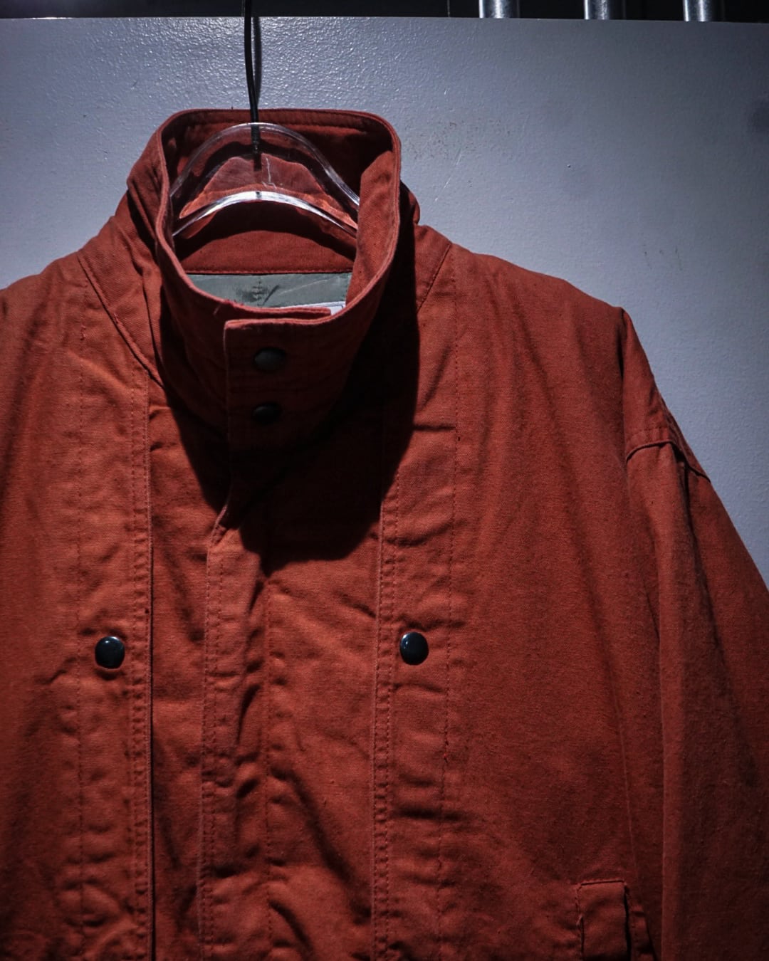 ヴィンテージのダック地でここまで色残りがあり、パリッとした物は珍しいかと。フロントにはスナップボタンを施したレイヤード風のディテールが立体感を演出しつつ、フロントはジップとスナップの比翼仕立てでミニマルに仕上げたデザインバランスが◎