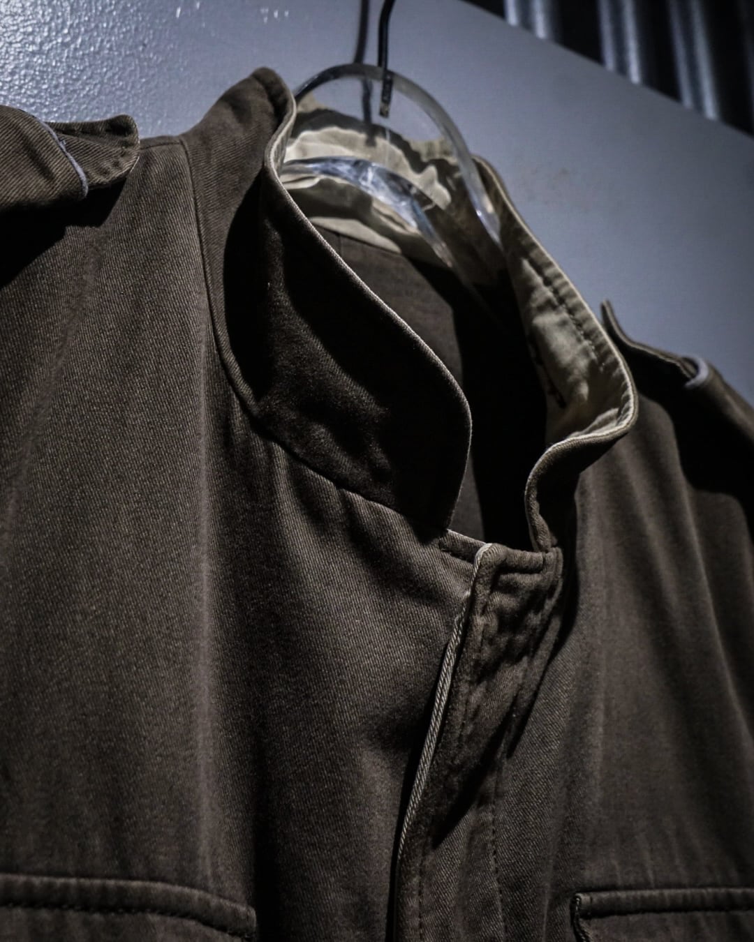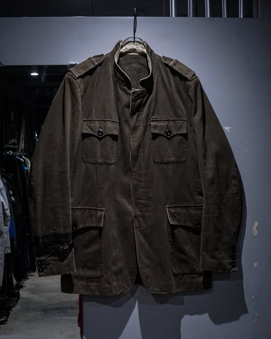 クラシックなミリタリージャケットをベースにしながらも、ブランドらしいモードな解釈が加えられた一着。