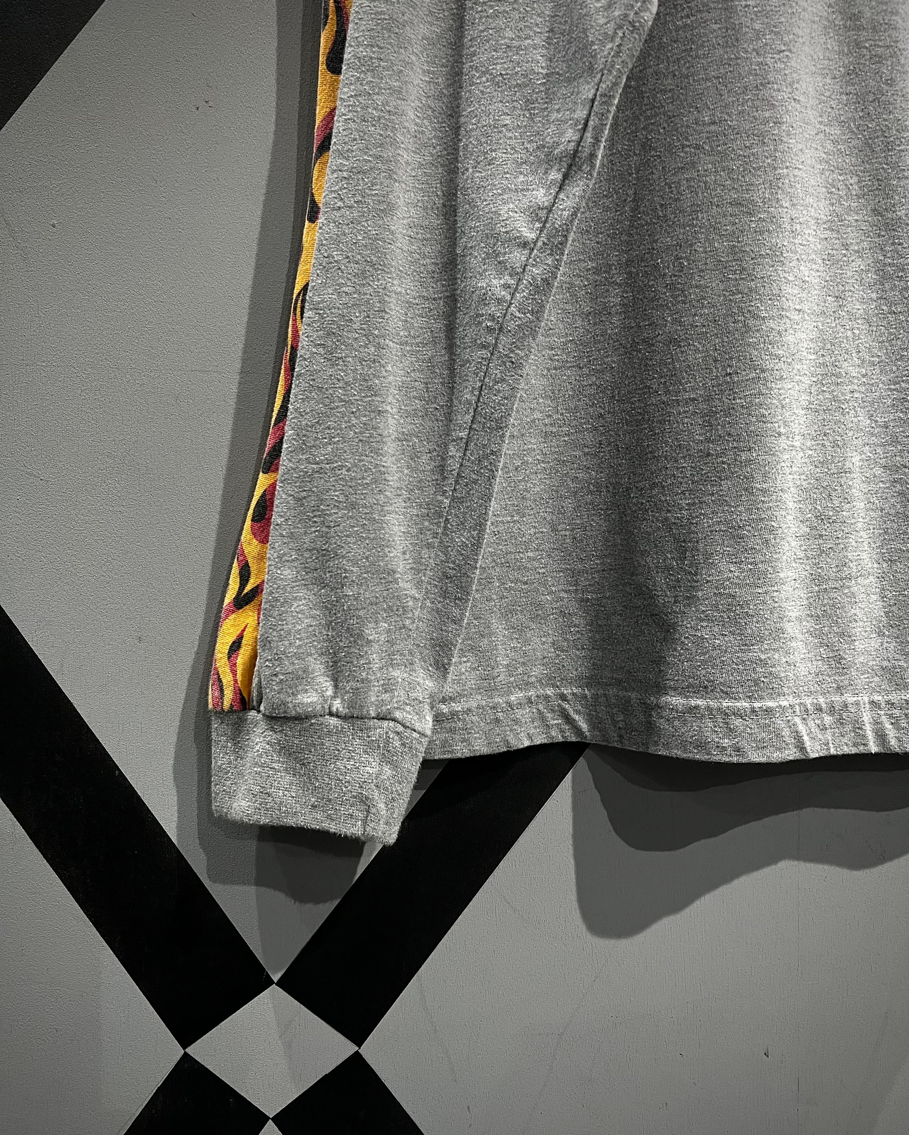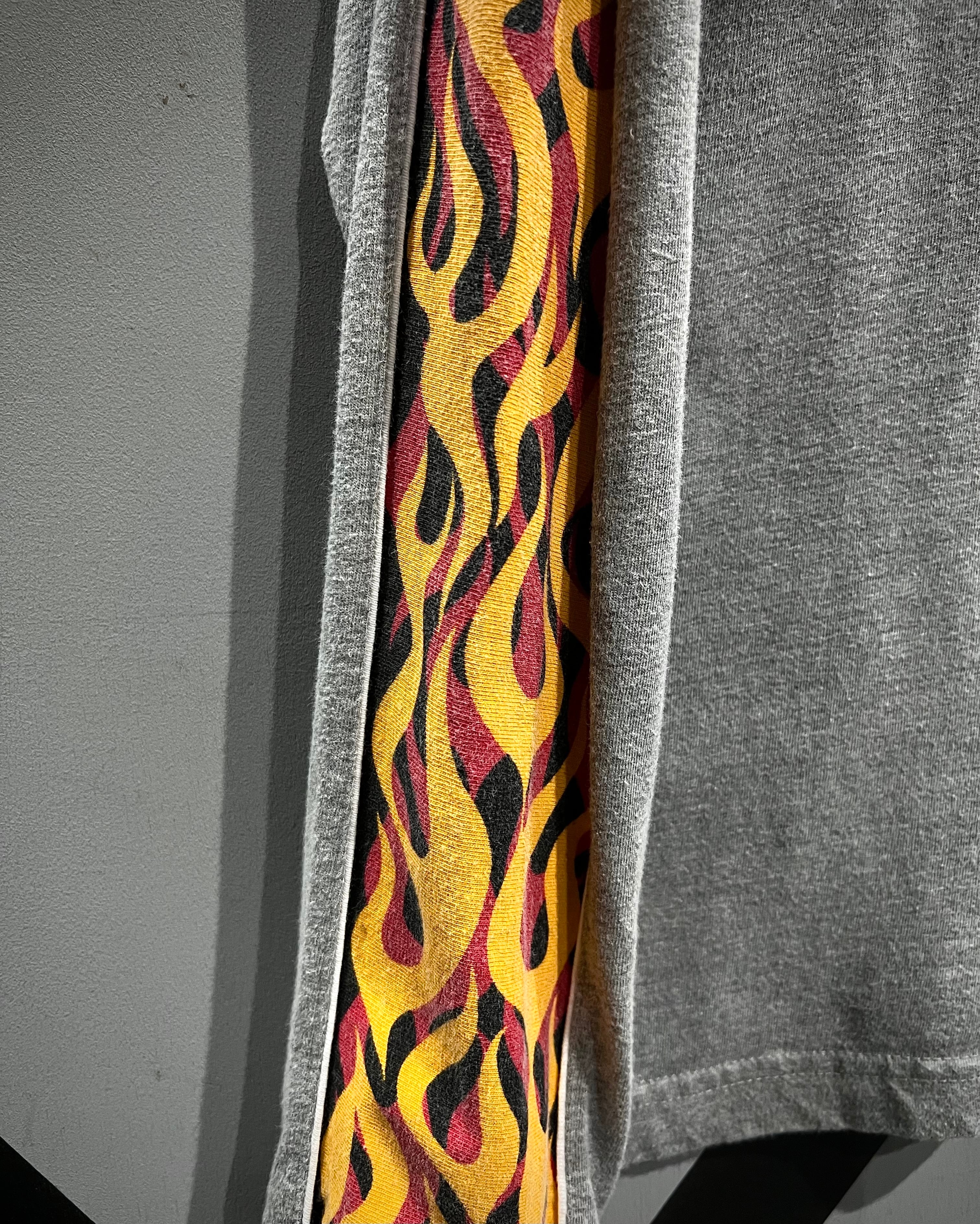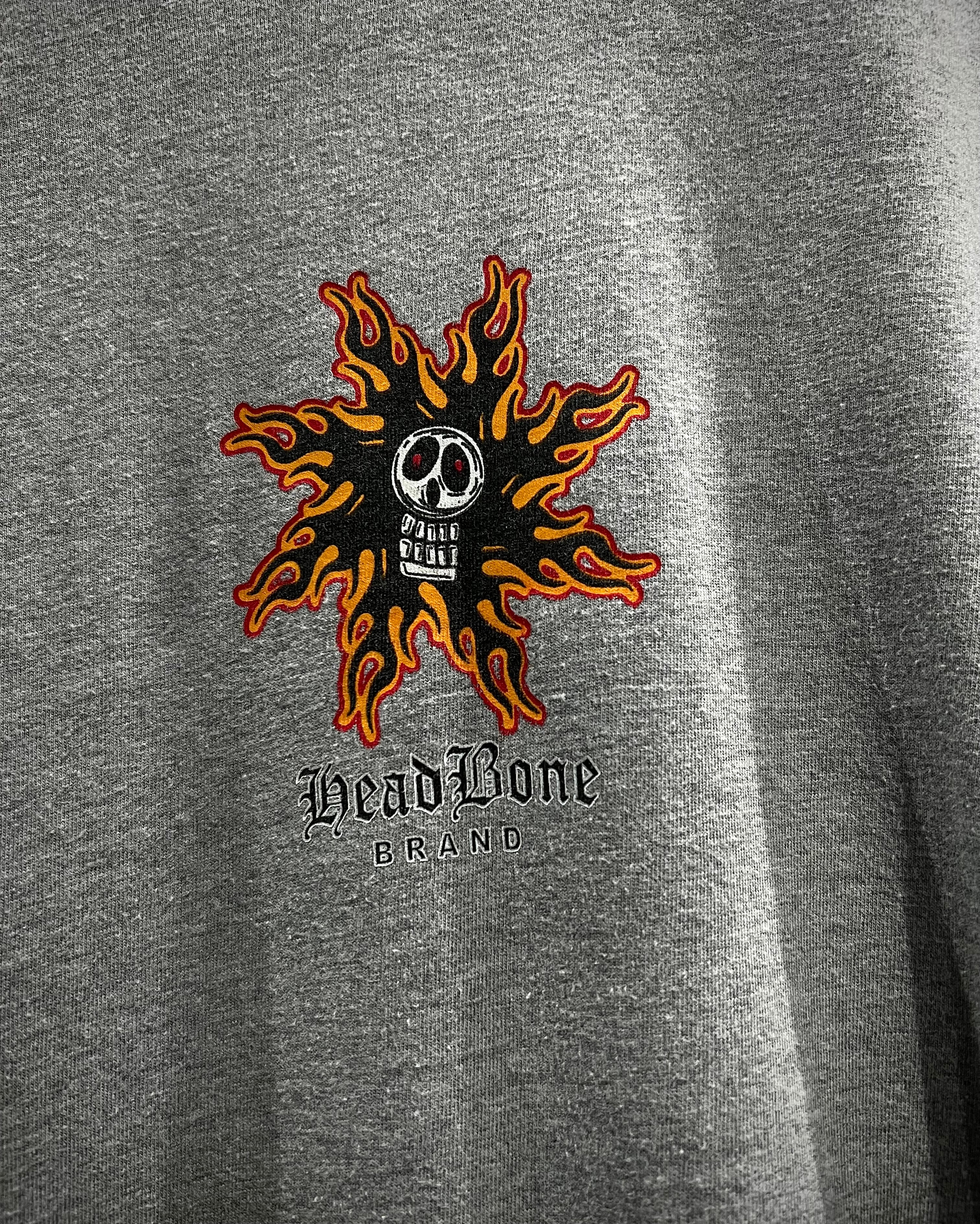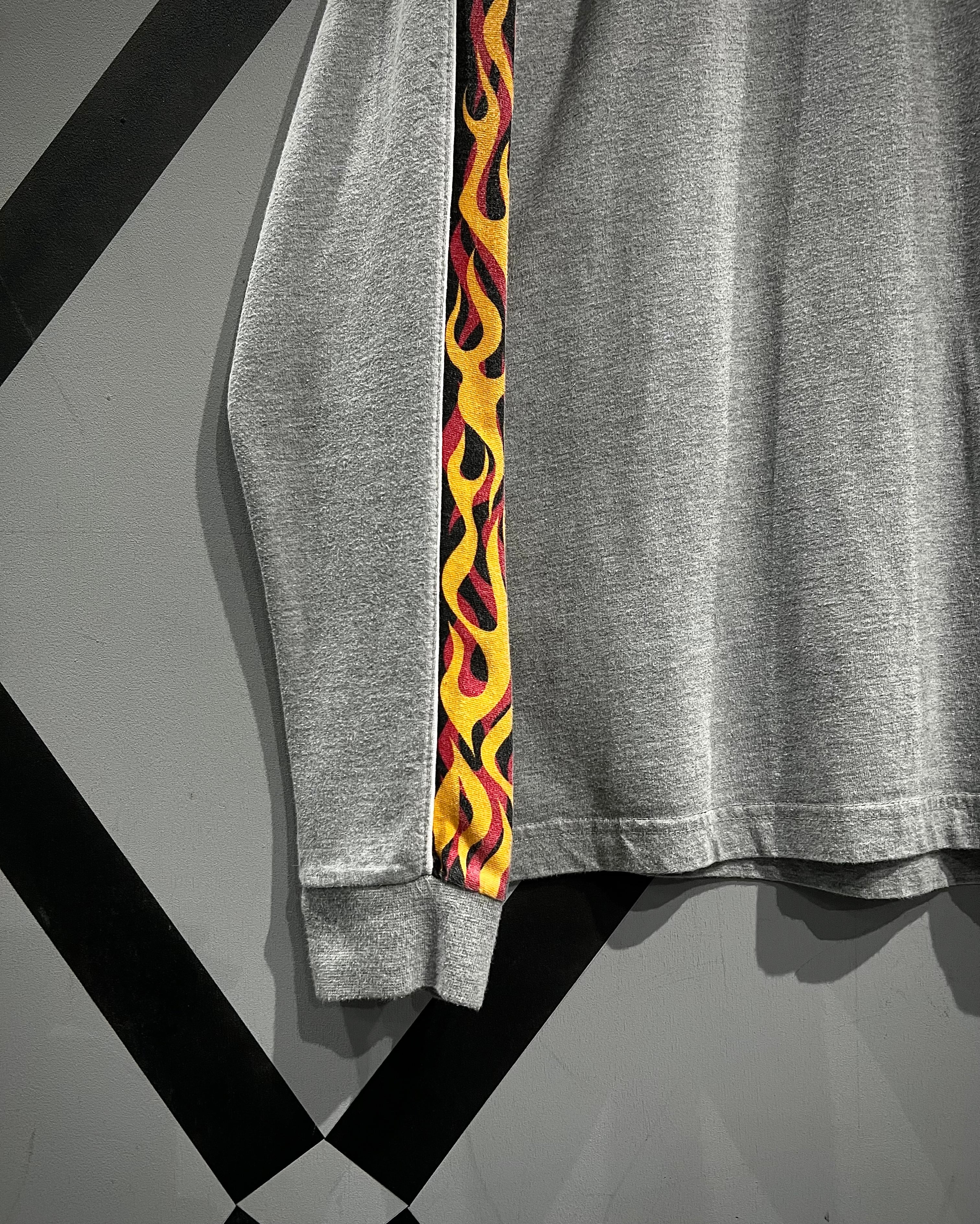 スカル&フレイムパターンのプリントを載せた、当時のストリートのムード漂う90's〜00's"No Boundaries"のロングスリーブTシャツ。