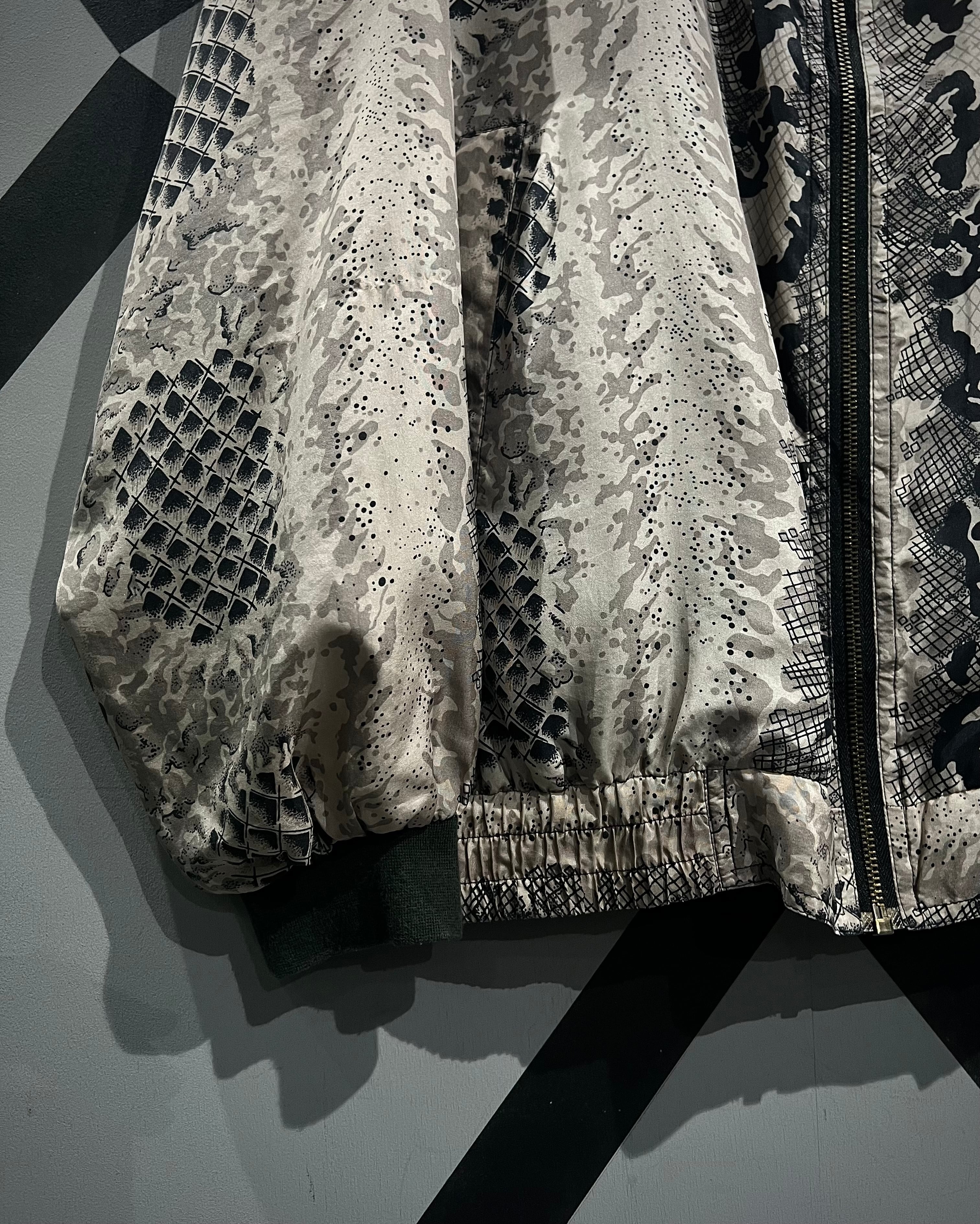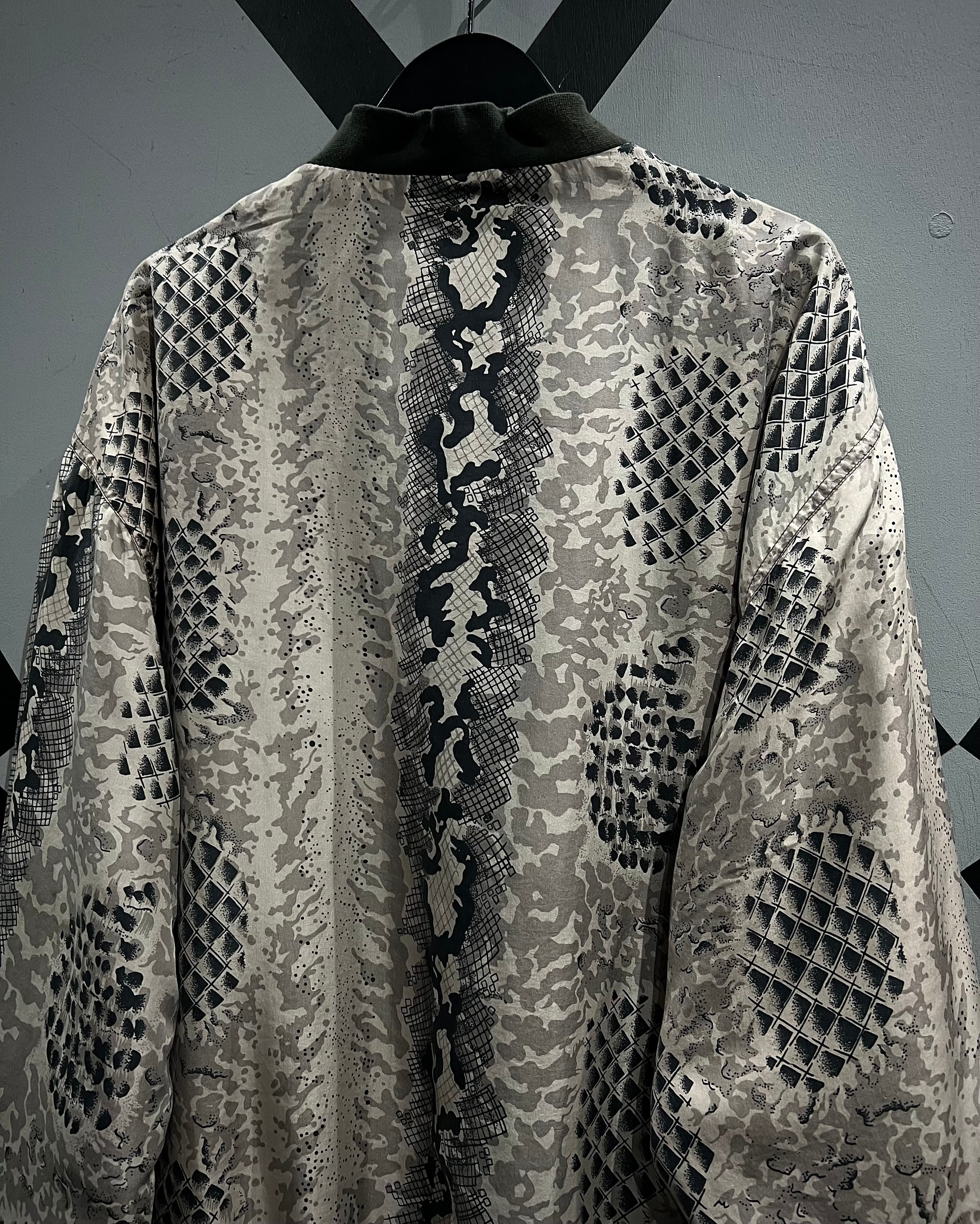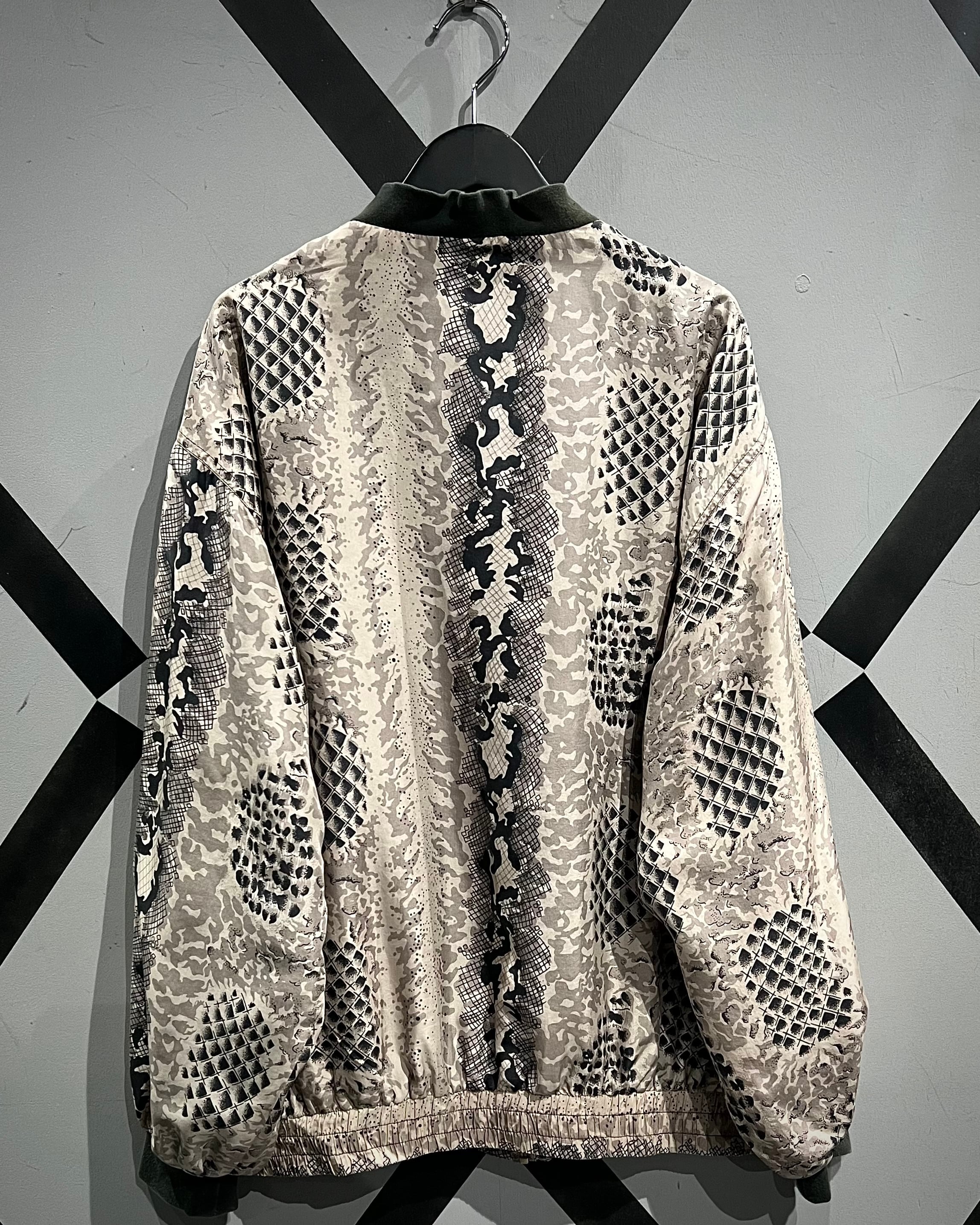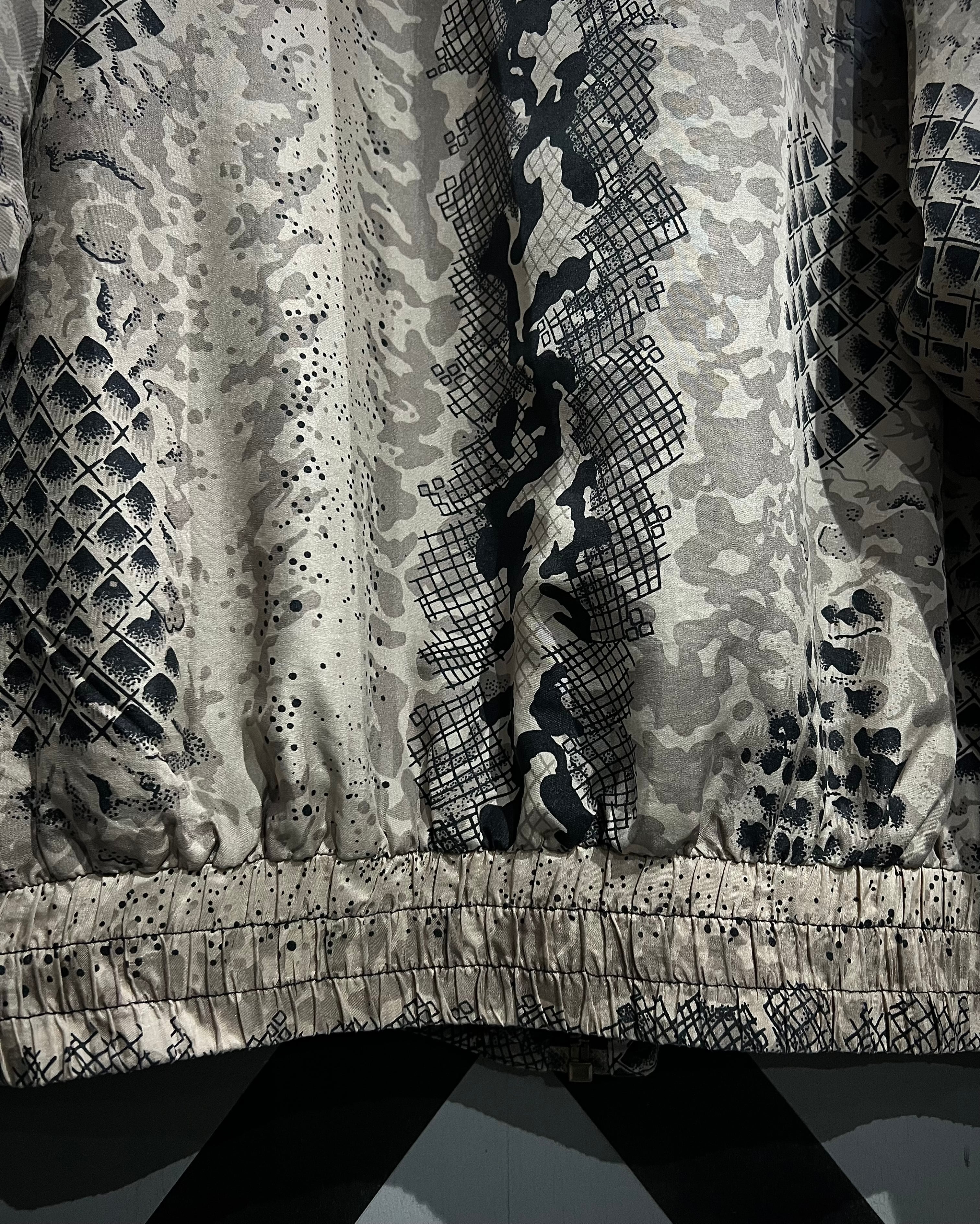 グレイッシュベージュをベースに、パイソン柄を大胆に落とし込んだ、存在感のあるパターンワークが目を惹くシルクブルゾン。