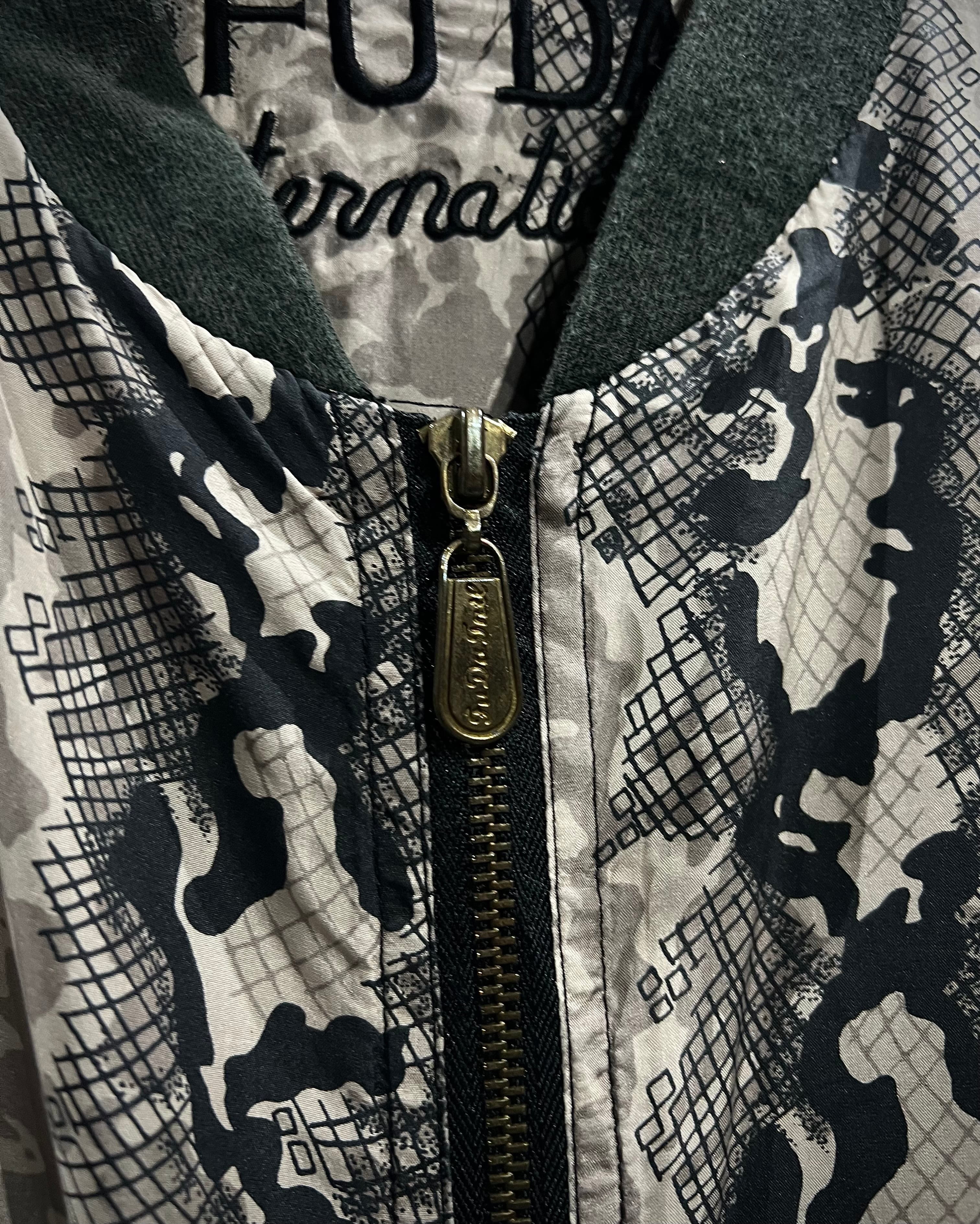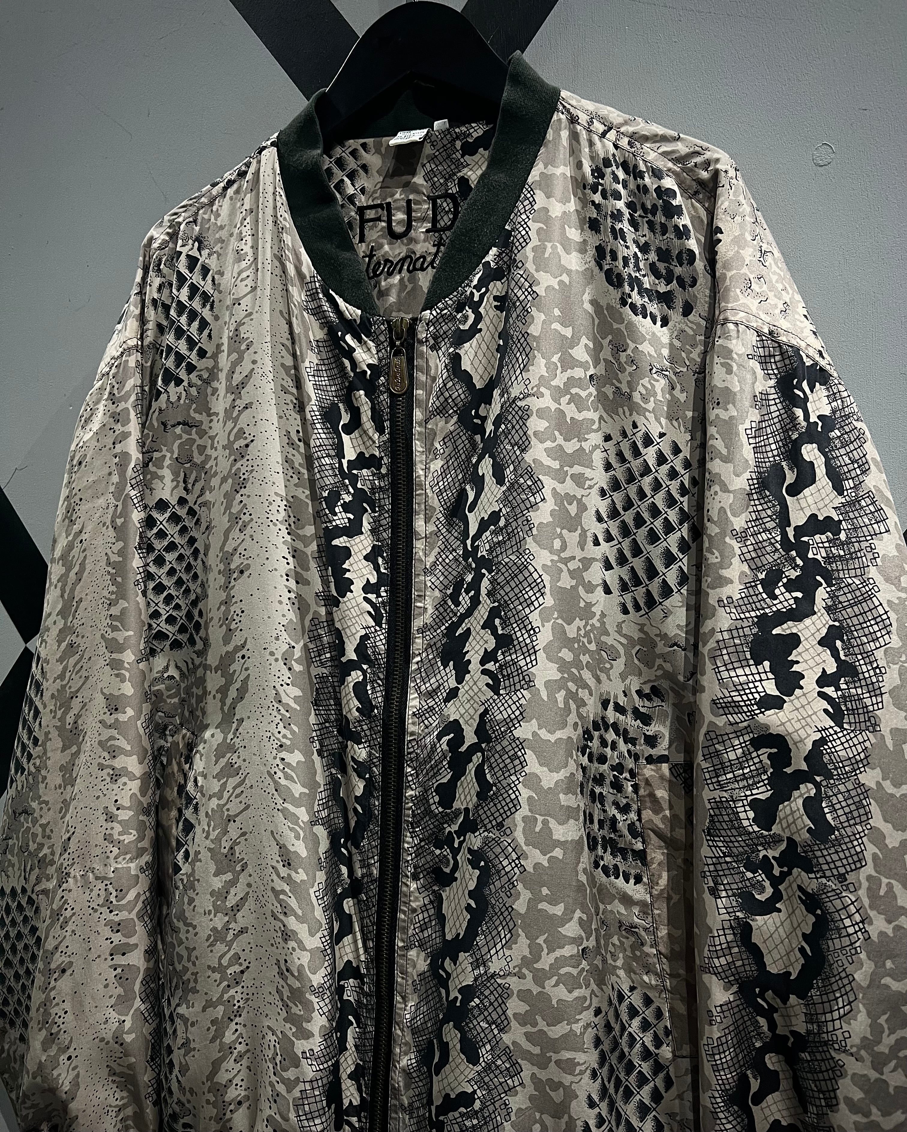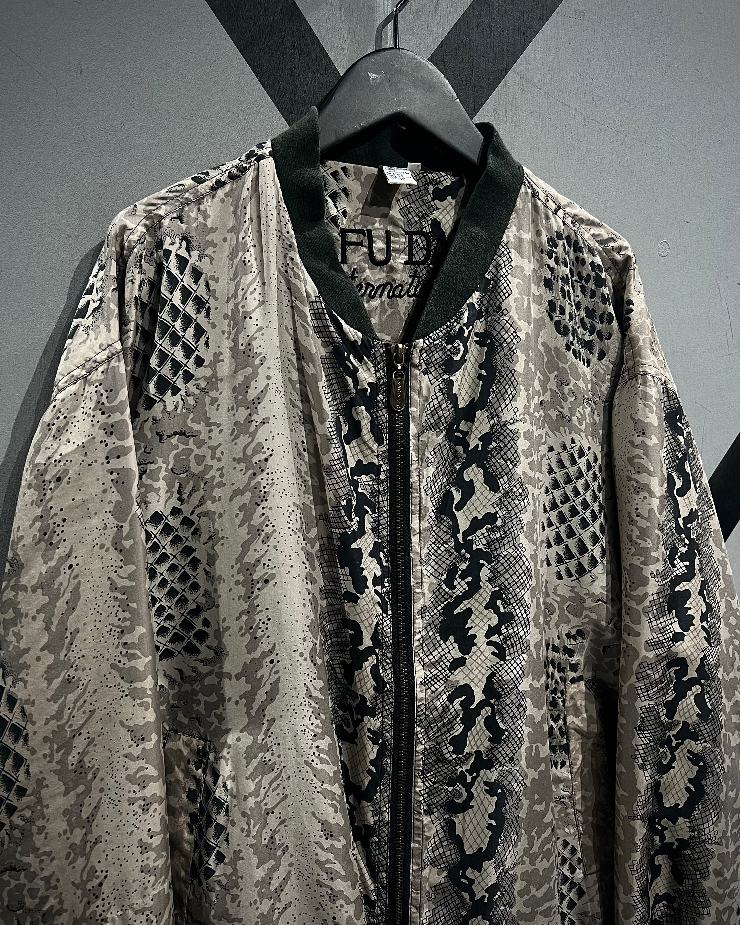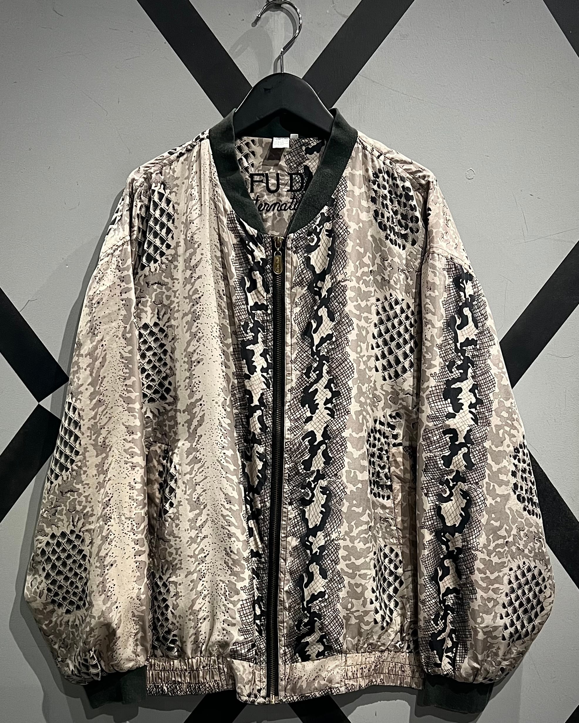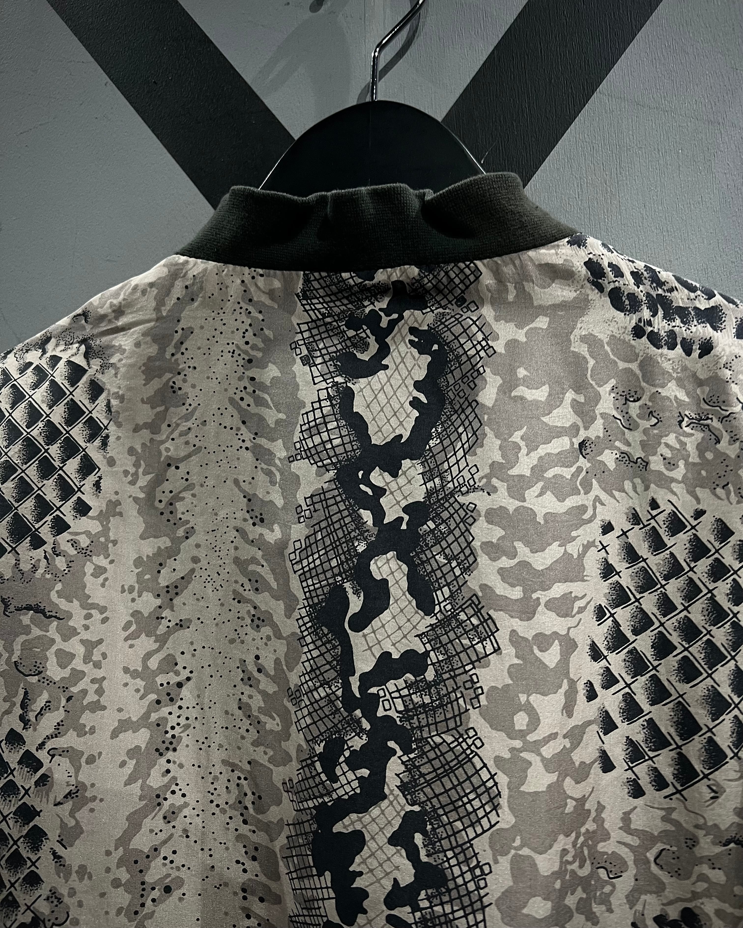 グレイッシュベージュをベースに、パイソン柄を大胆に落とし込んだ、存在感のあるパターンワークが目を惹くシルクブルゾン。