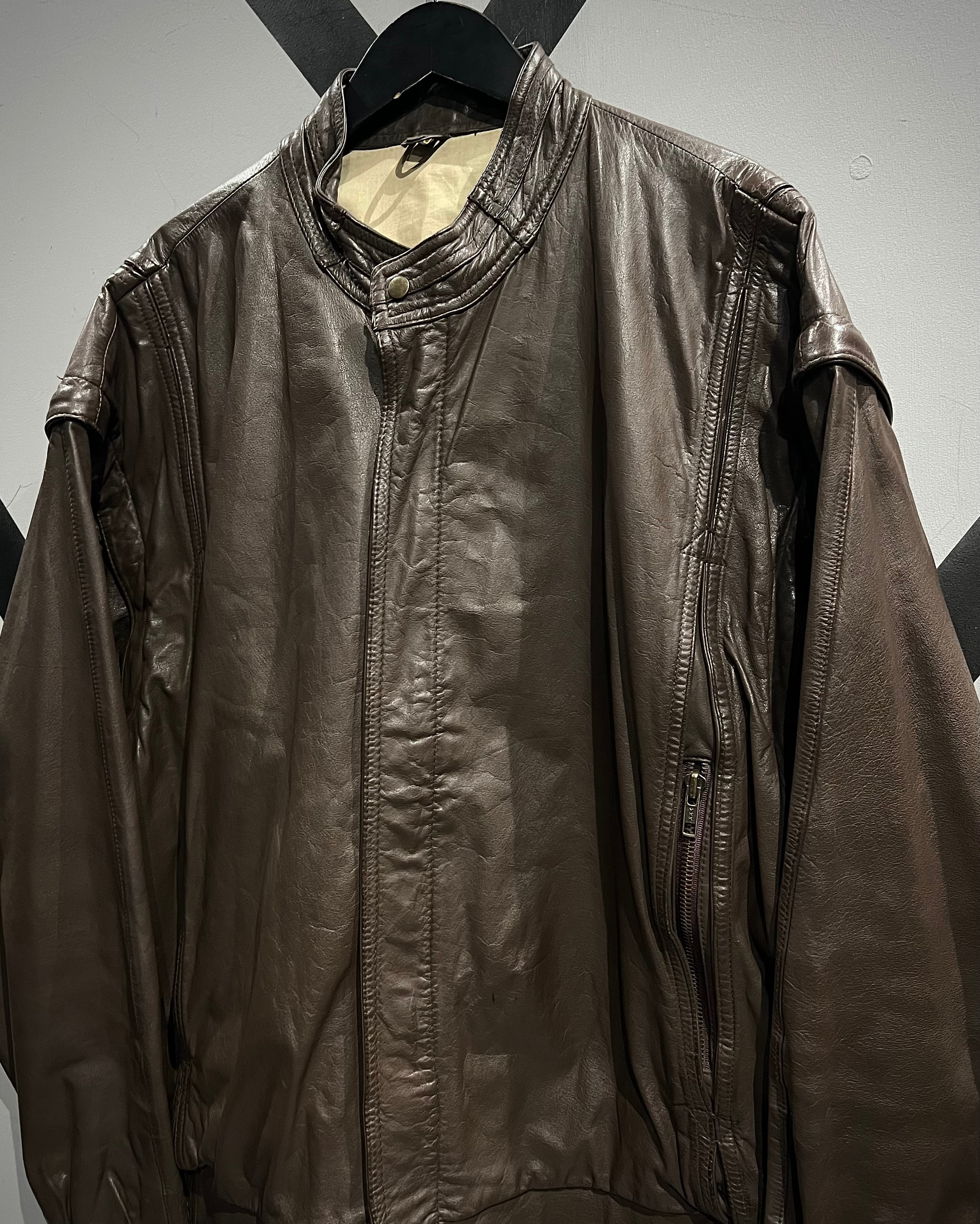 袖着脱可能な2WAYギミックを搭載した、80’sユーロヴィンテージのレザージャケット。