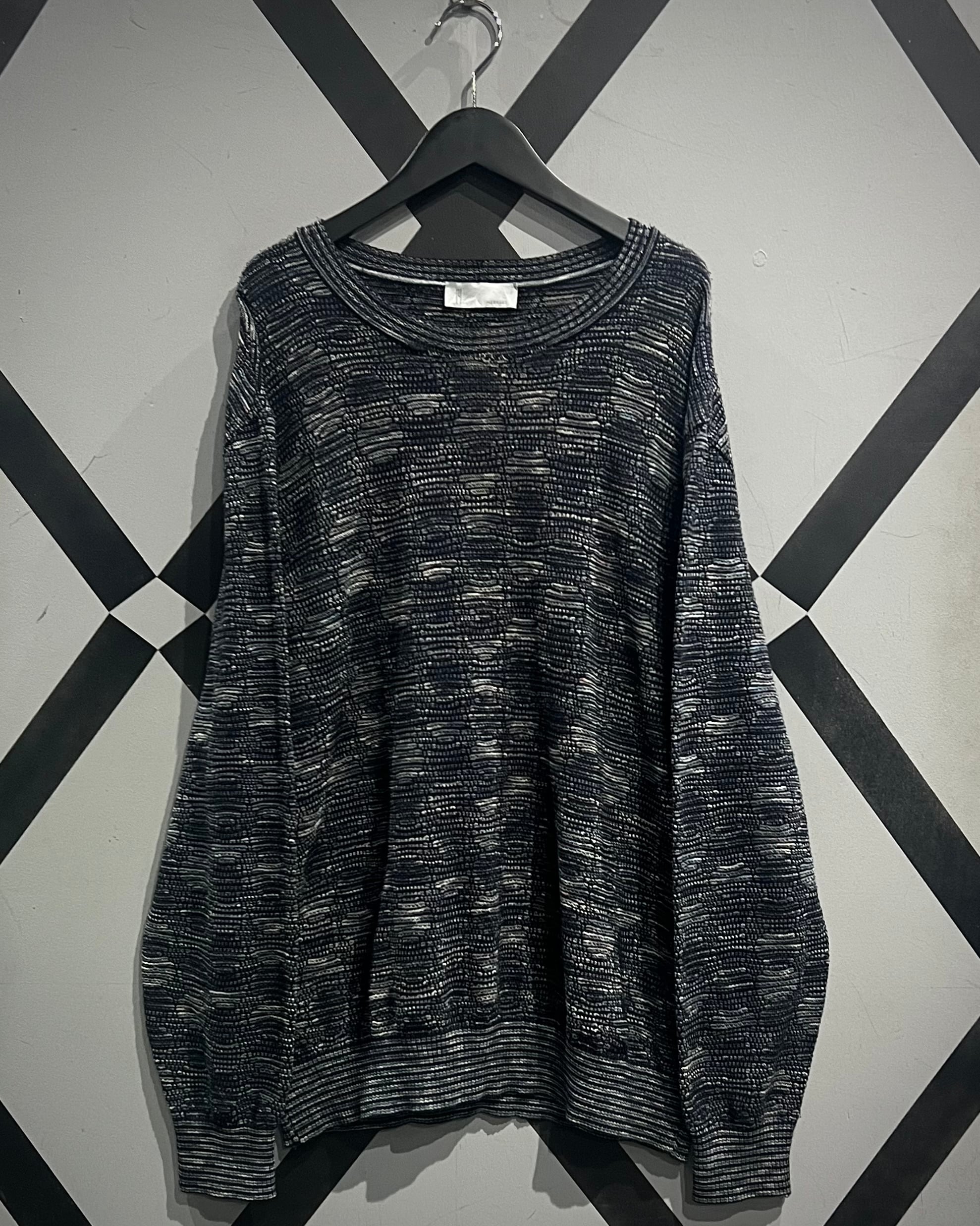 マルチカラーで色を切り替え、ボディ全体に柄模様を表現したプルオーバーニット。