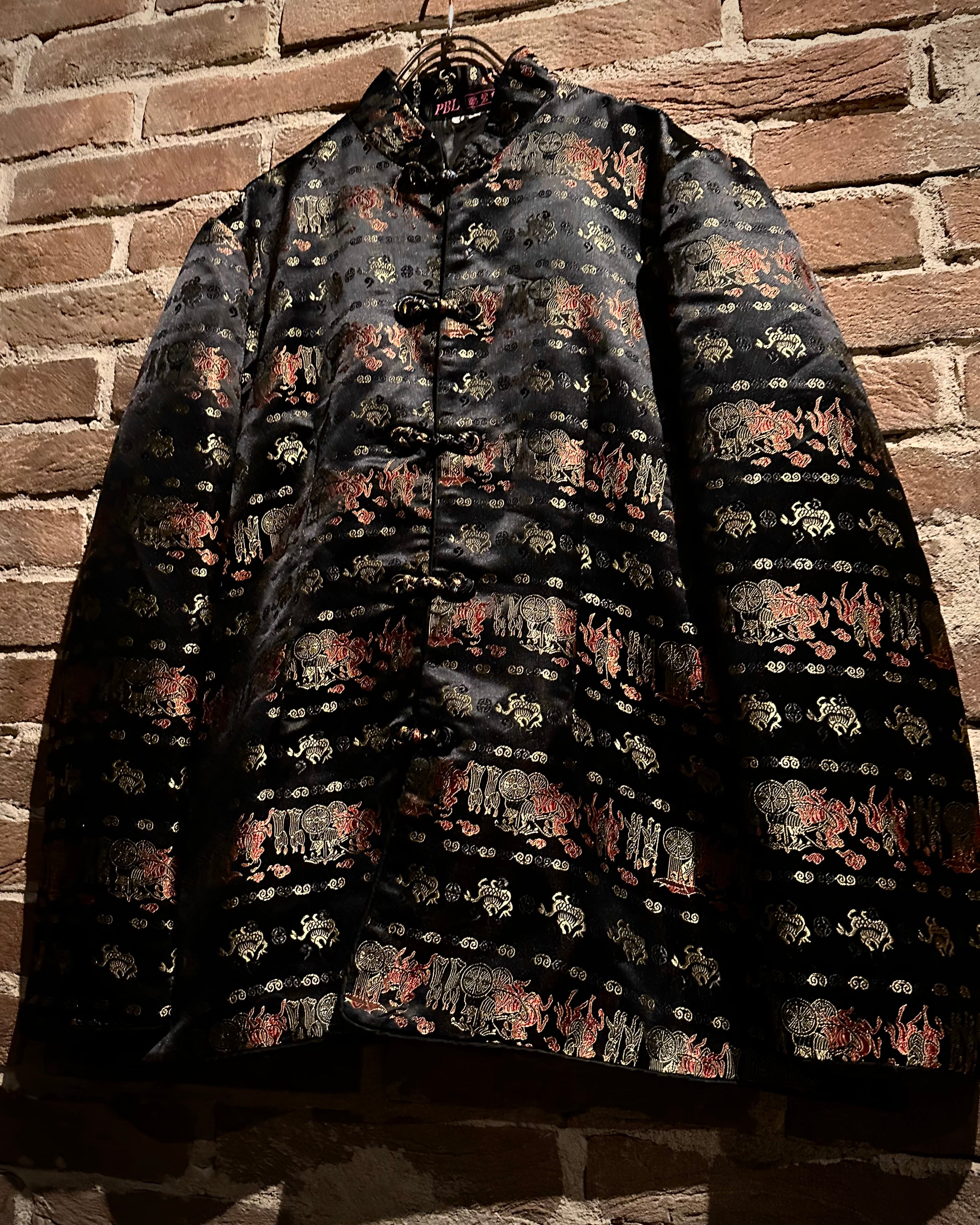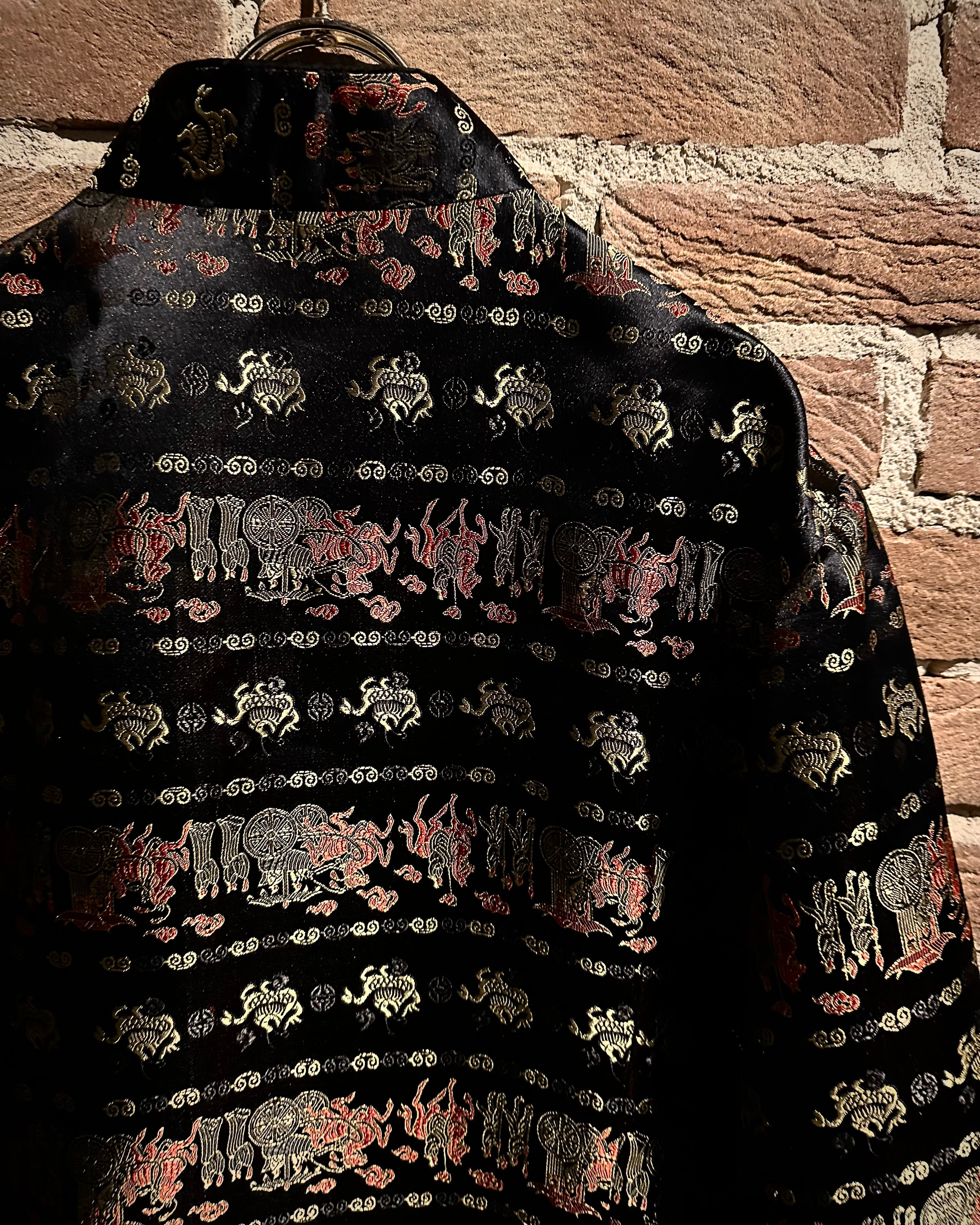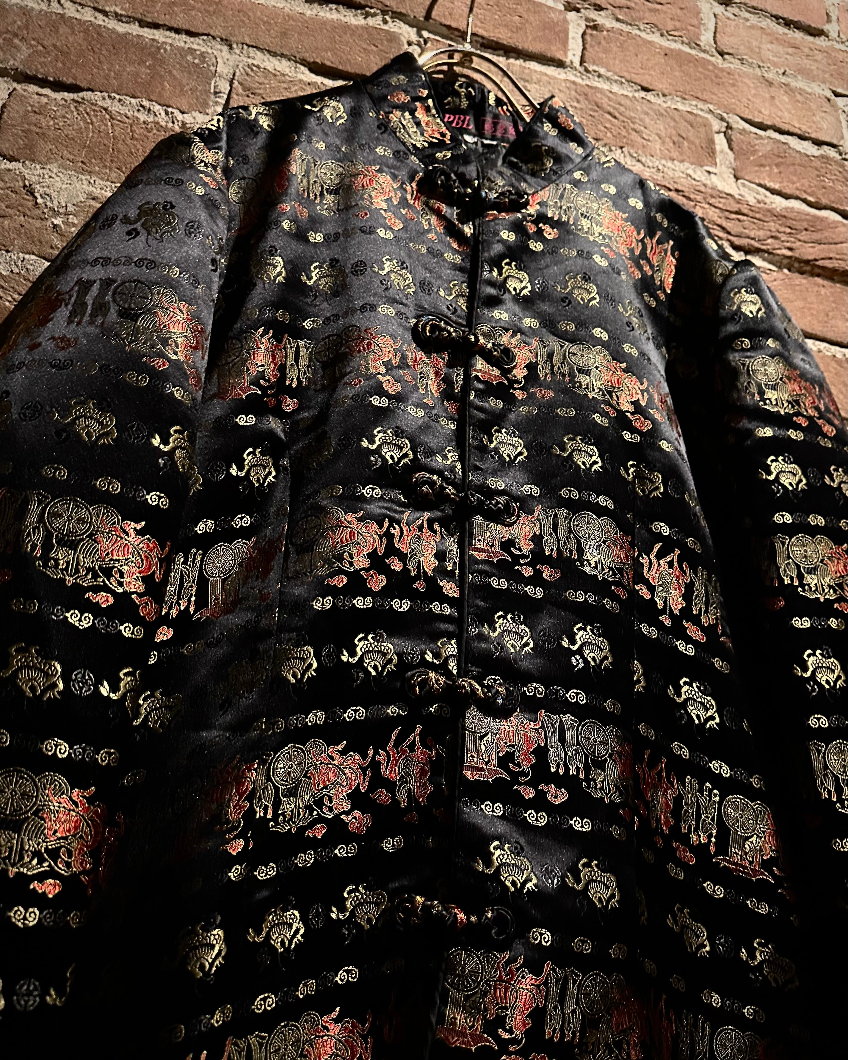 フロントにはチャイナボタン、首元にはマオカラーを採用した王道のディテール。伝統的な要素をしっかりと踏襲しながらも、全体のバランスは非常に洗練されており、野暮ったさを感じさせない仕上がりに。