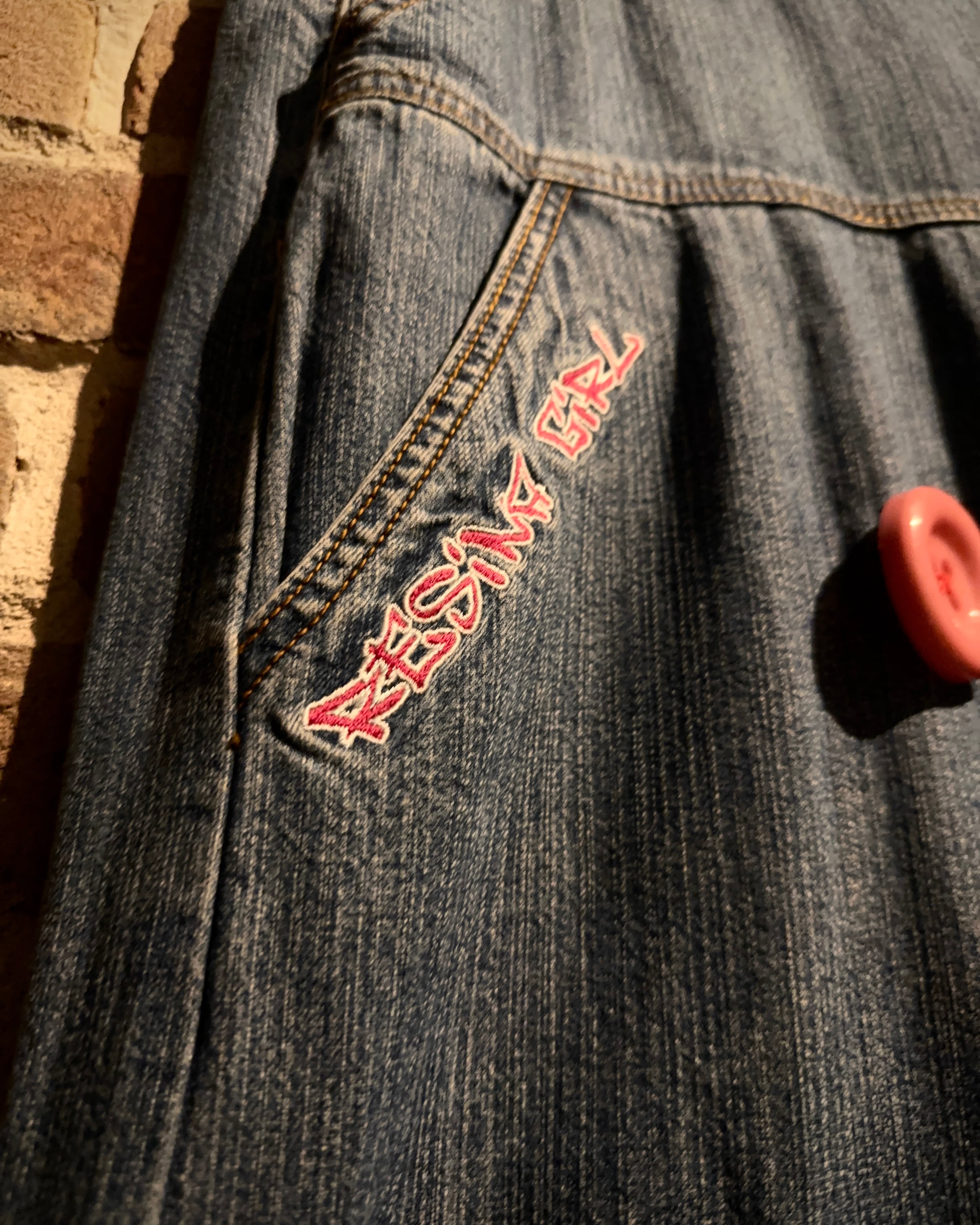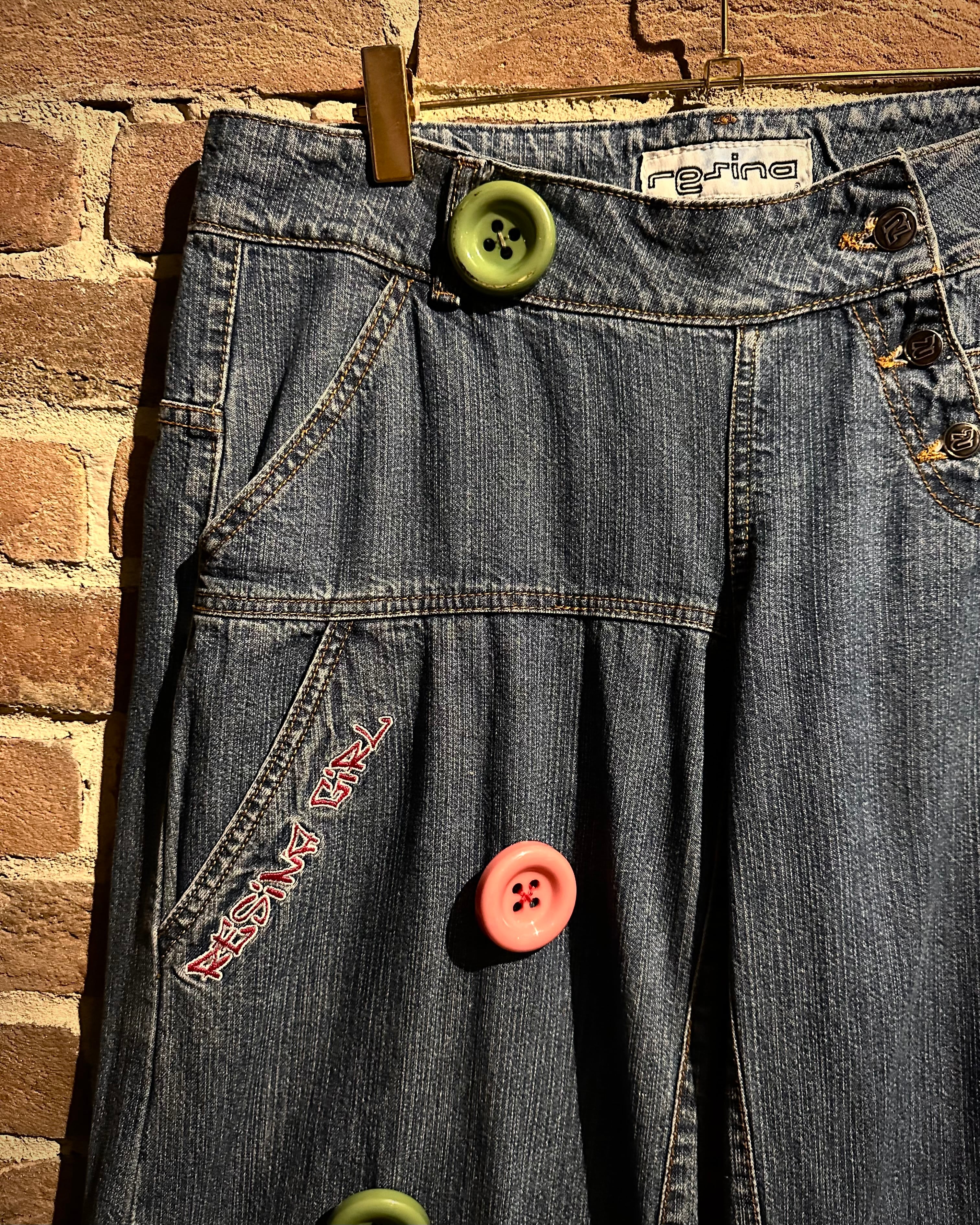 デニムボディをベースに、前所有者によるカスタムが施されたスペシャルなレイヴデニムパンツ。