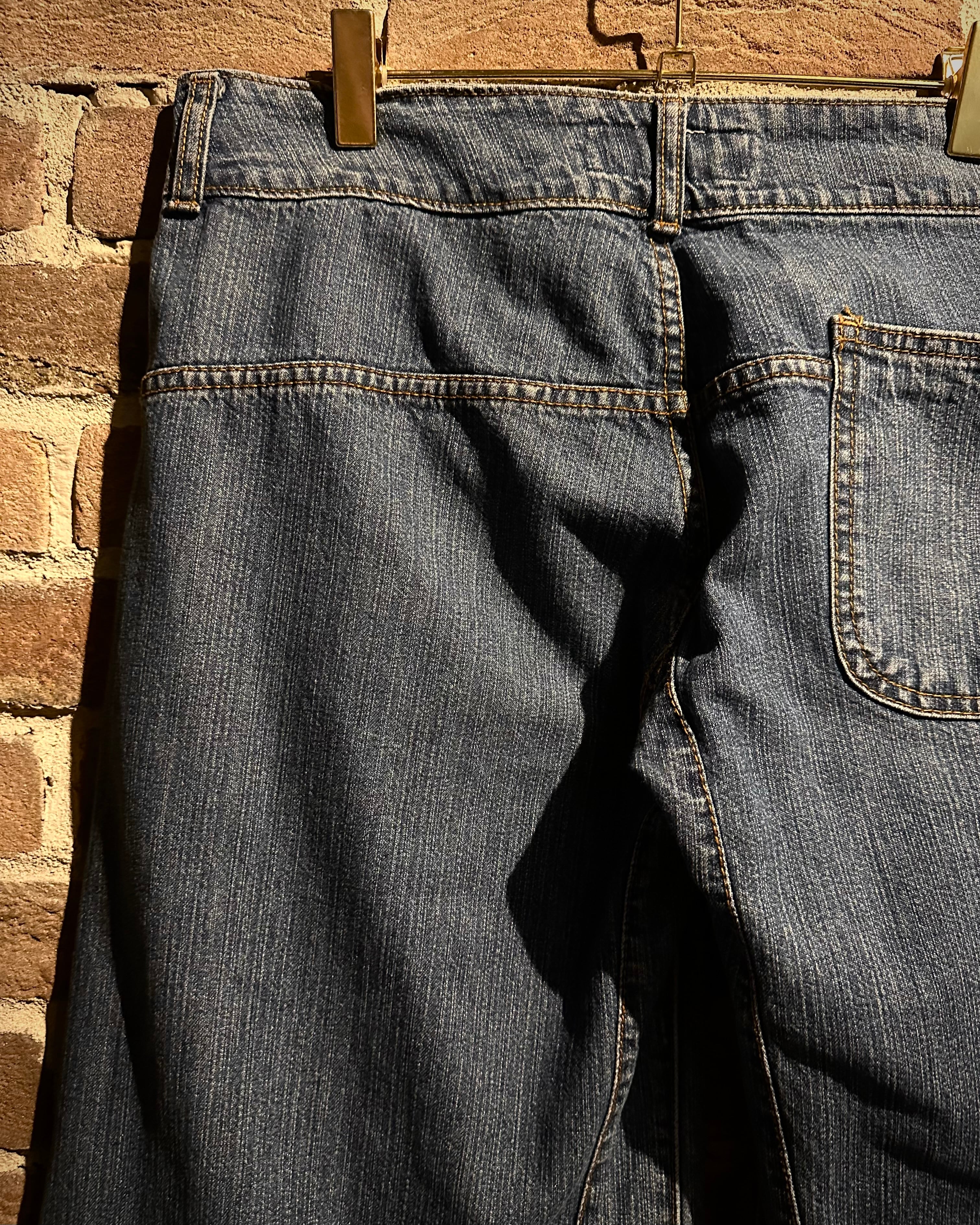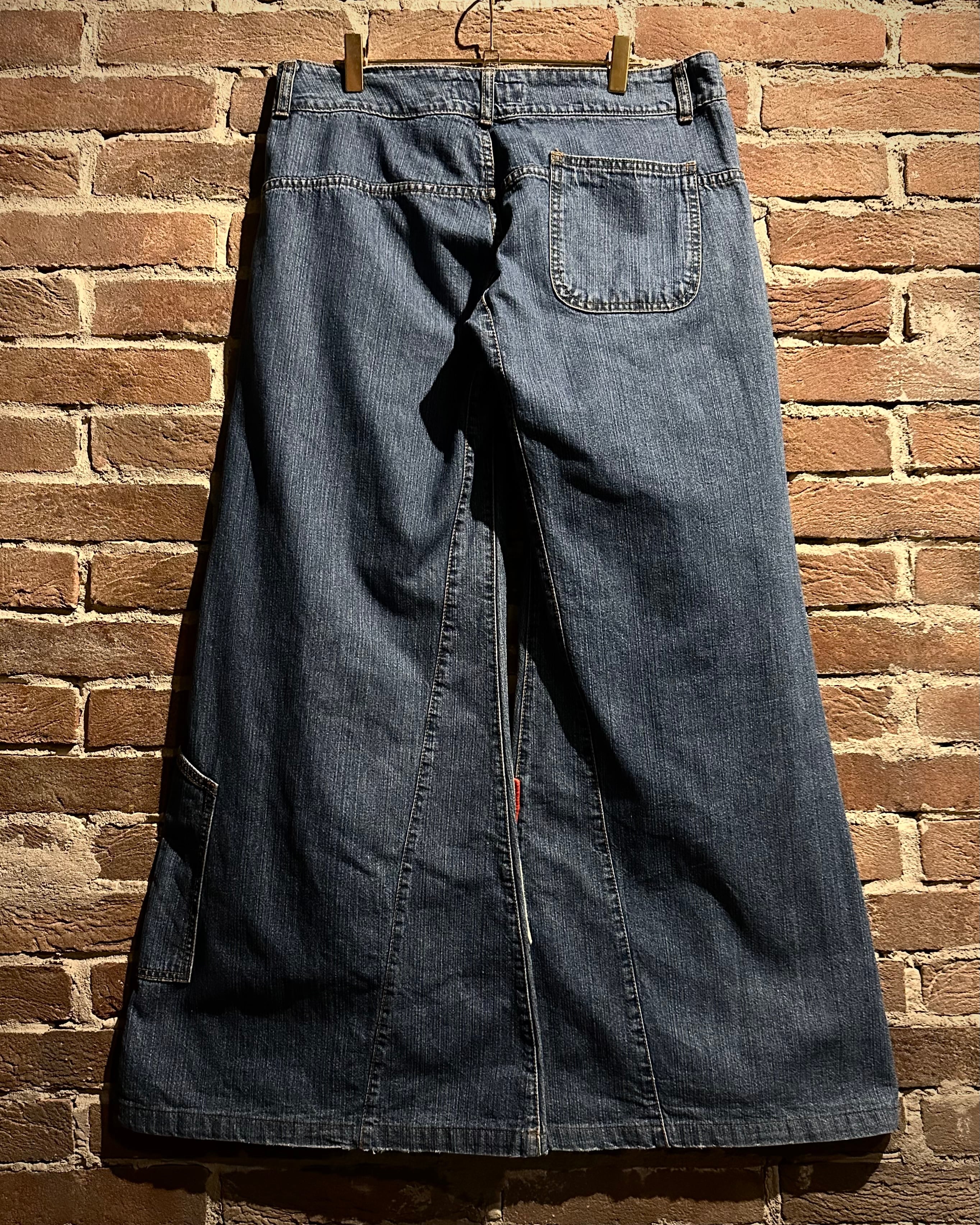 レイヴデニム自体のディテールも非常に面白く、変形させたボタンフライ、生地の切り替え。そしてウエストは狭く、裾までズドンとした広がりを見せる1980年代に広まったレイヴパンツ特有の太さが堪らなく格好良い、、、着用時の満足度は非常に高いかと。