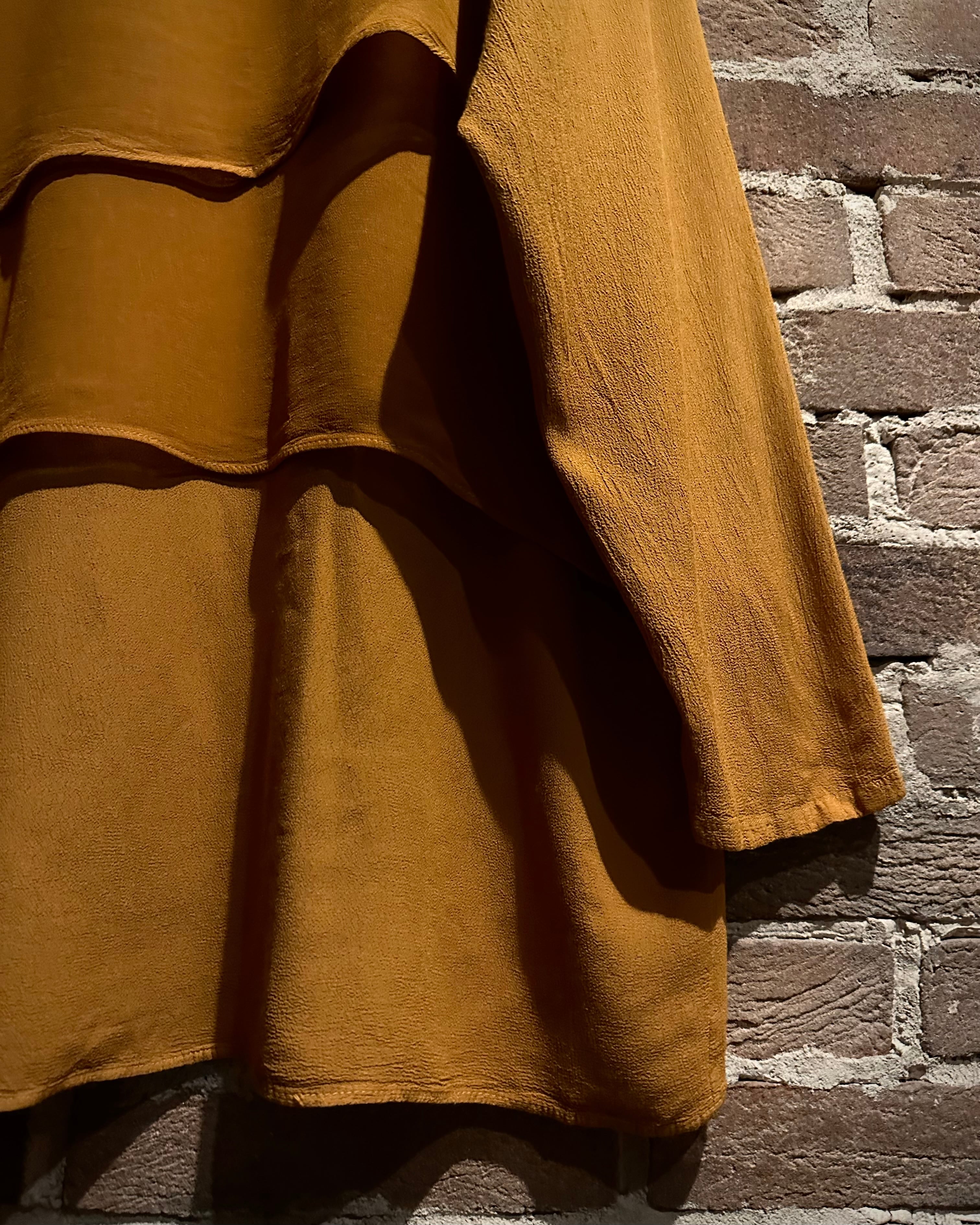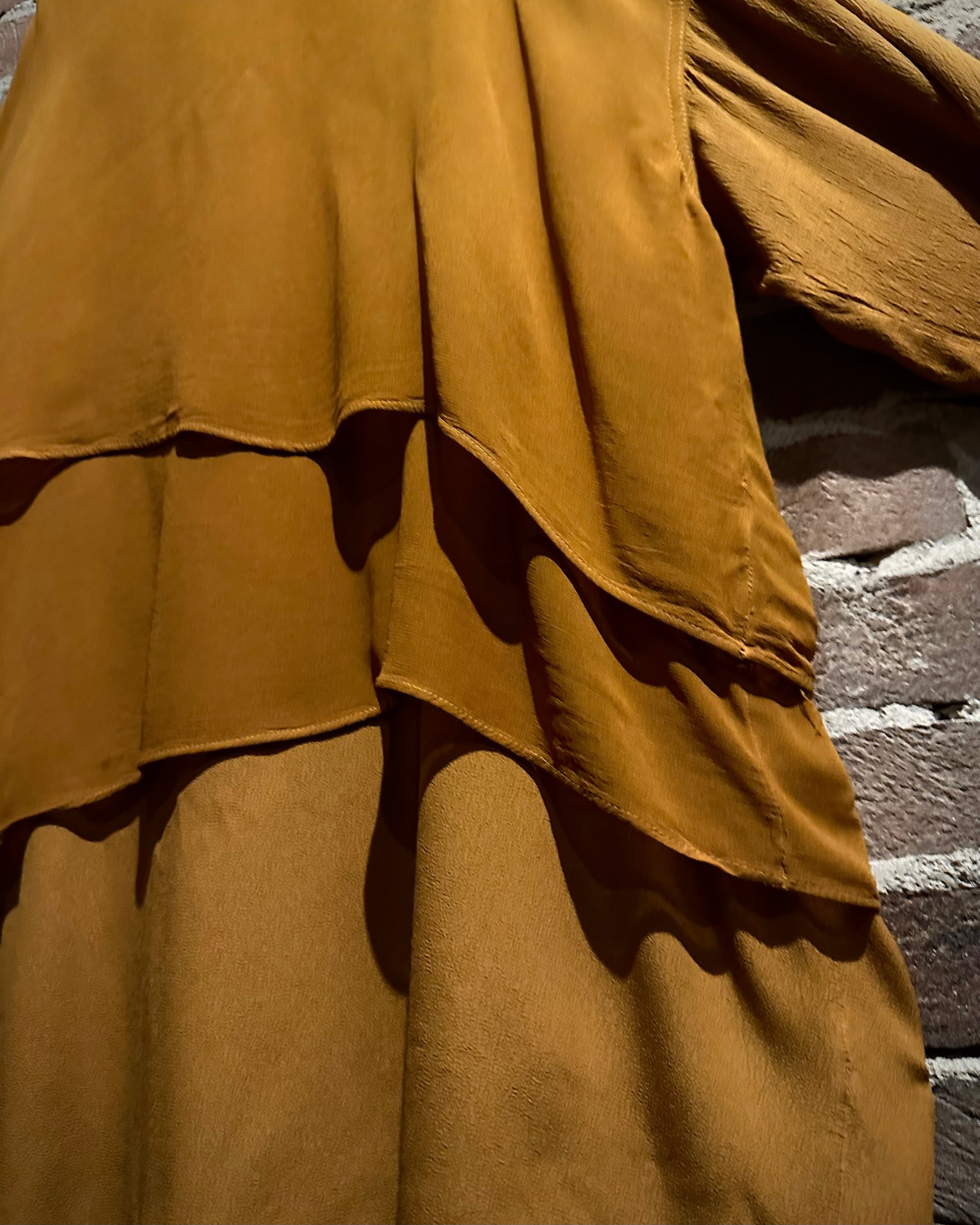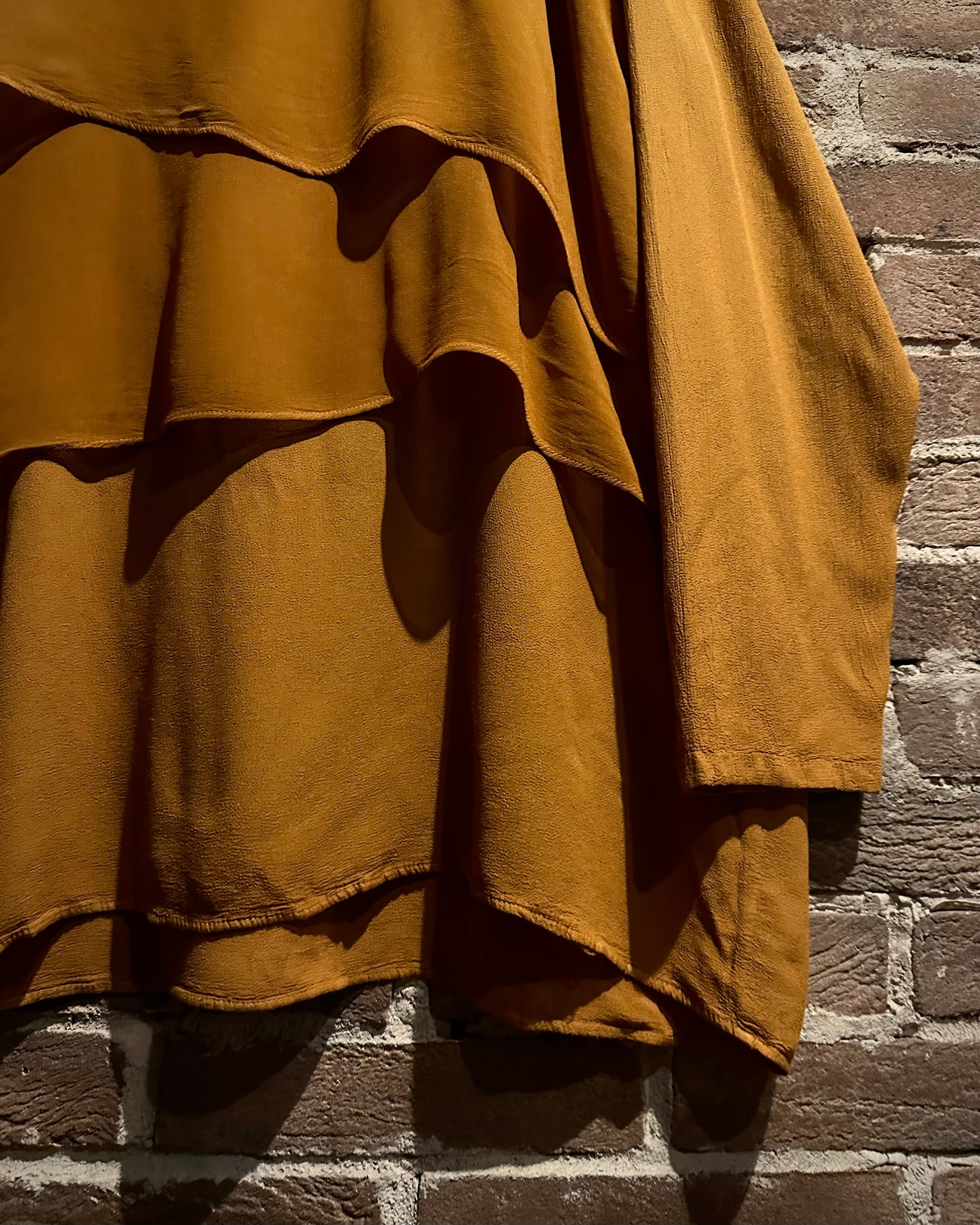 何層にも重なり合うことで生まれる陰影と立体感が、他にはない独特なシルエットを形成。マスタード寄りの色味も相まって生まれる、ヴィンテージならではの雰囲気も◎