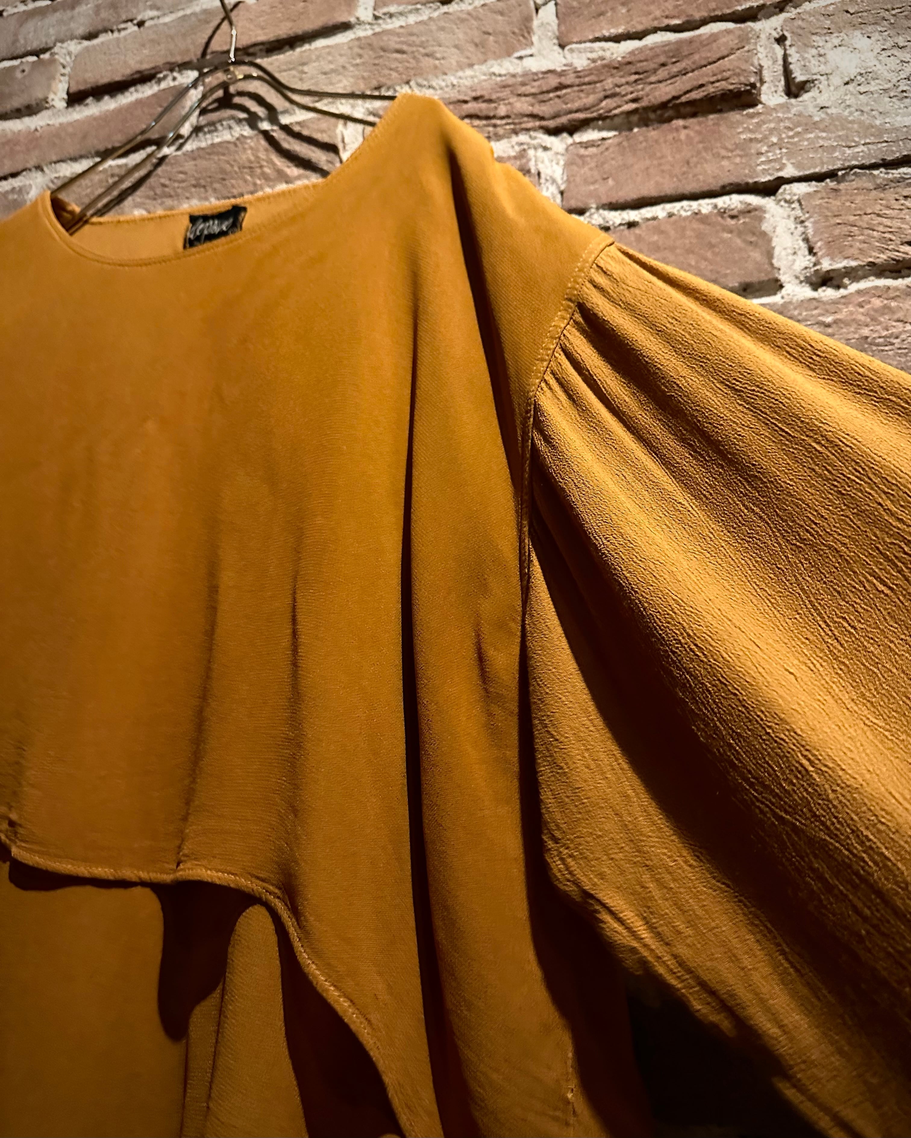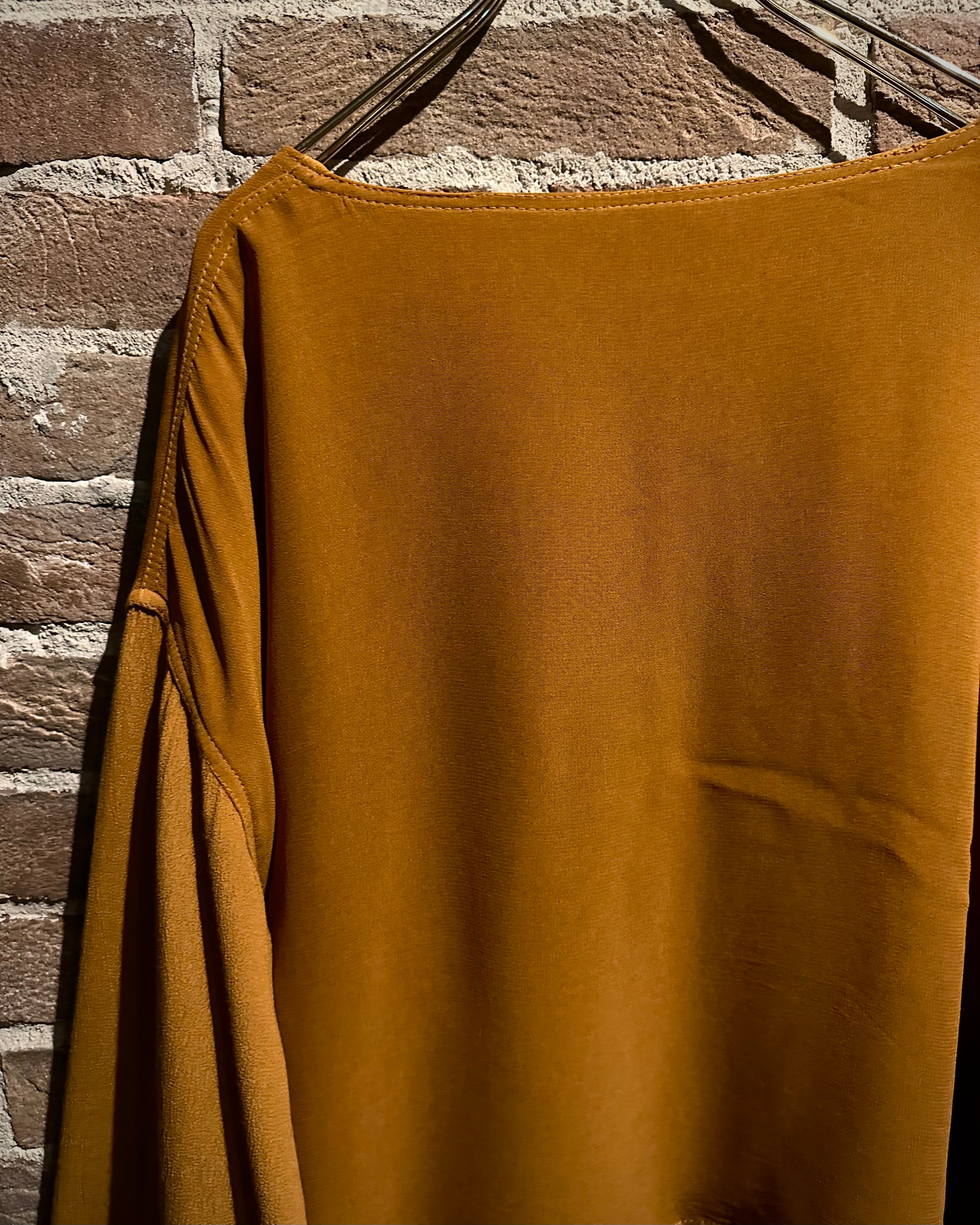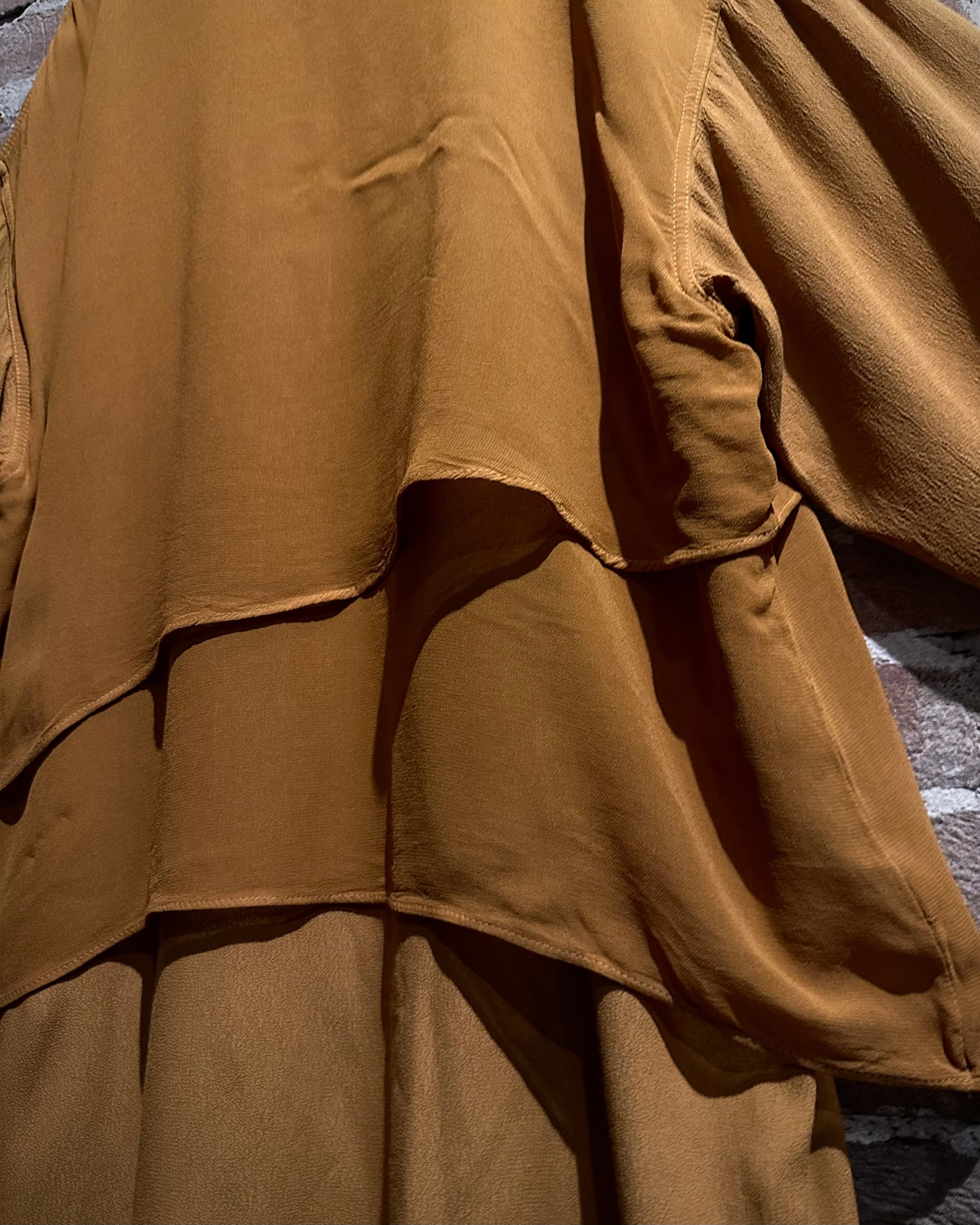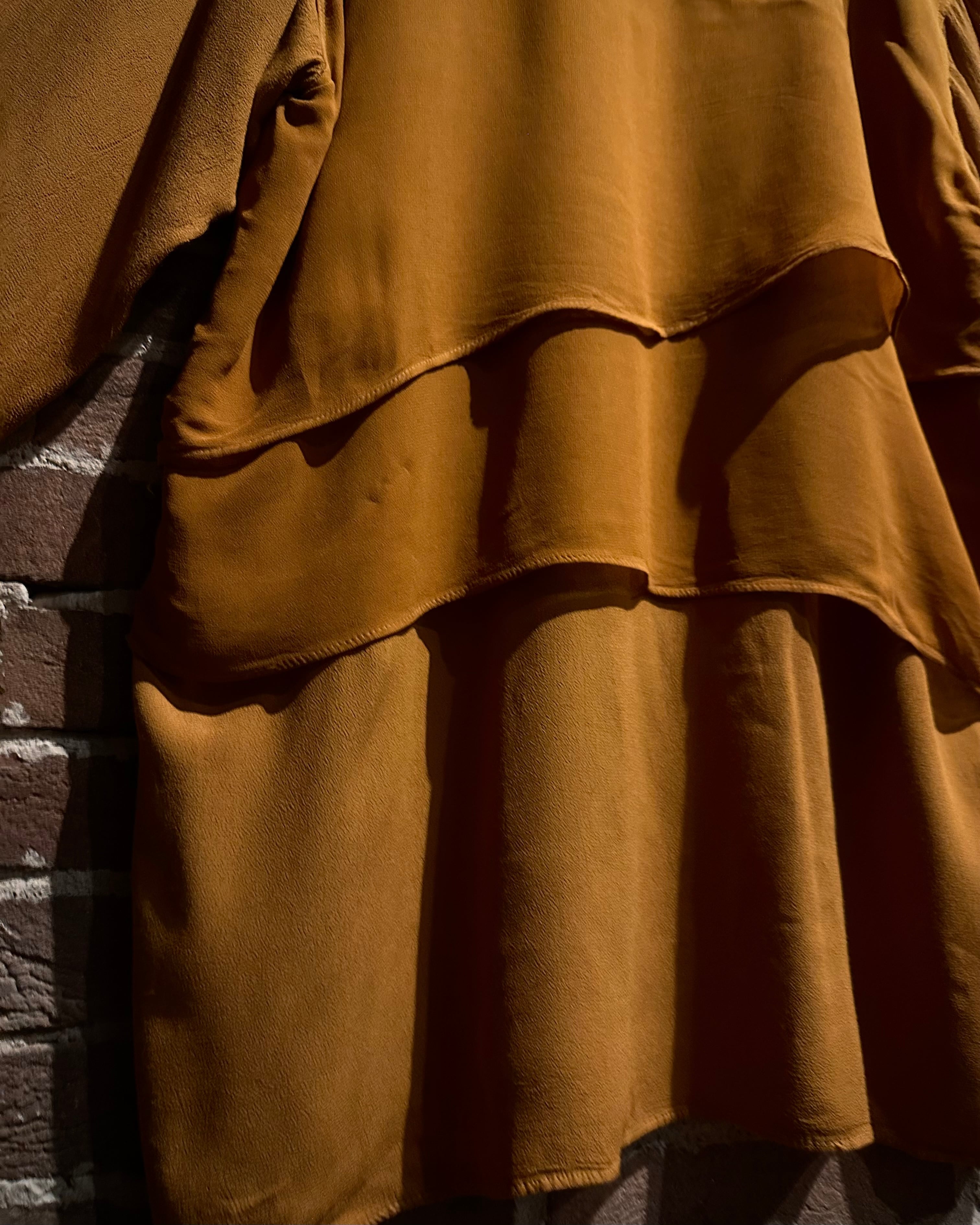 何層にも重なり合うことで生まれる陰影と立体感が、他にはない独特なシルエットを形成。マスタード寄りの色味も相まって生まれる、ヴィンテージならではの雰囲気も◎