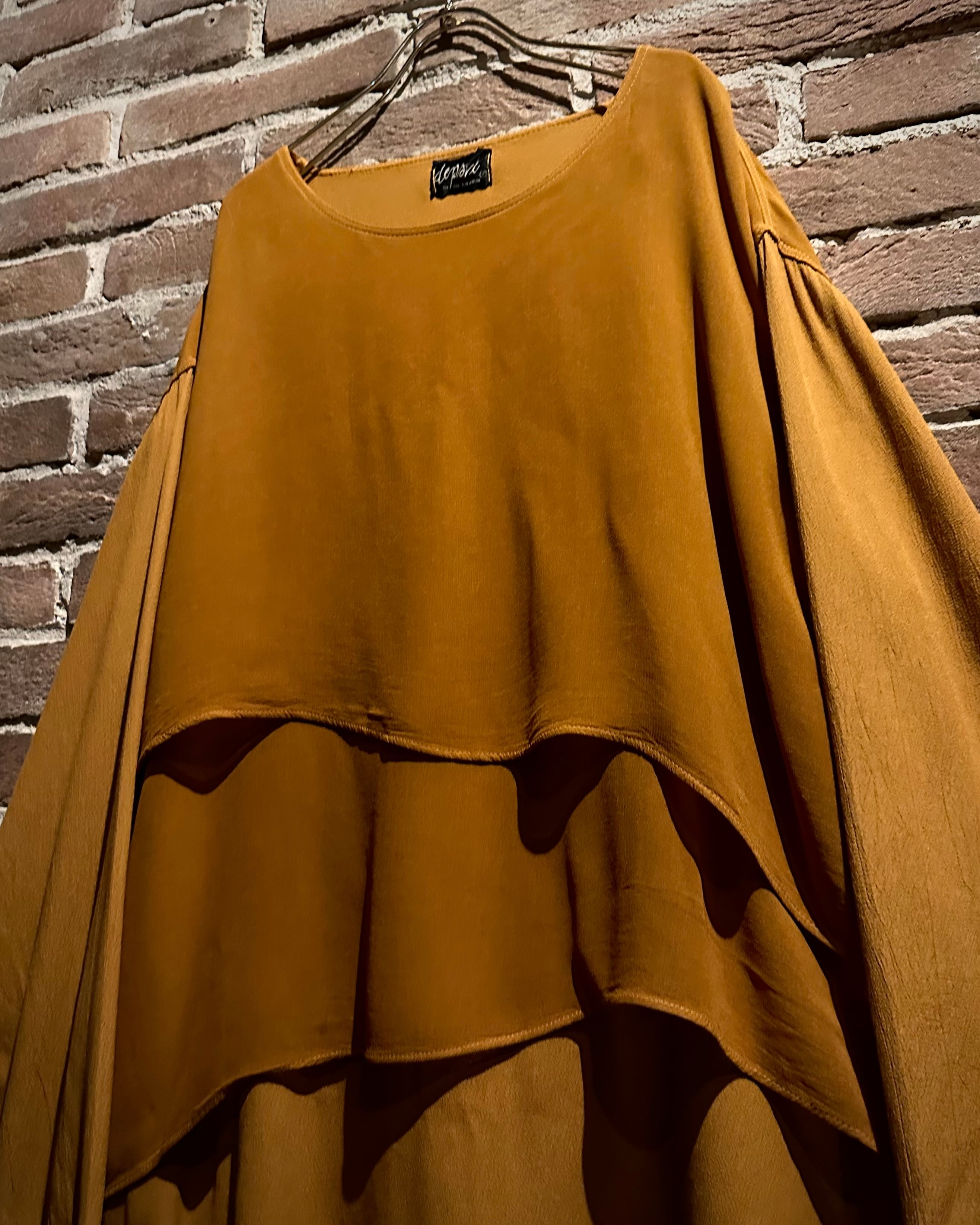 フロント・バック共に層が重なるレイヤードデザインで仕上げた、80’s頃の空気感を色濃く纏った変形プルオーバーをご紹介いたします。