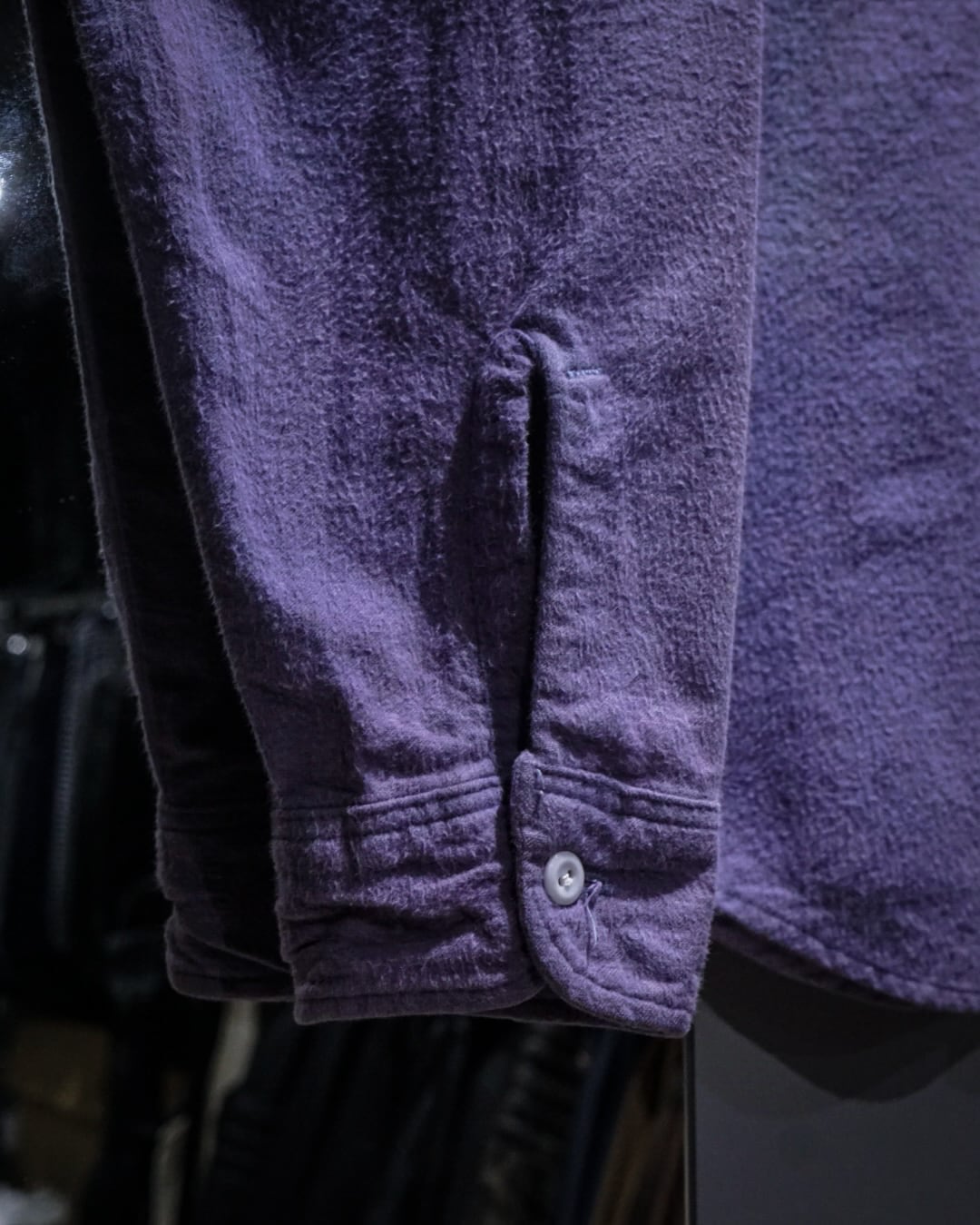 起毛感のある柔らかなシャモア特有の温かみのある質感と、着込まれたことによる自然なやれ感が相まって、ヴィンテージらしい雰囲気をしっかりと感じさせる一着。