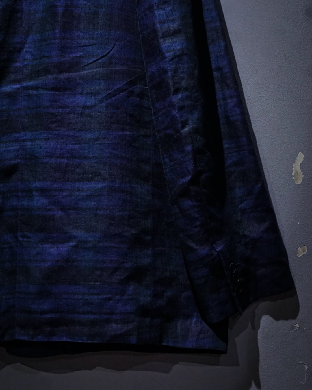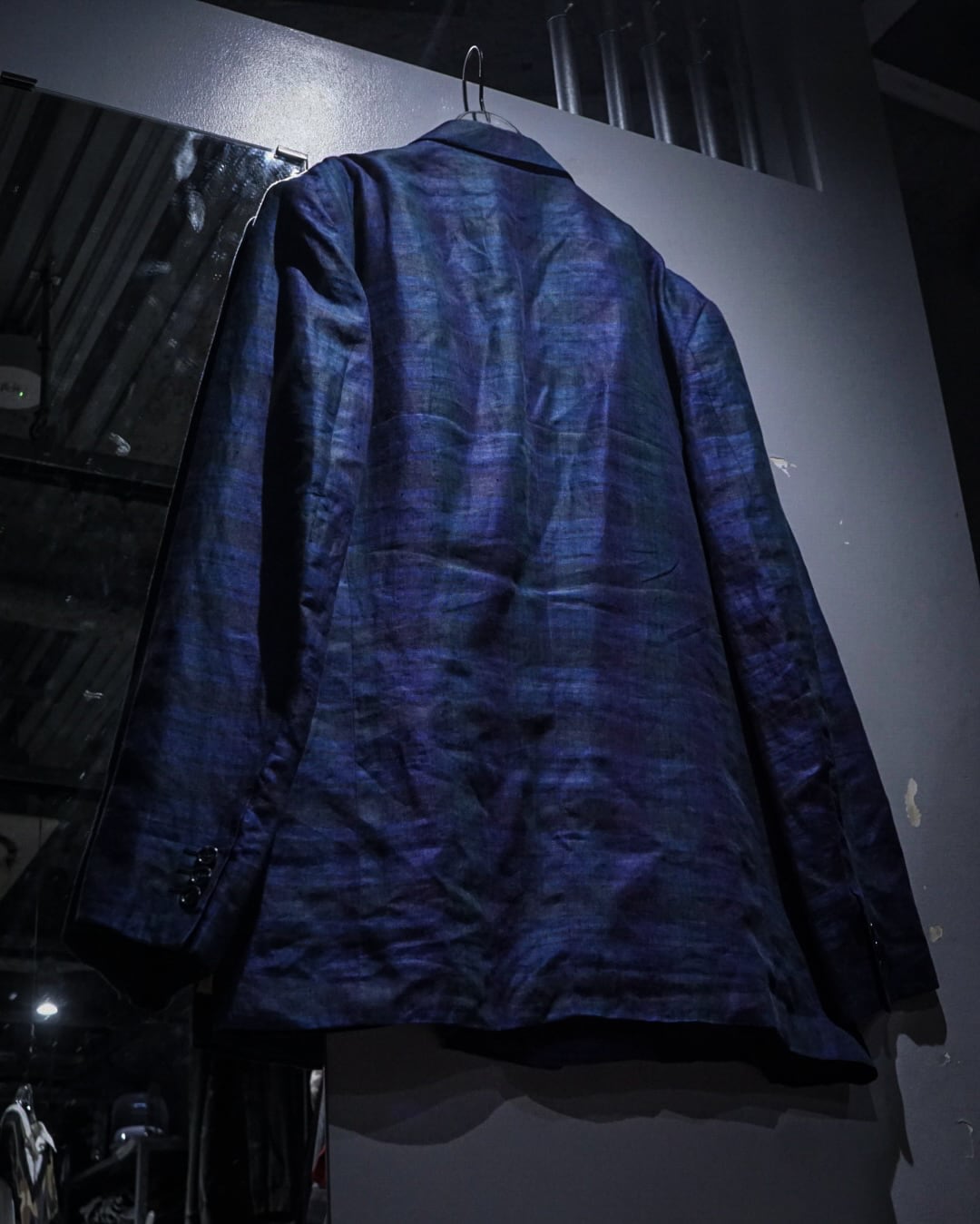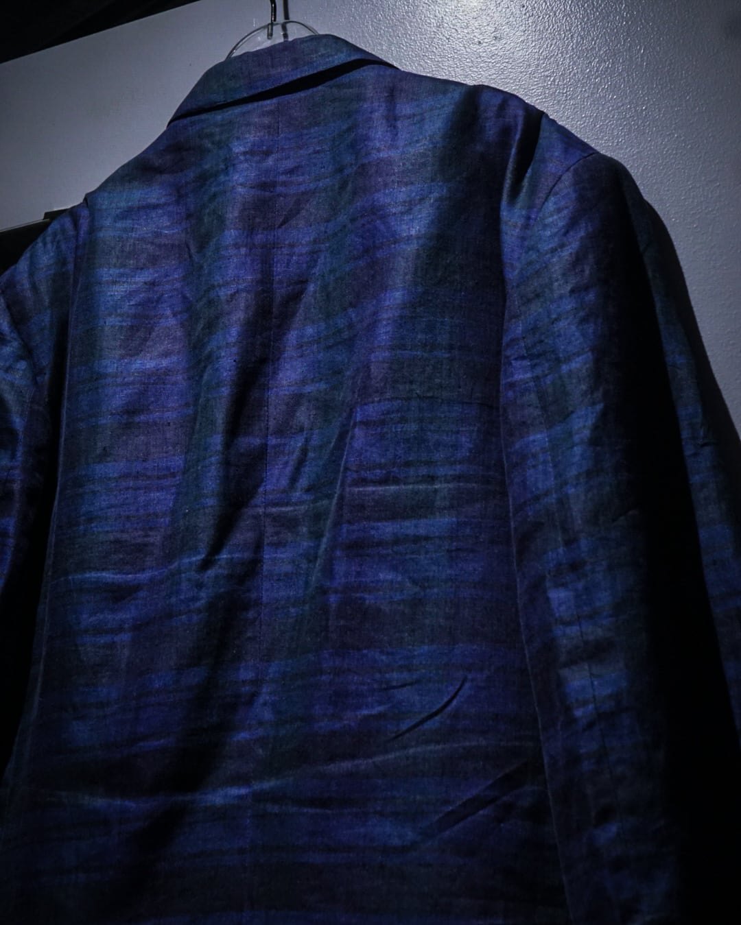 フロントはすっきりとした見え方ながら、ラペルはしっかりとしたボリュームを持ち、当時らしいテーラリングの雰囲気を色濃く残した仕上がりに。リネン特有の落ち感と相まって、柔らかくも立体的なシルエットを描きます。