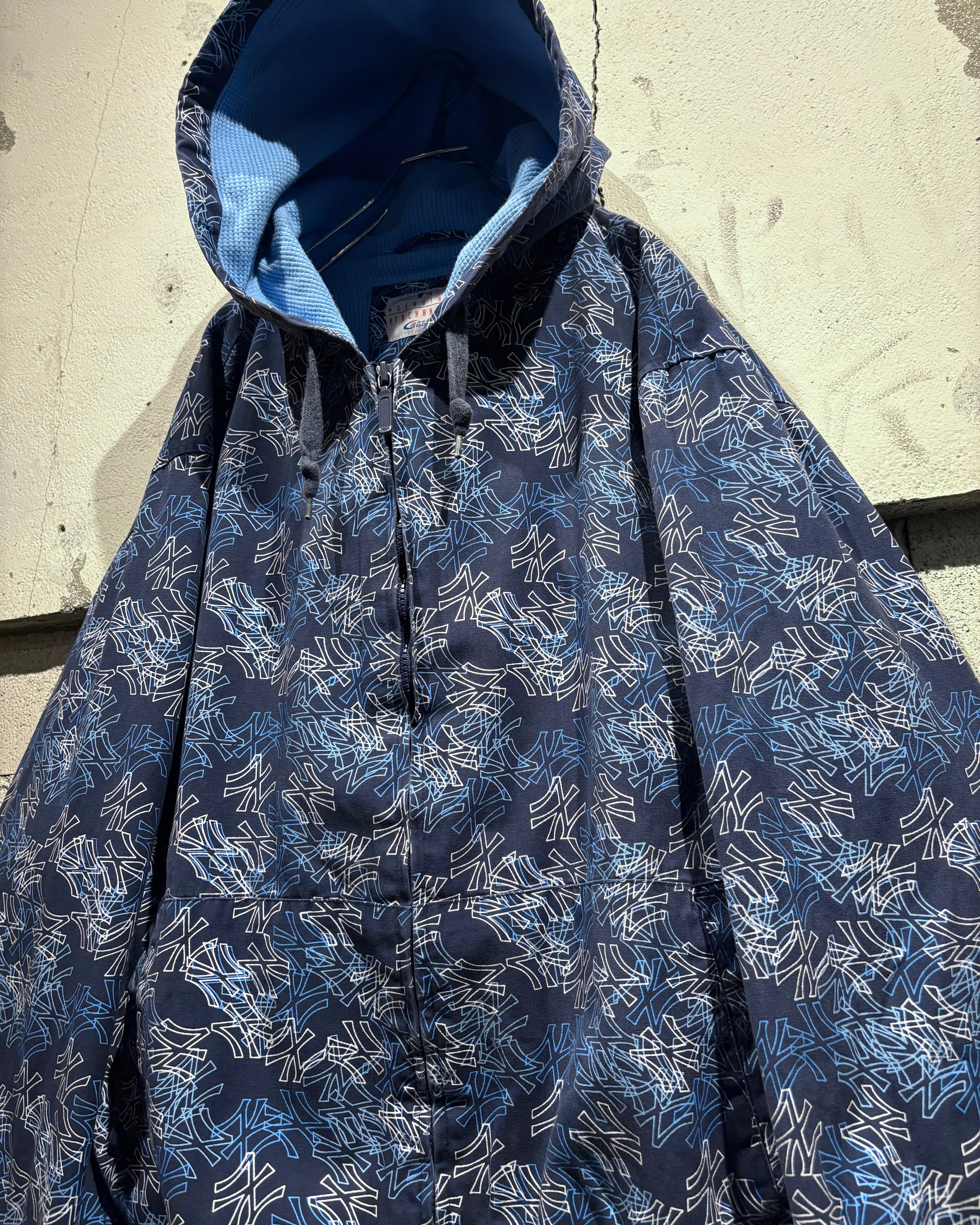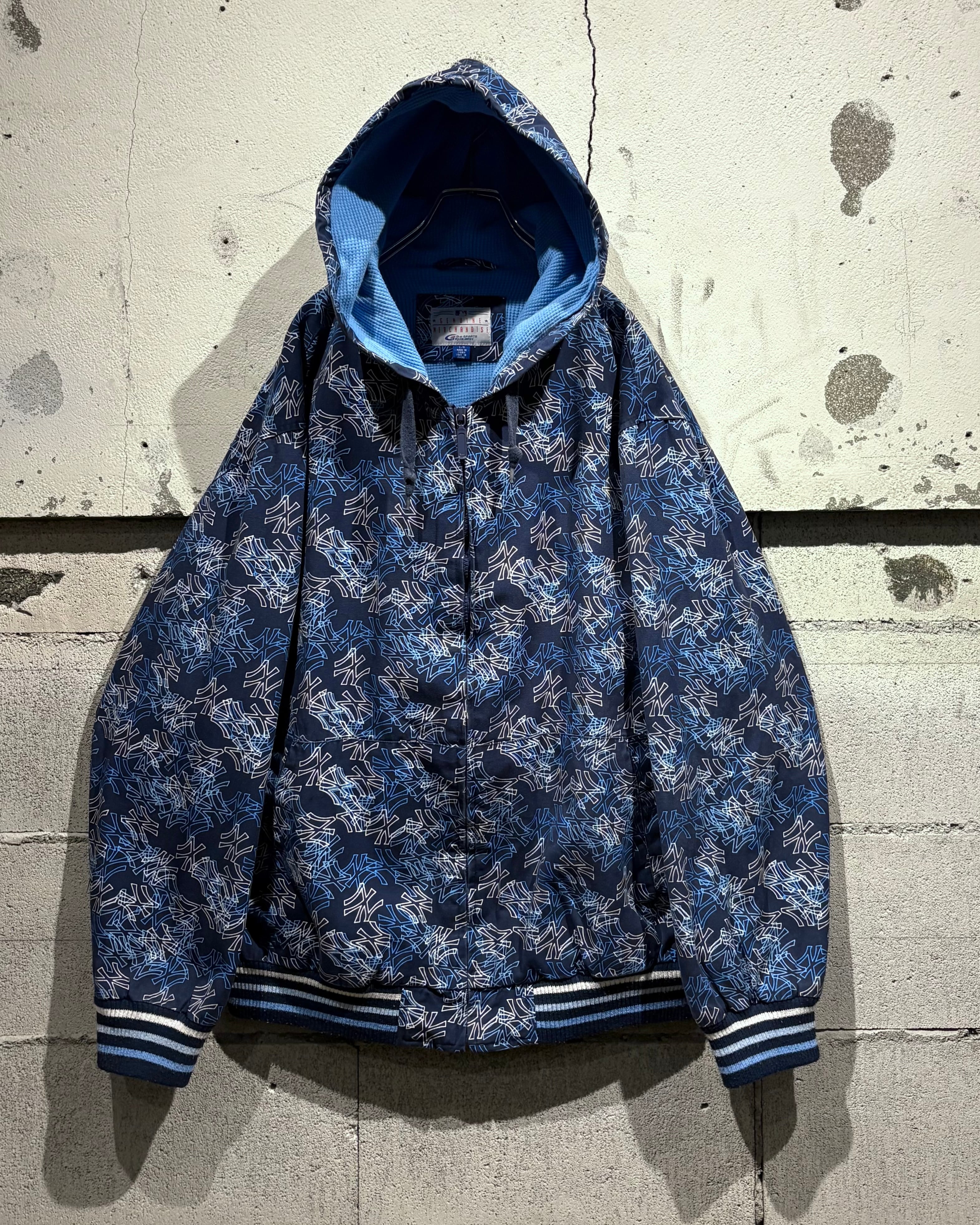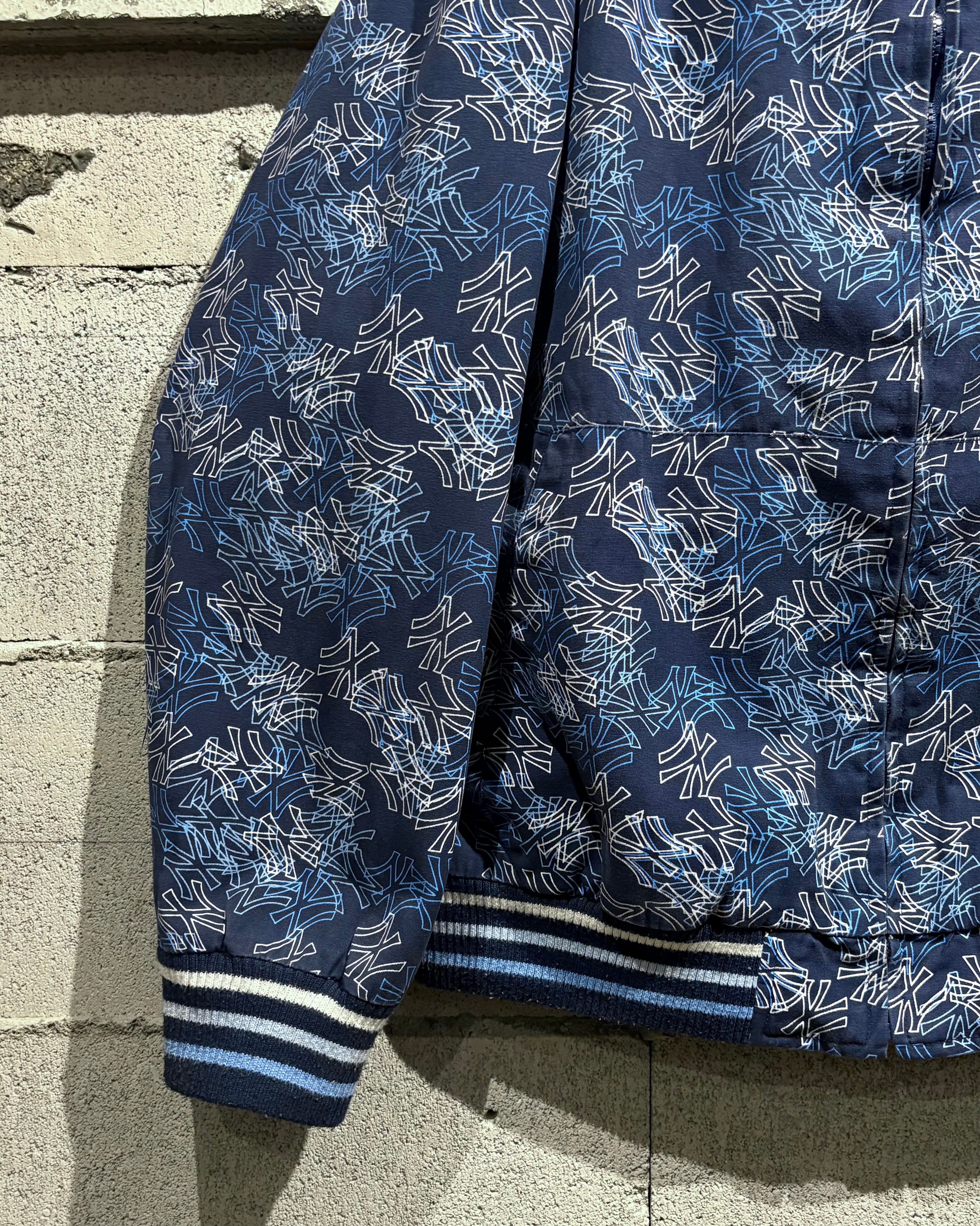 ネイビーボディをベースに、ヤンキースロゴを総柄で落とし込んだ1着。