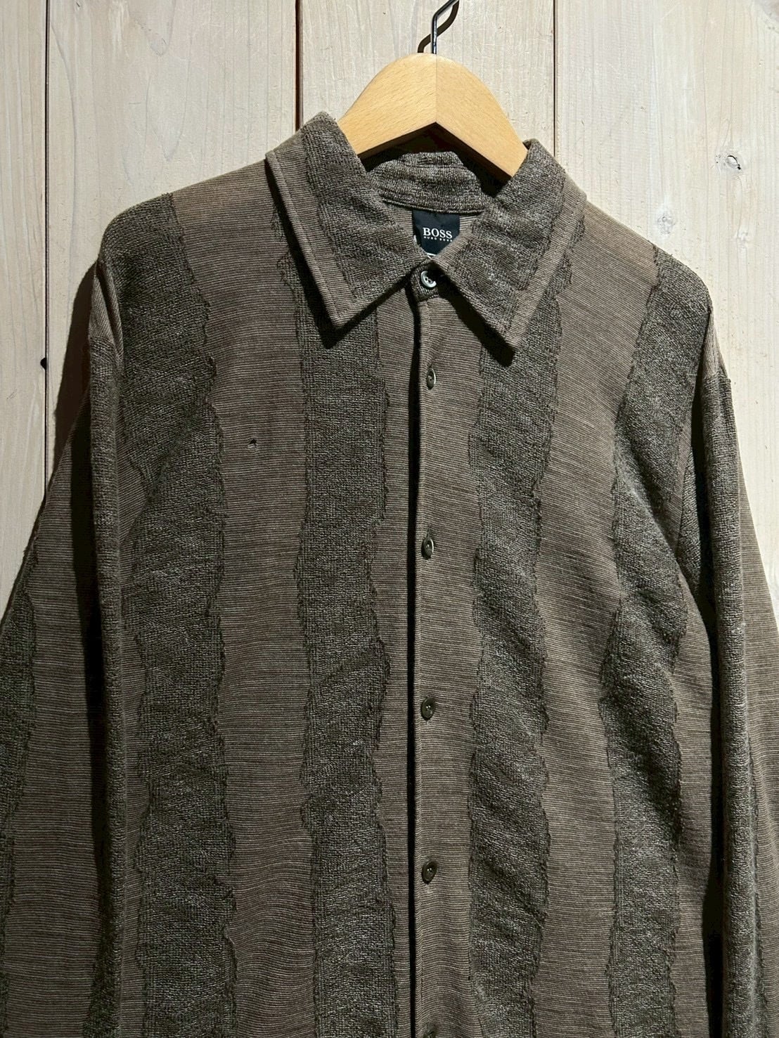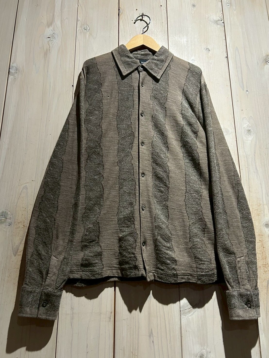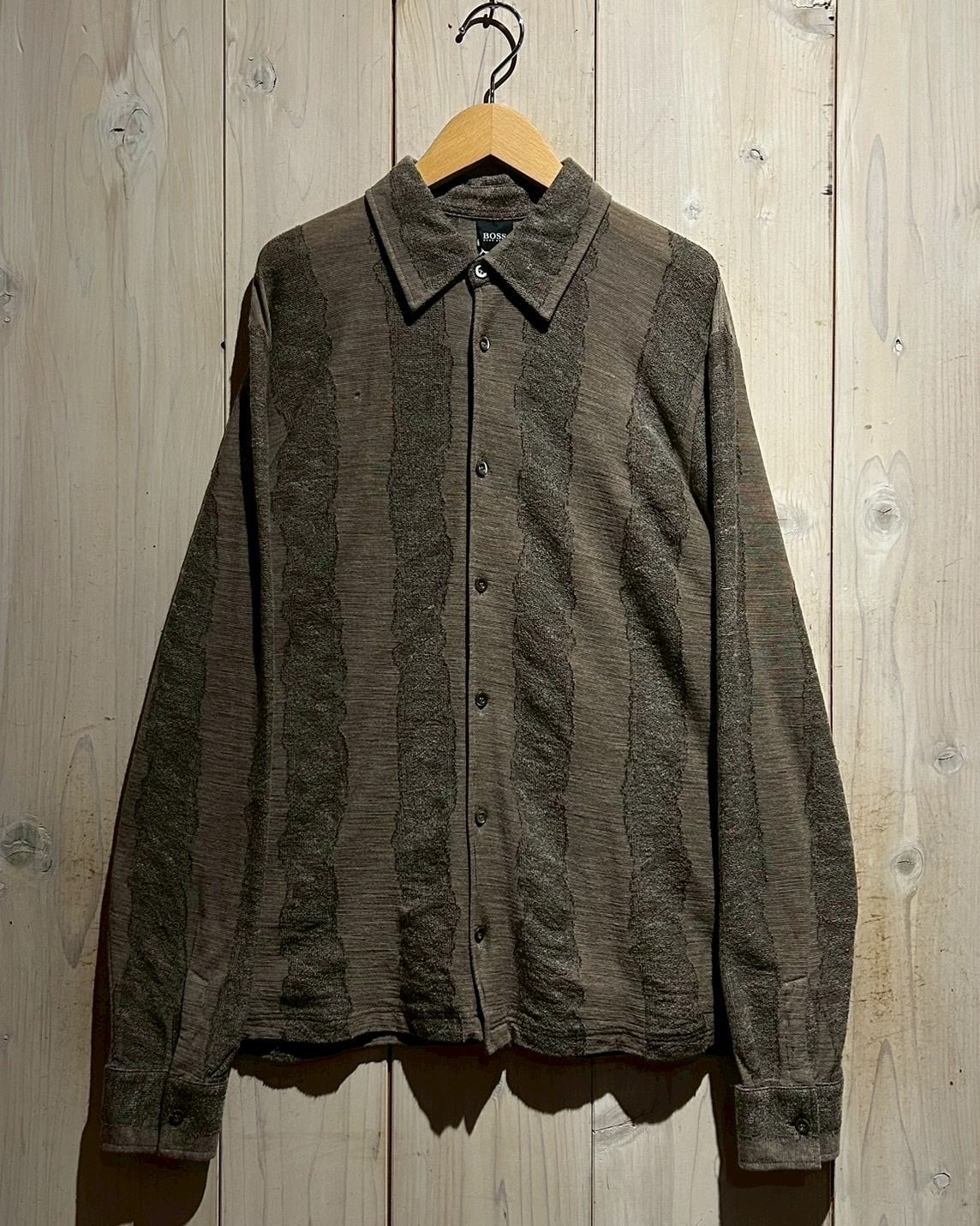 ブランドらしい上質な素材使いと、ひと癖あるデザインが合わさった、“BOSS HUGO BOSS”のニットシャツの逸品です。