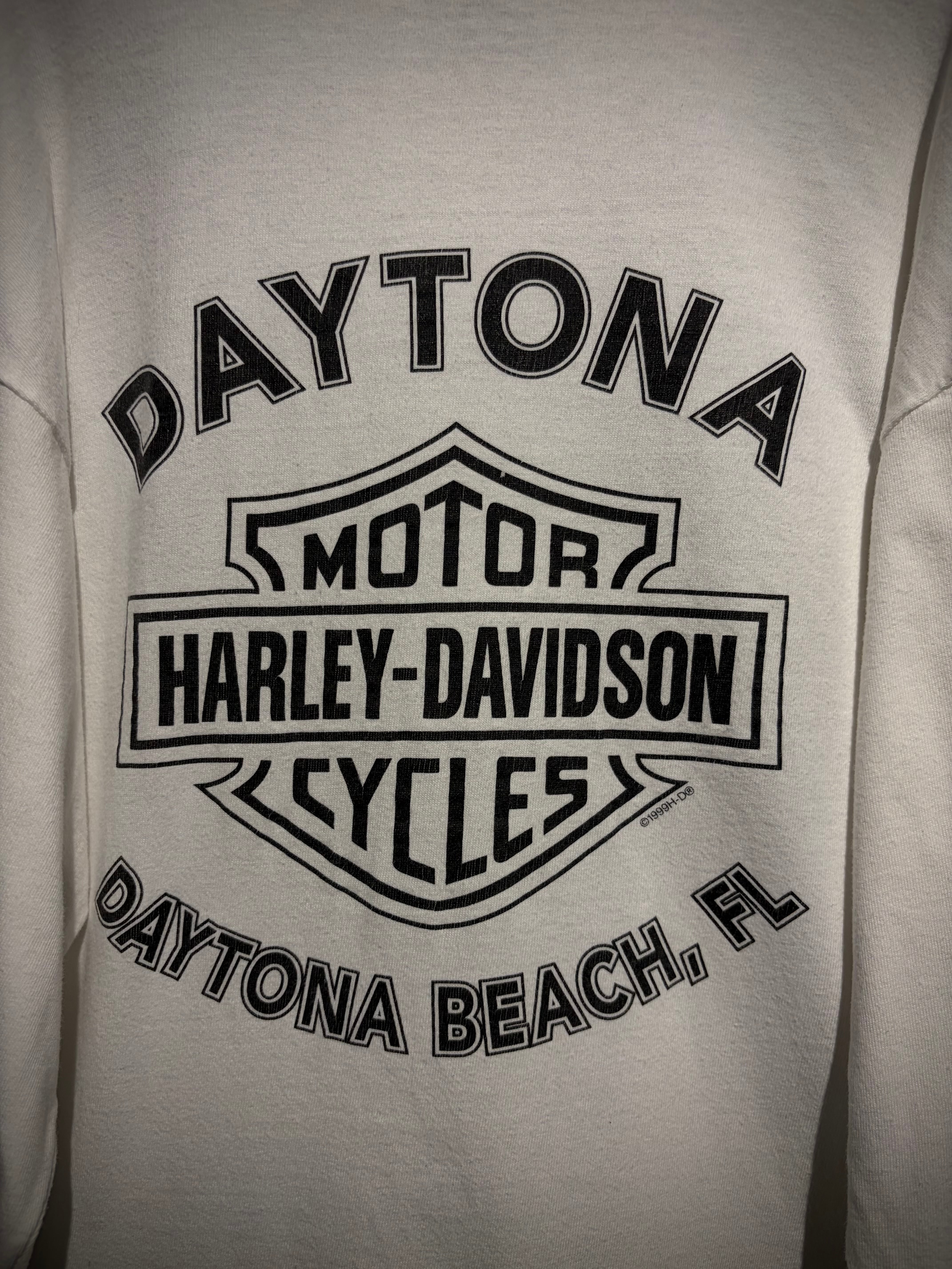 人気の袖フレイムに加え、オールホワイトという稀少な個体。“Harley-Davidson”のスペシャルな1着です。