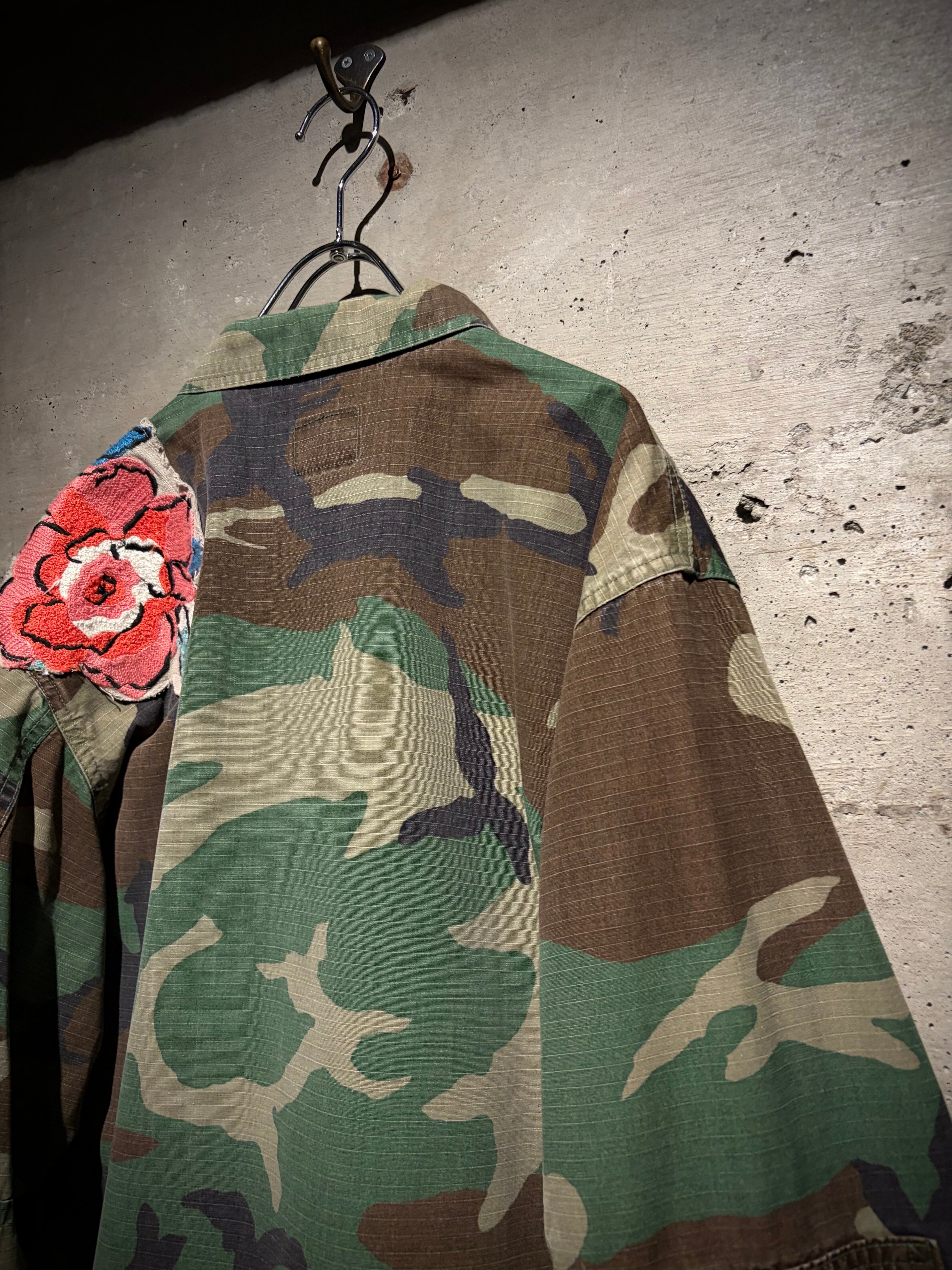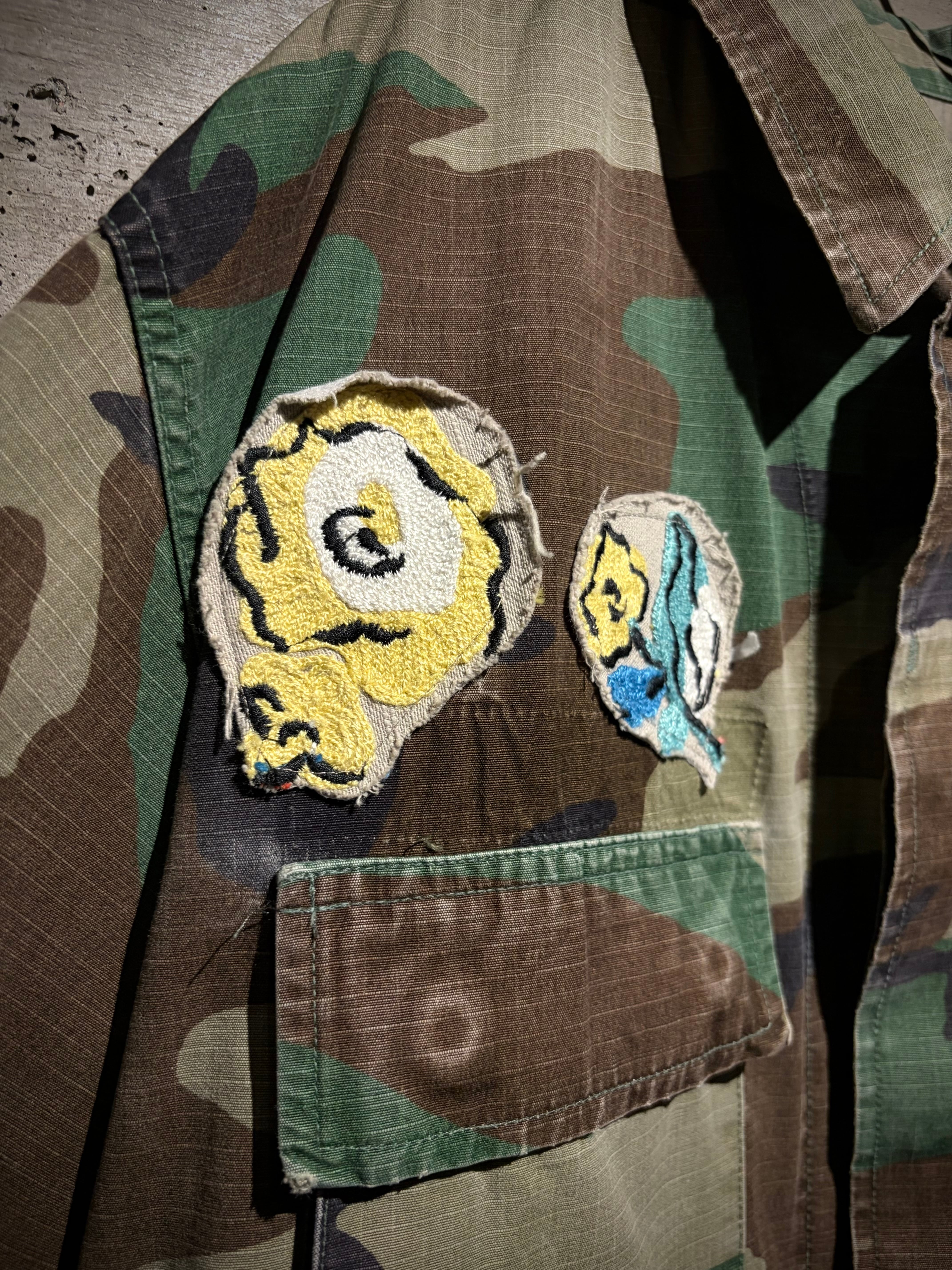 アメリカ軍の陸軍、海軍、空軍の戦闘服を統一するために開発され、野闘服として着用されていた“Battle Dress Uniform”、通称BDUジャケットより、前所有者の手によってカスタムが施されたスペシャルな1着をご紹介いたします。