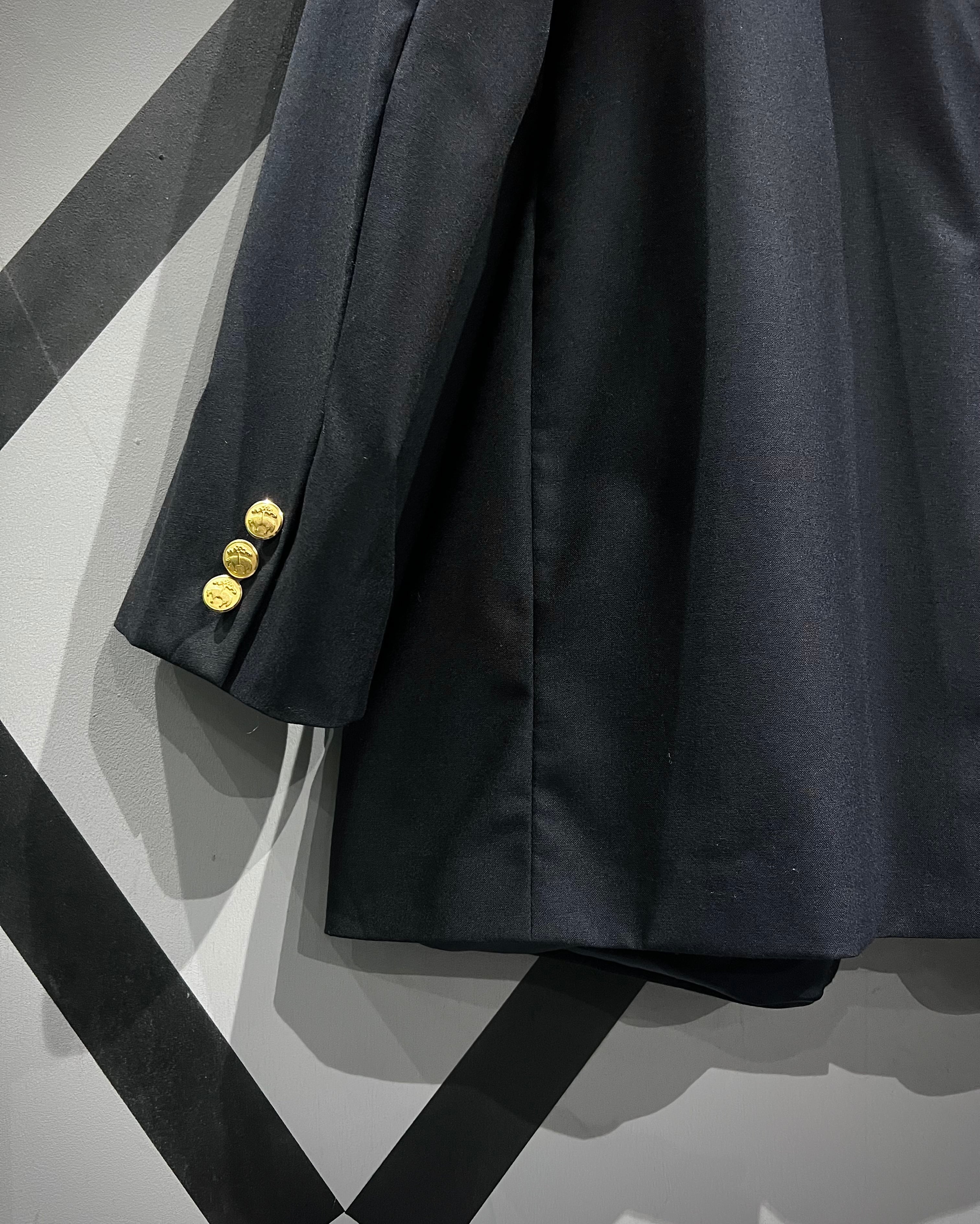 フロントにはブランドロゴ入りの金ボタンを配置。シンプルな中にもしっかりとした主張を持たせつつ、ラペルやポケットのバランス、端正な仕立てからは1818ラインならではの完成度の高さが伺えますね。