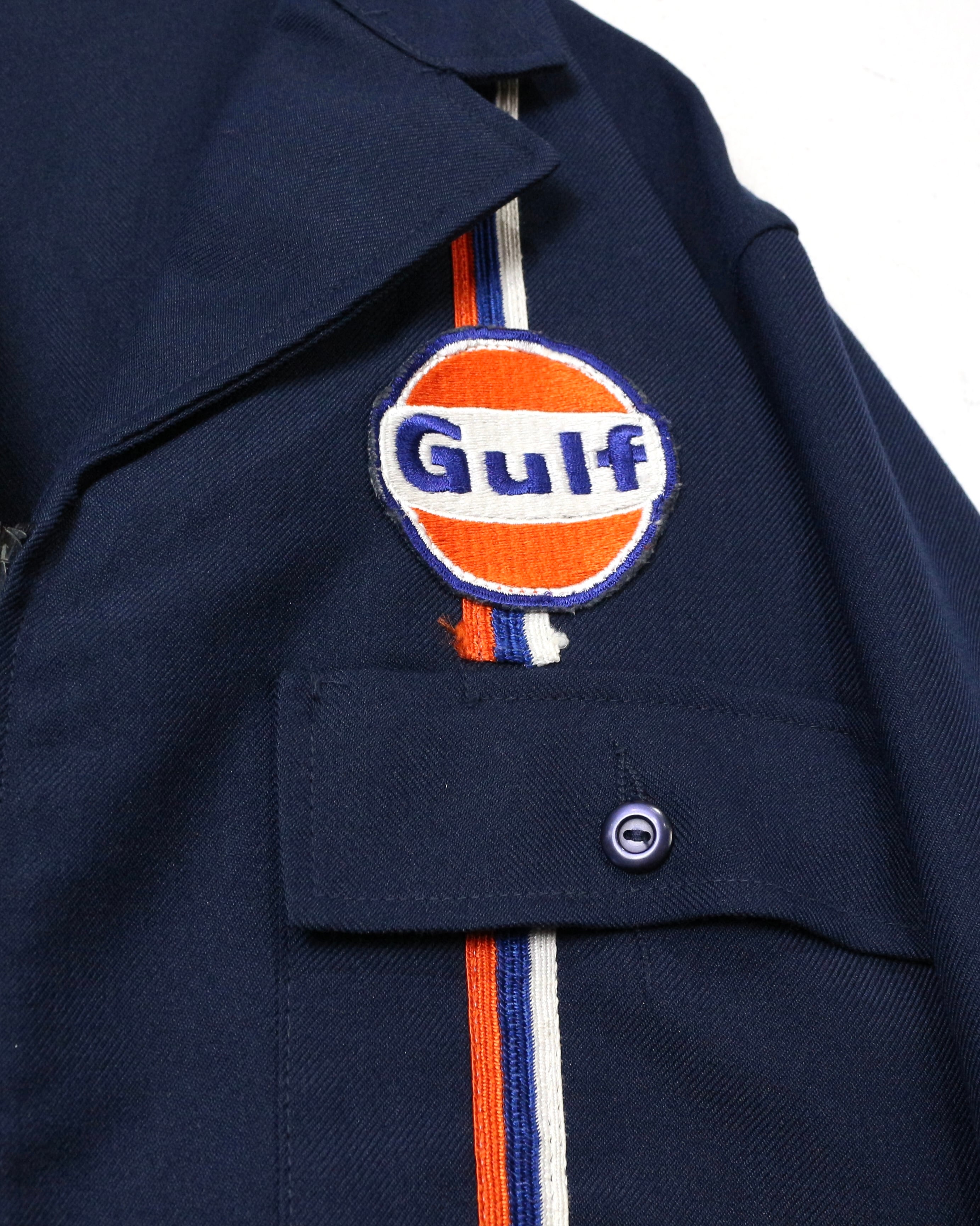 ワークジャケットらしいタフなファブリックを採用したボディに、胸元にはフラップポケットを配置。そこにGULFのロゴパッチを重ねることで、企業モノならではのタフさとキャッチーさを兼ね備えた1着。