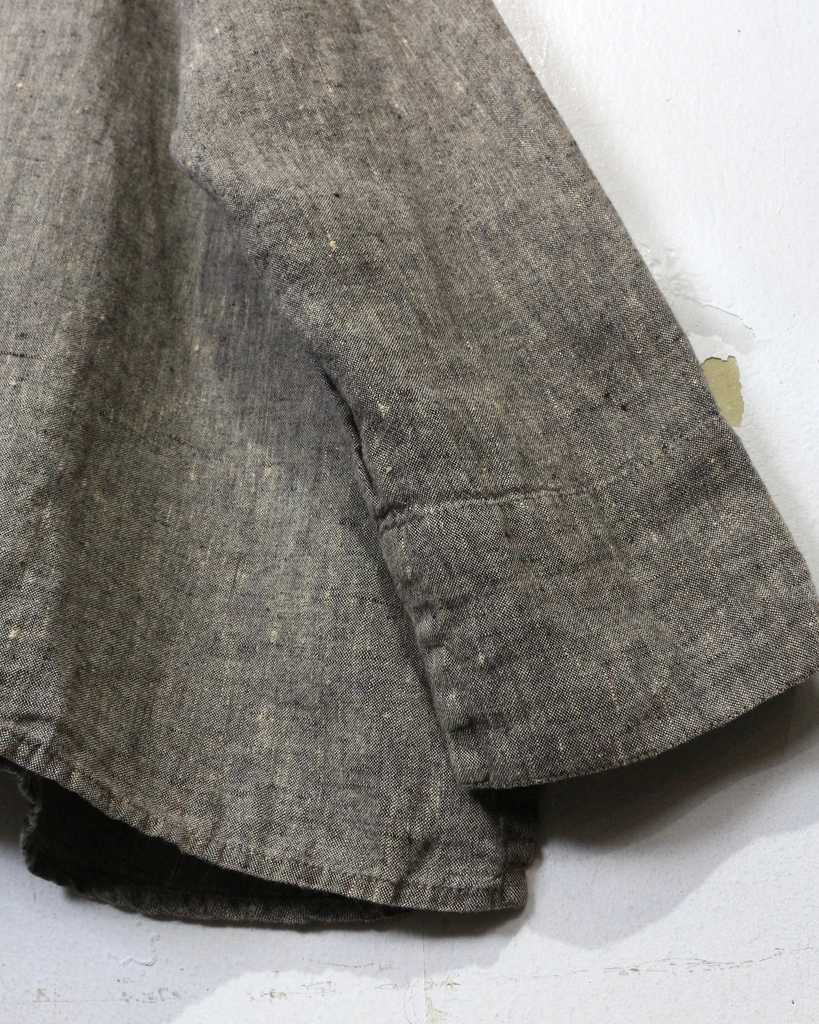生地には上質なリトアニア産リネンを使用。しっかりとした織りでありながらも柔らかさを兼ね備え、通気性、吸湿性にも優れた快適な着心地を実現。着用と洗いを重ねるごとに風合いが増し、自分だけの1着へと育っていく経年変化も楽しめます。
