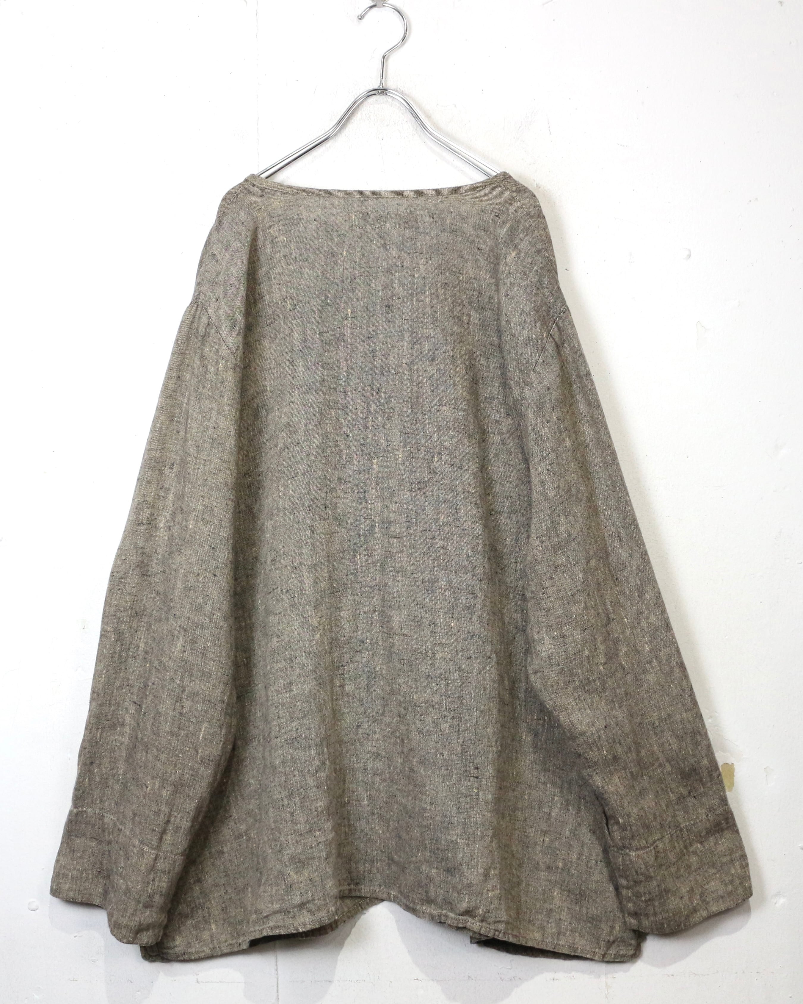 ナチュラルなブラウンベースのボディに、ネップ感のある織りが表情豊かに浮かぶリネンジャケット。