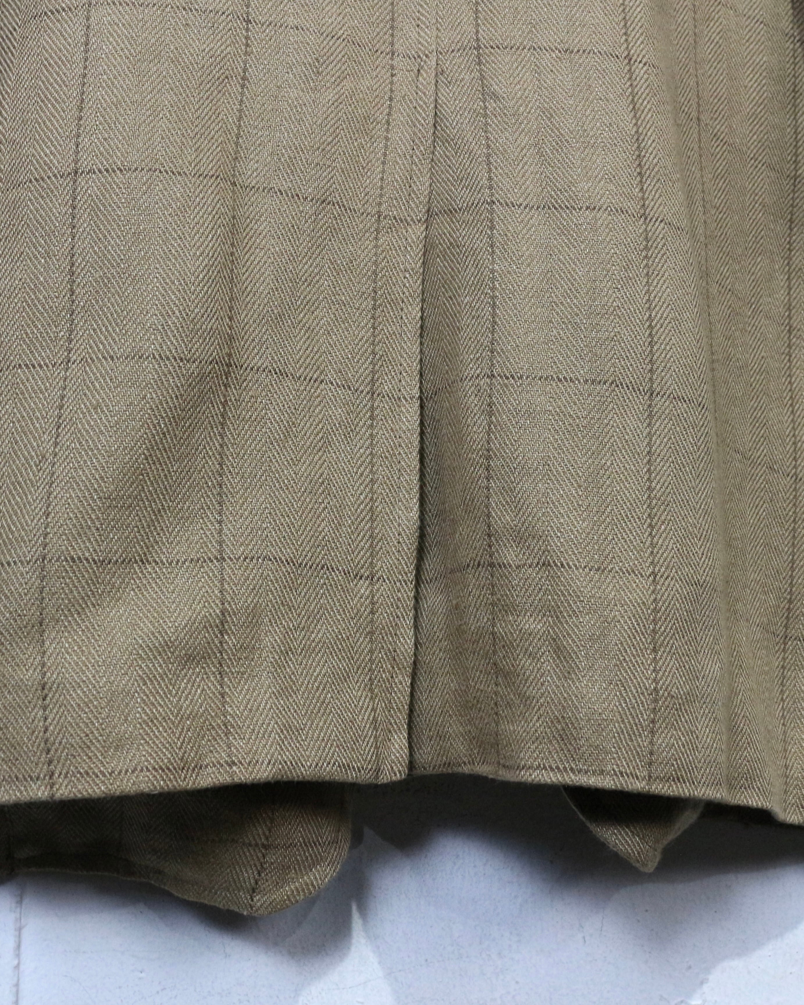 素材にはリネン混のファブリックを採用。リネン特有のドライな質感と通気性に加え、ナチュラルな風合いが魅力で、春夏シーズンに適した軽快な着用感に仕上がっています。