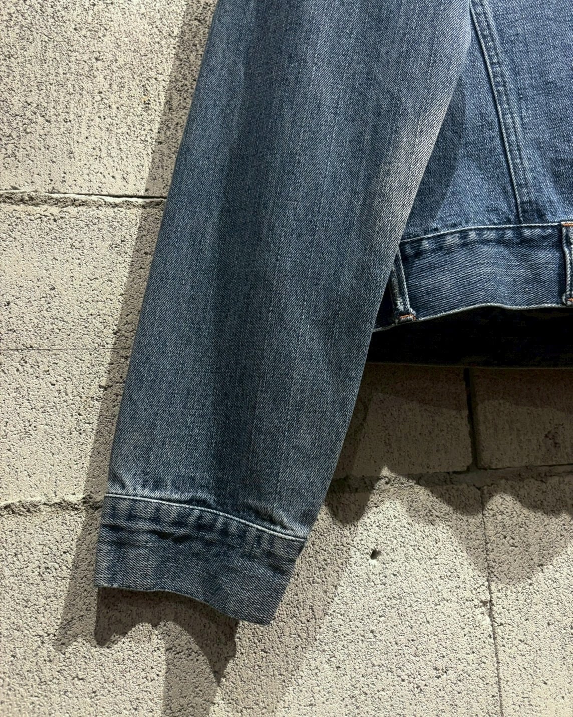 鮮やかなオレンジのカンヌキによるアクセントも抜群で、デニムのアタリ具合も程よく、これから着用を重ねて自分ならではの表情に仕上がっていくのも魅力的。