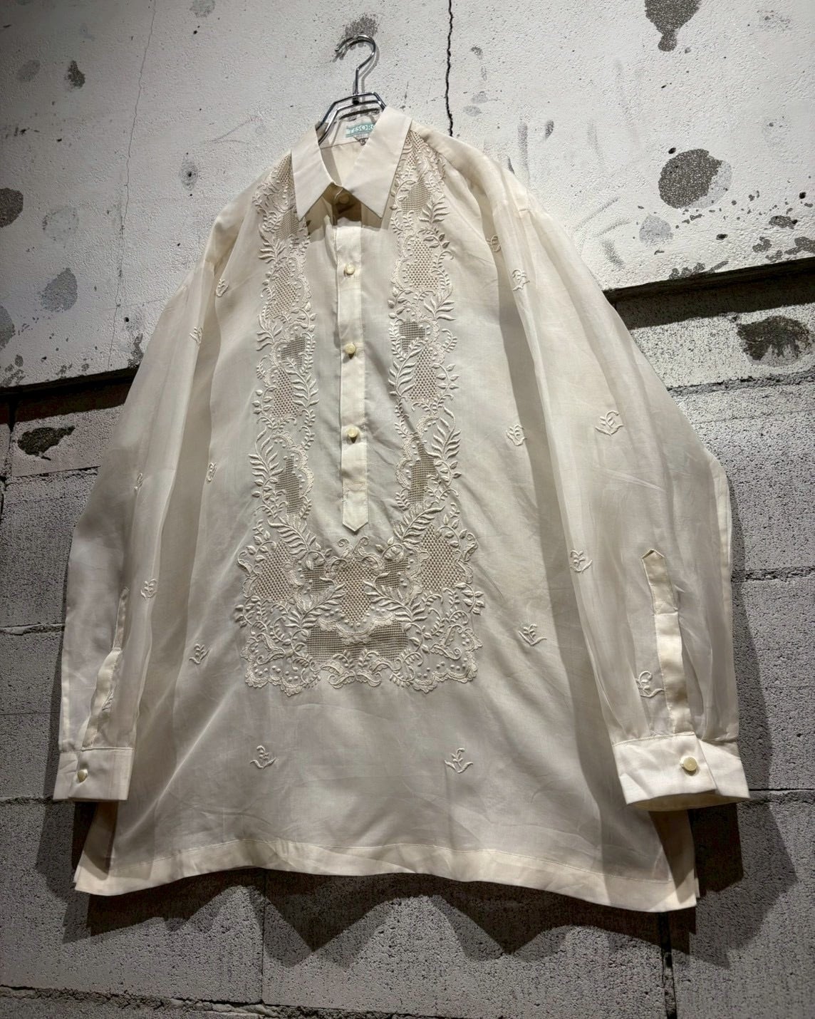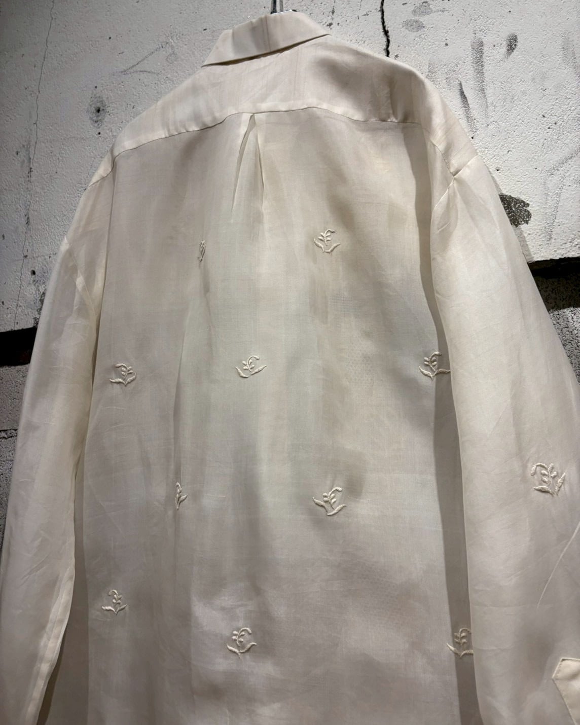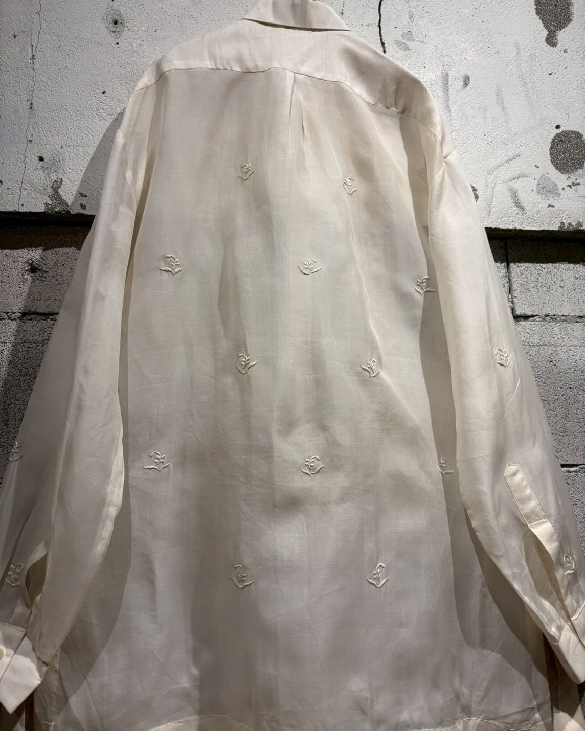 シアー感のある軽やかなボディに、フロントへ丁寧に施された刺繍デザインを落とし込んだ、70’sヴィンテージの1着。