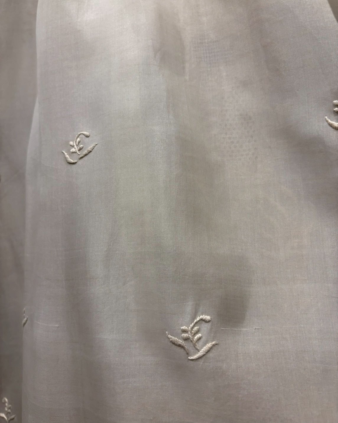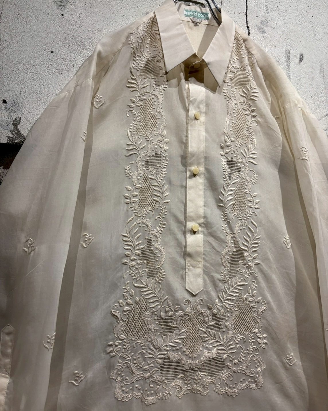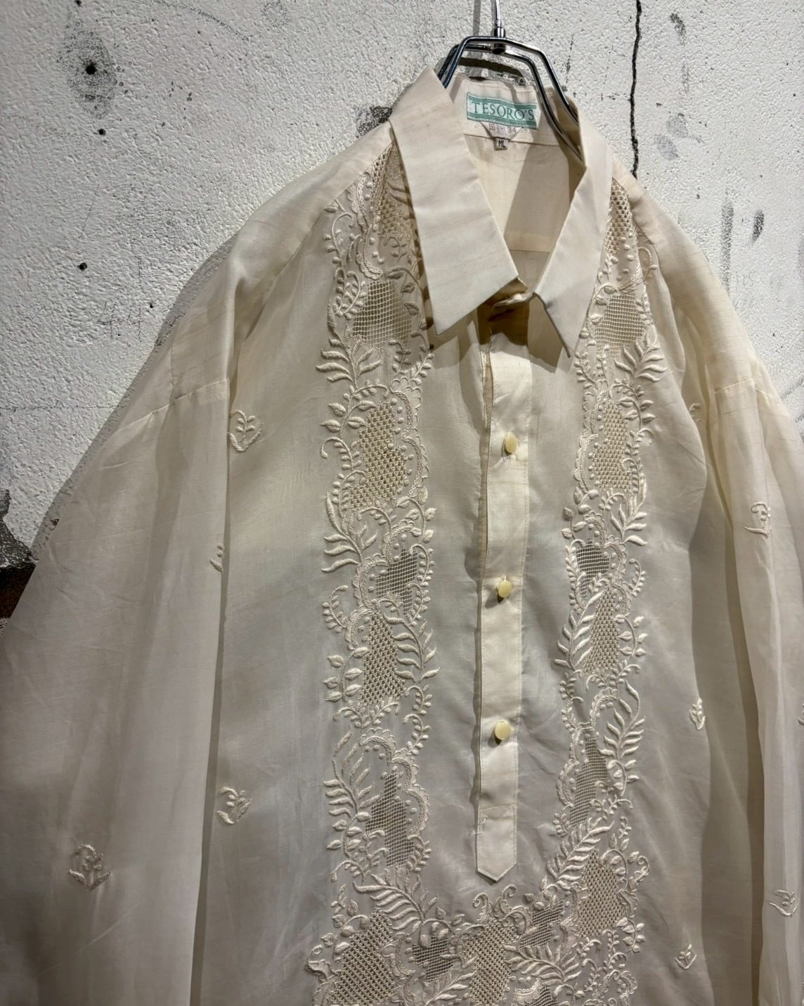 シアー感のある軽やかなボディに、フロントへ丁寧に施された刺繍デザインを落とし込んだ、70’sヴィンテージの1着。