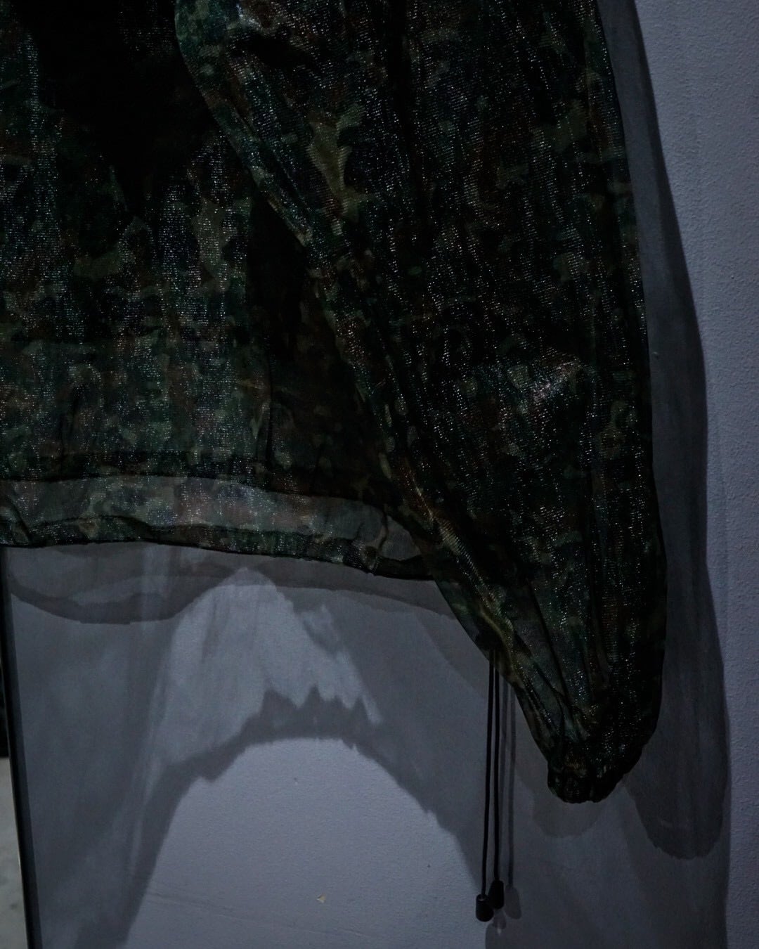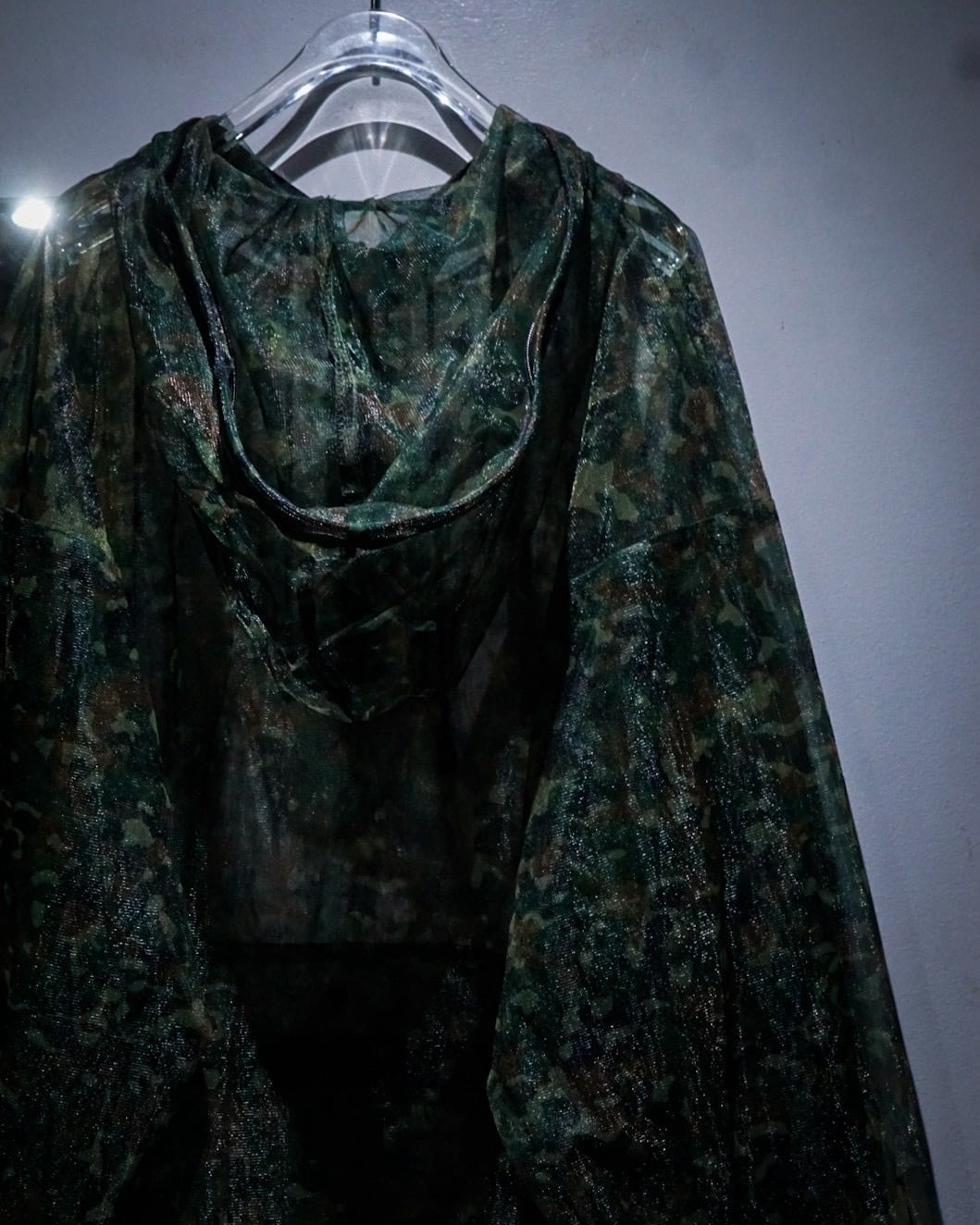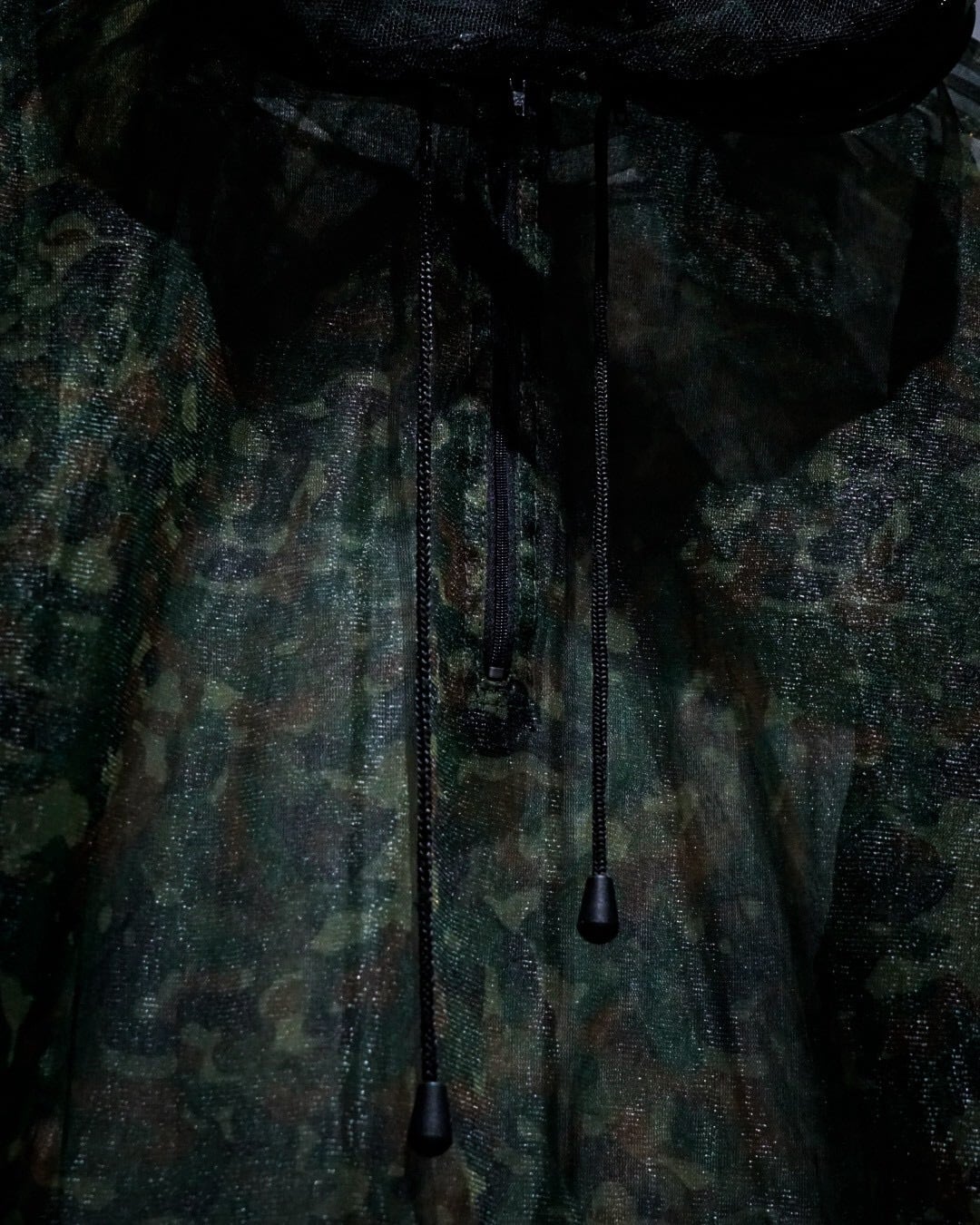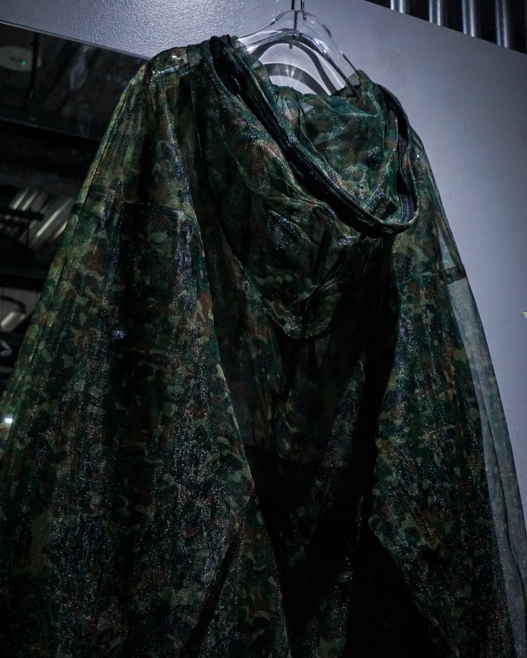 全体に迷彩柄を落とし込み、メッシュ素材特有の透け感と相まって、ストリート×テクニカルな表情に仕上がった1着。