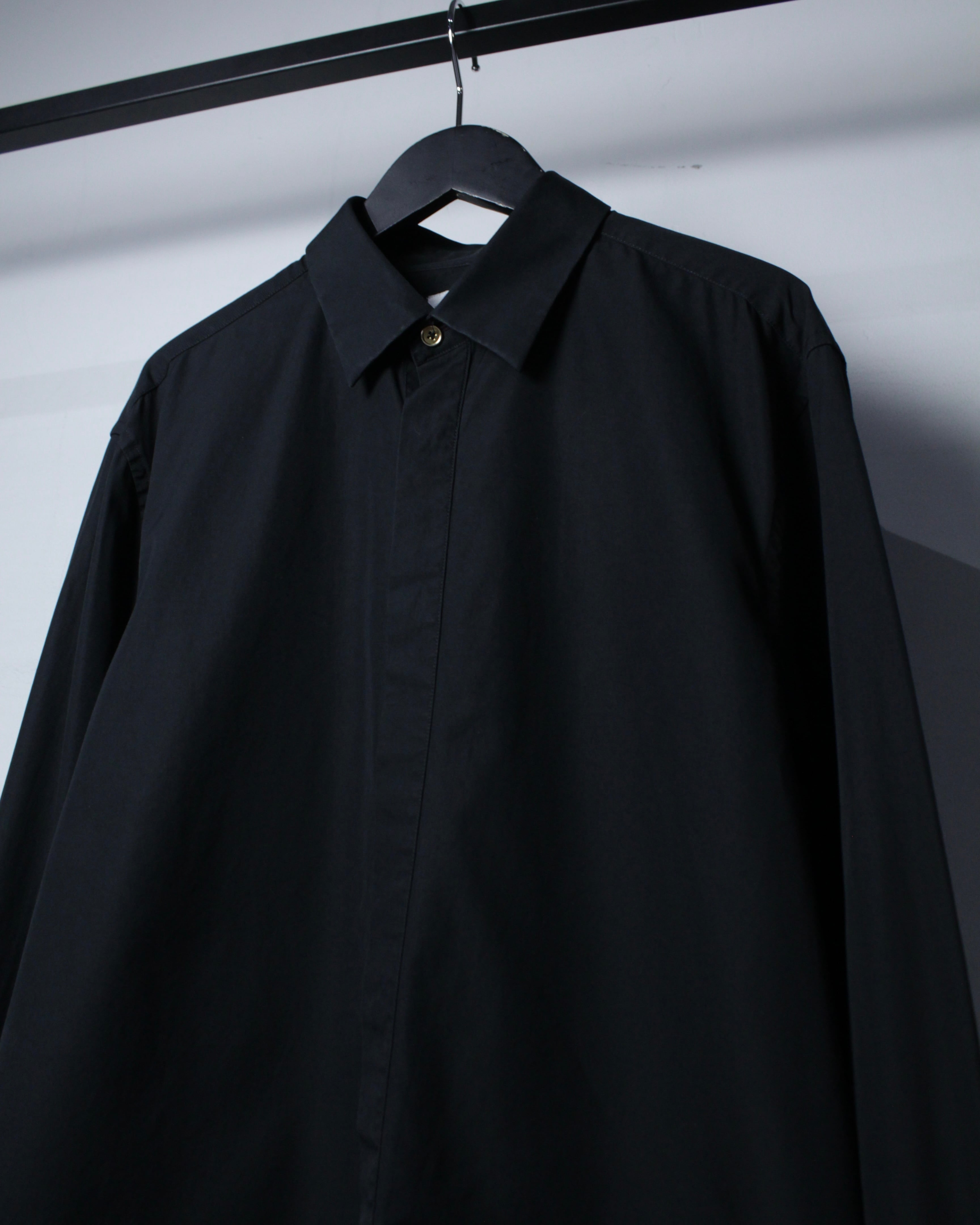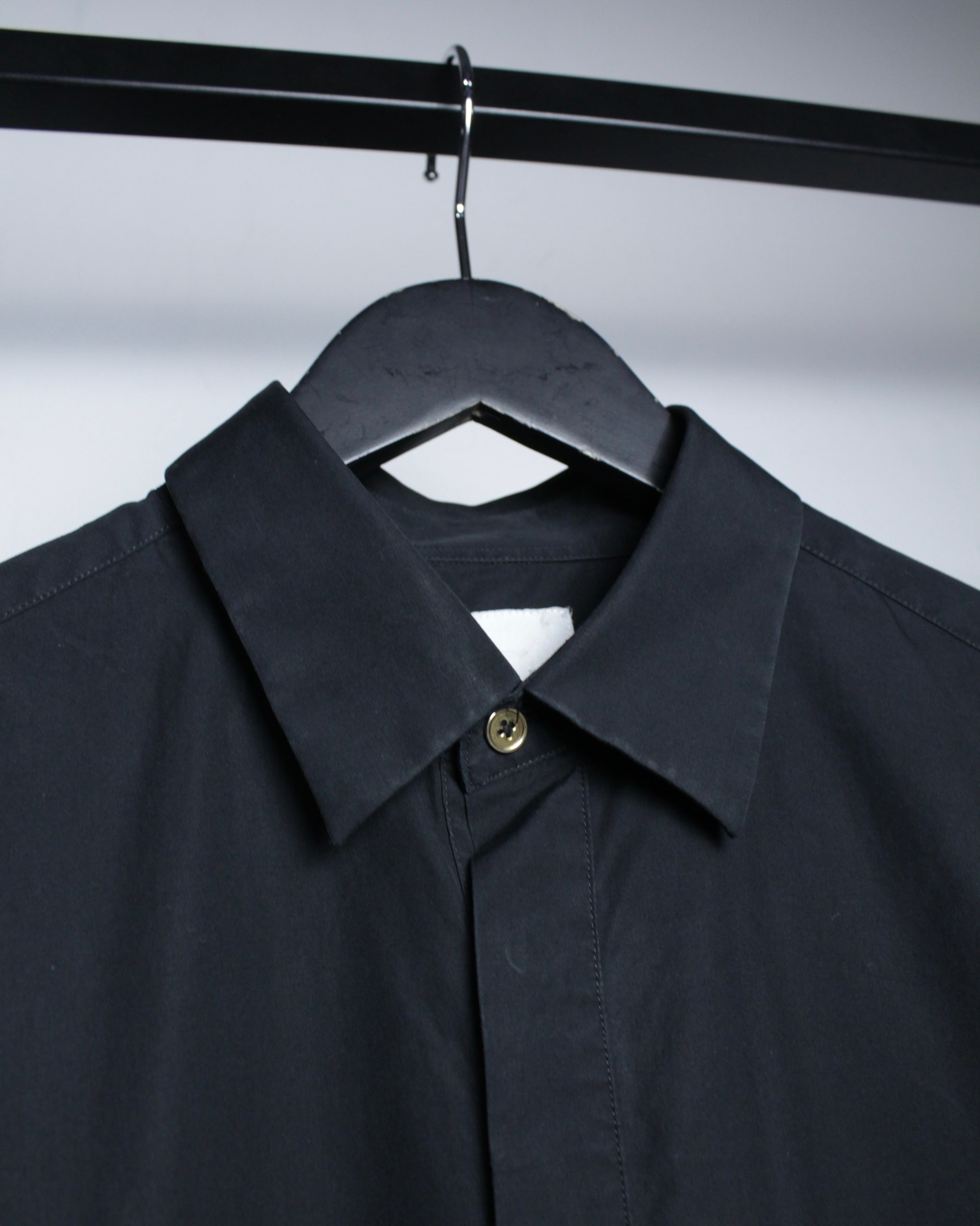 上質なコットンファブリックを用いたブラックボディは、しなやかさと程よいハリ感を兼ね備えた上品な質感。無駄を削ぎ落としたプレーンなルックスの中に、ブランドらしい洗練された空気感が宿っています。