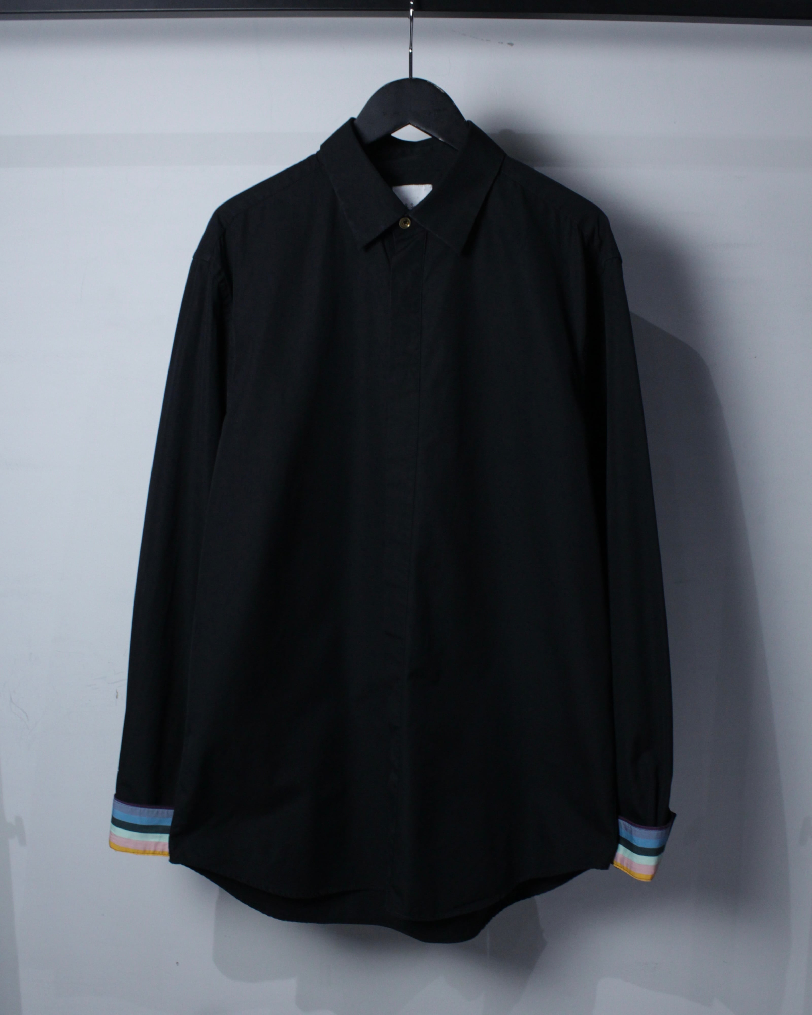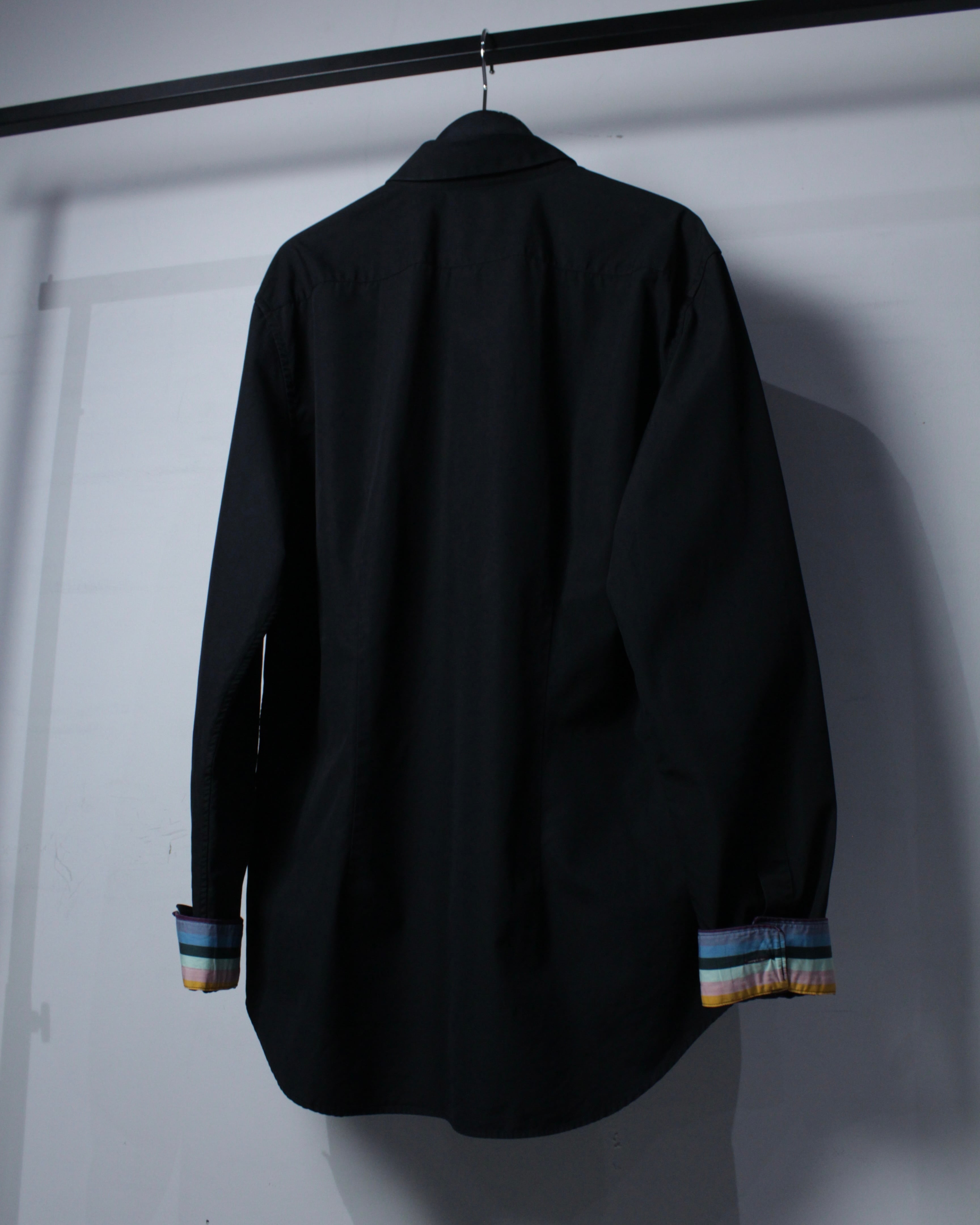 フロントは比翼仕立てを採用し、ボタンを隠すことでよりミニマルかつクリーンな印象に。さらに袖口の裏にはPaul Smithらしいシグネチャーストライプを配置し、普段は隠れながらも、ロールアップした際に覗くことで程よい遊び心とブランドアイデンティティを演出してくれます。