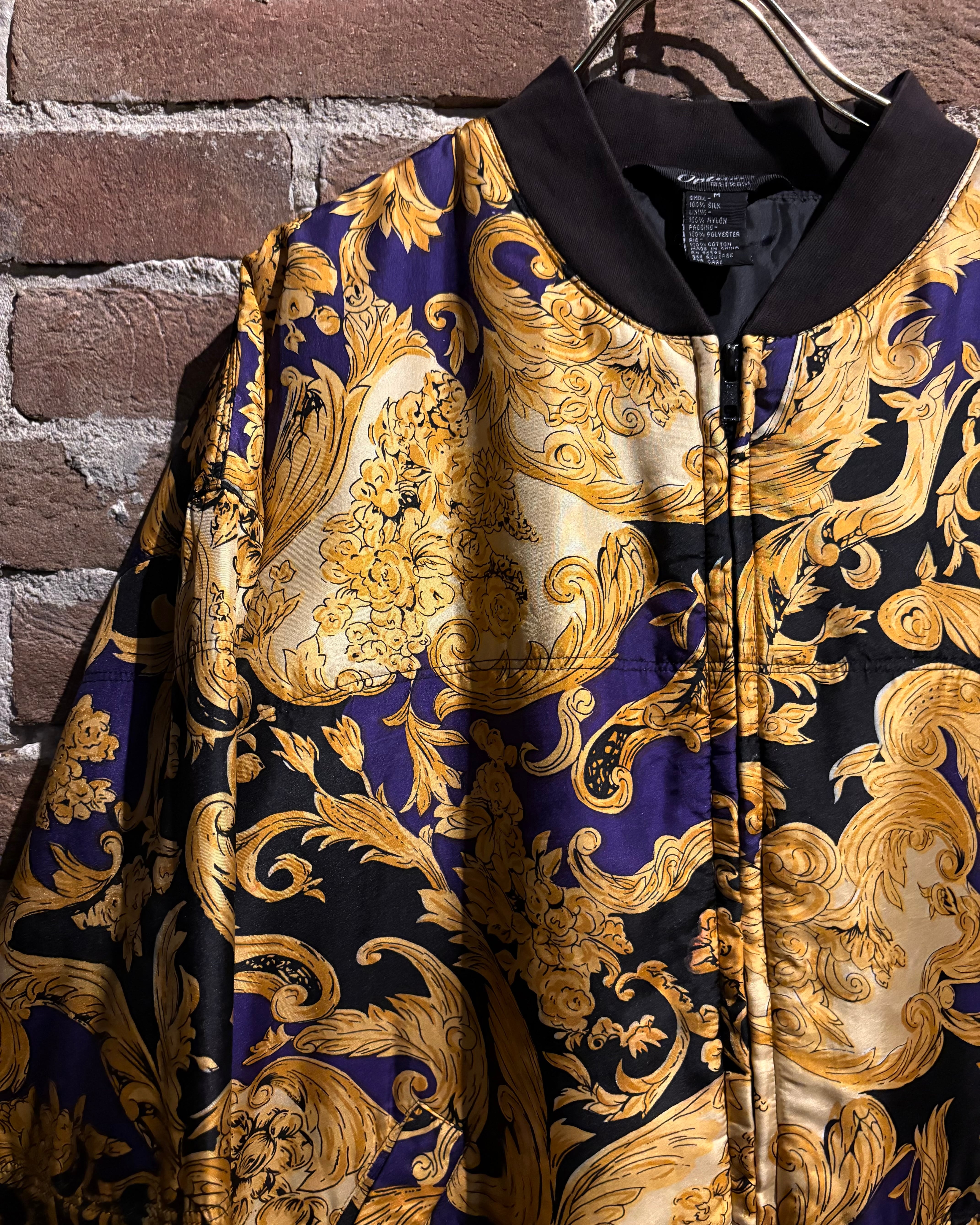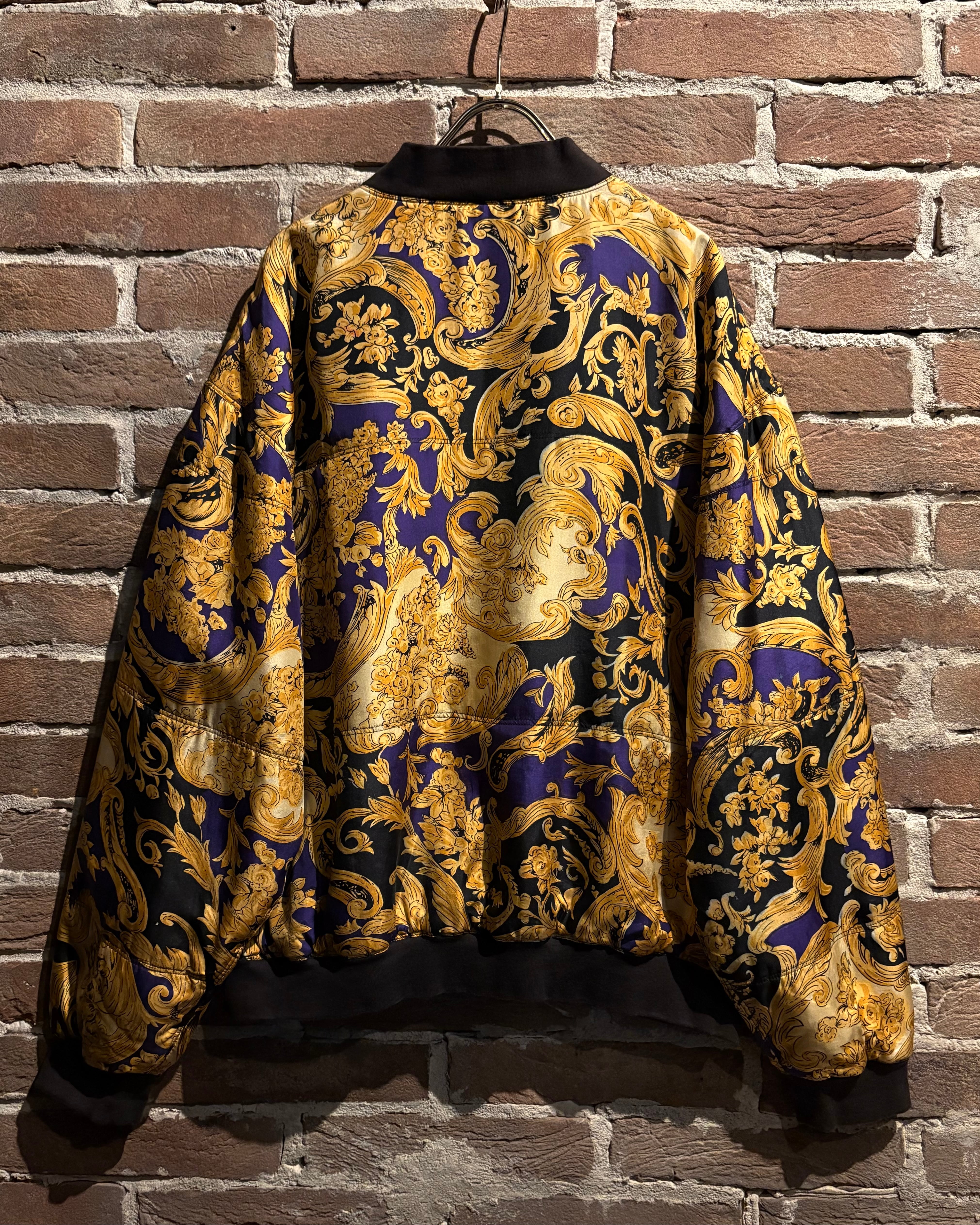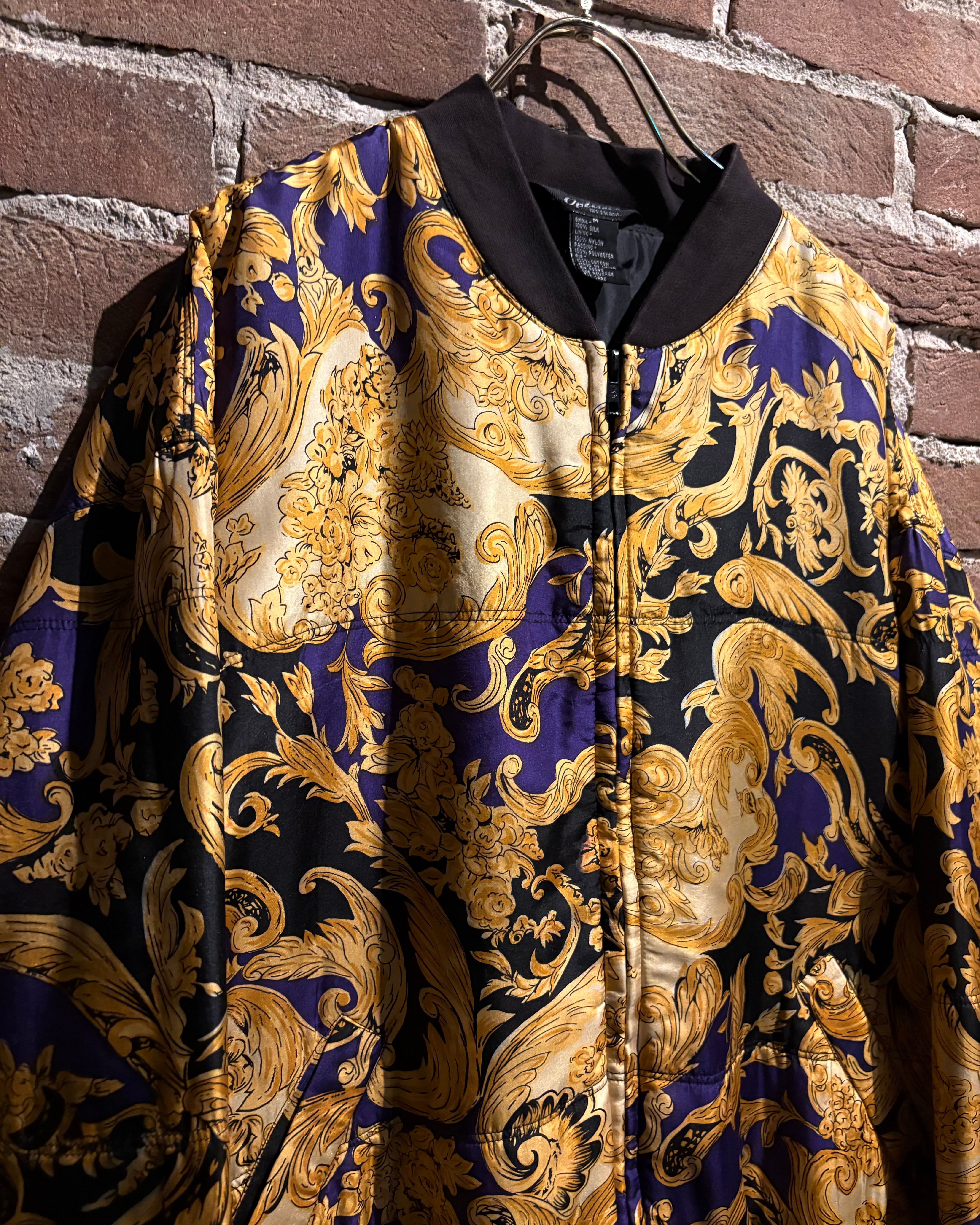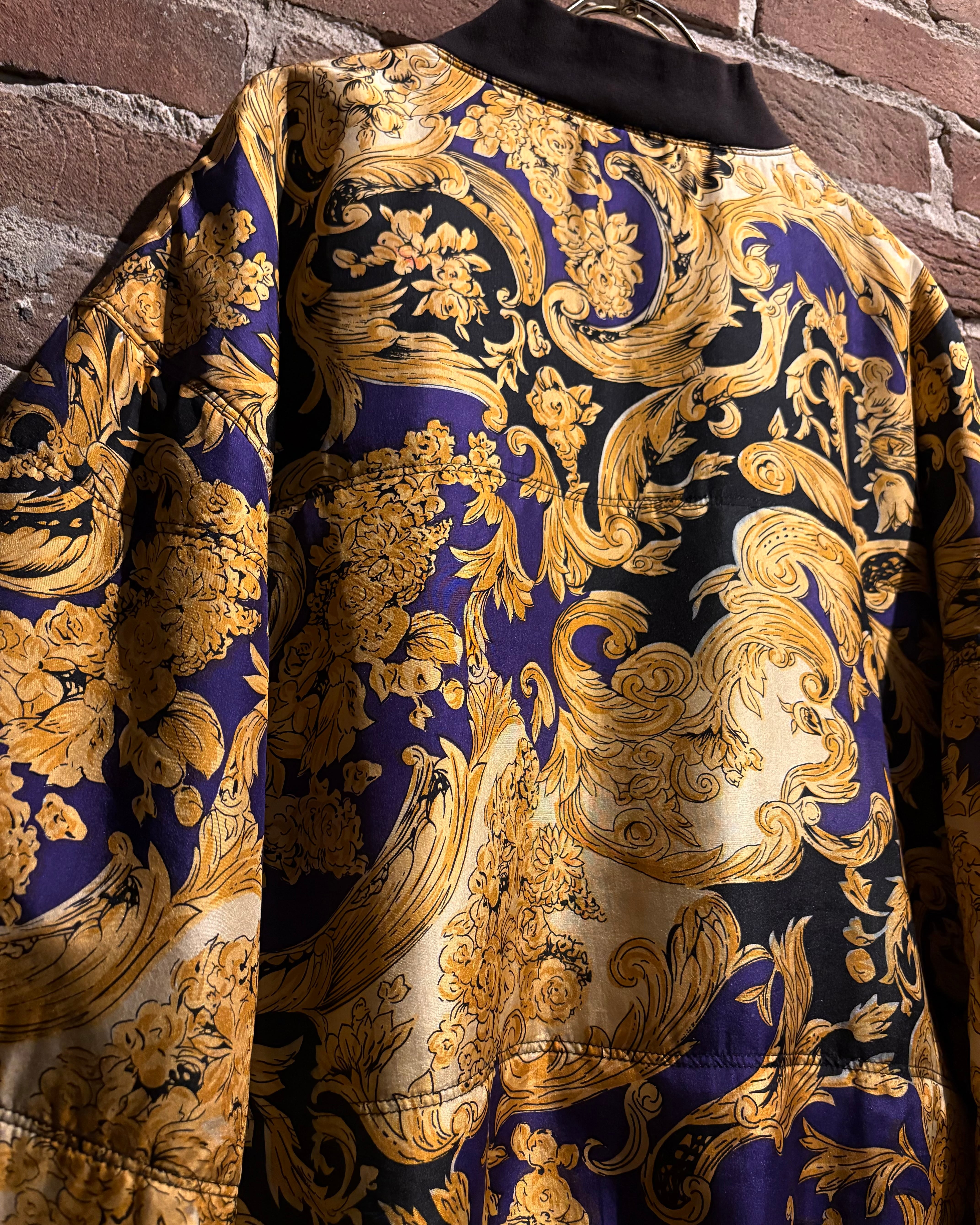 ラグジュアリーブランドを彷彿とさせる、バロック調パターンが全面に施されたブルゾンをご紹介いたします。