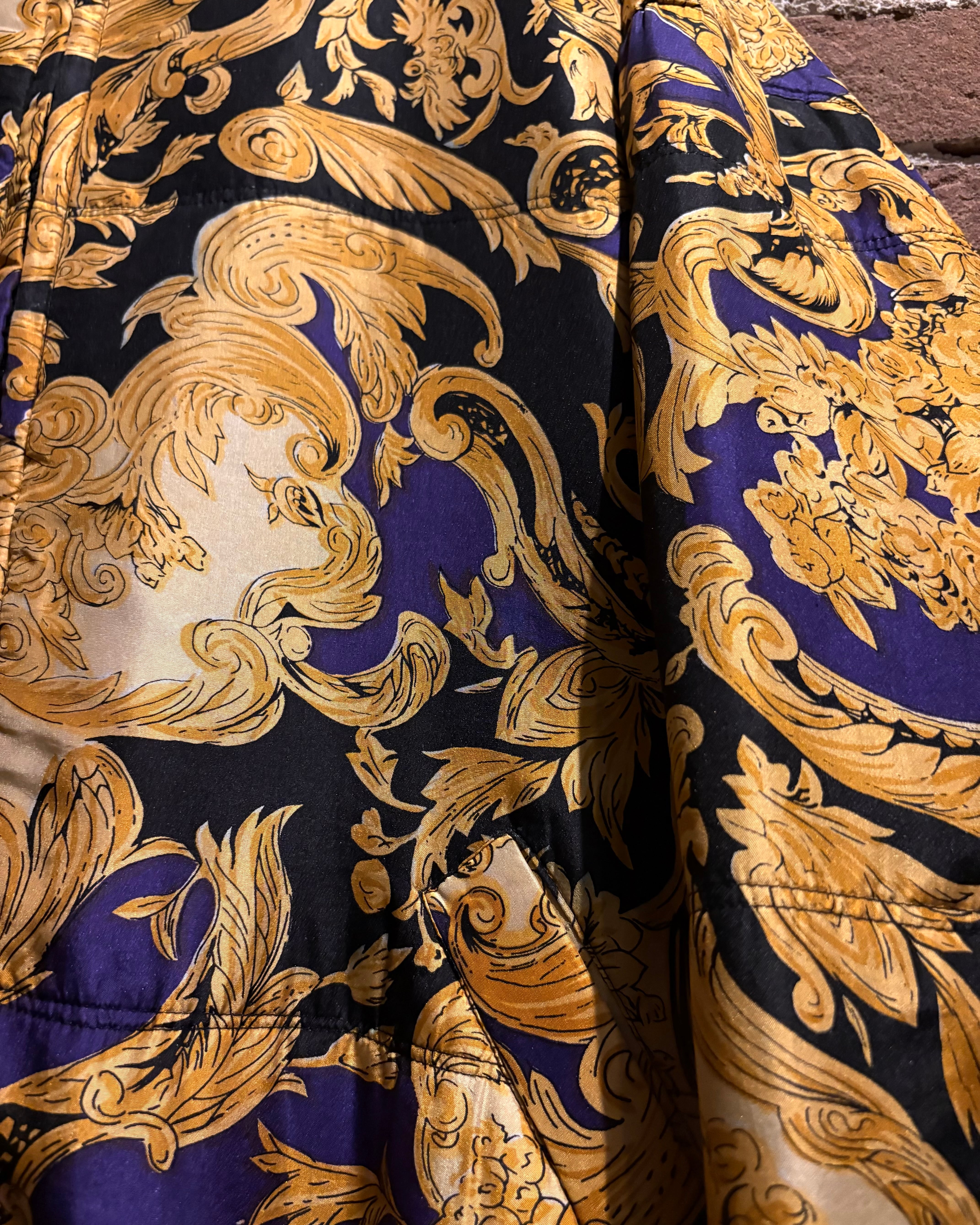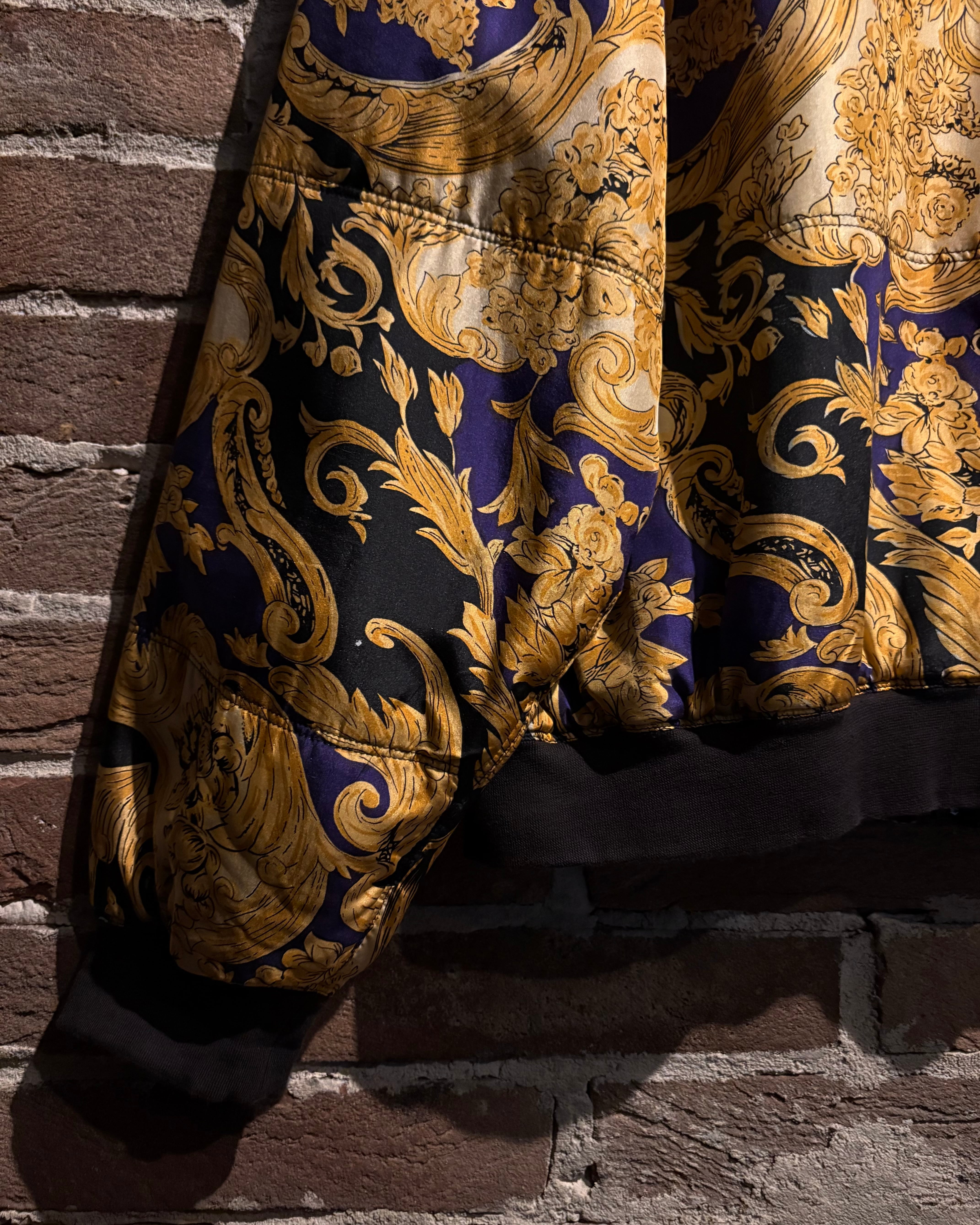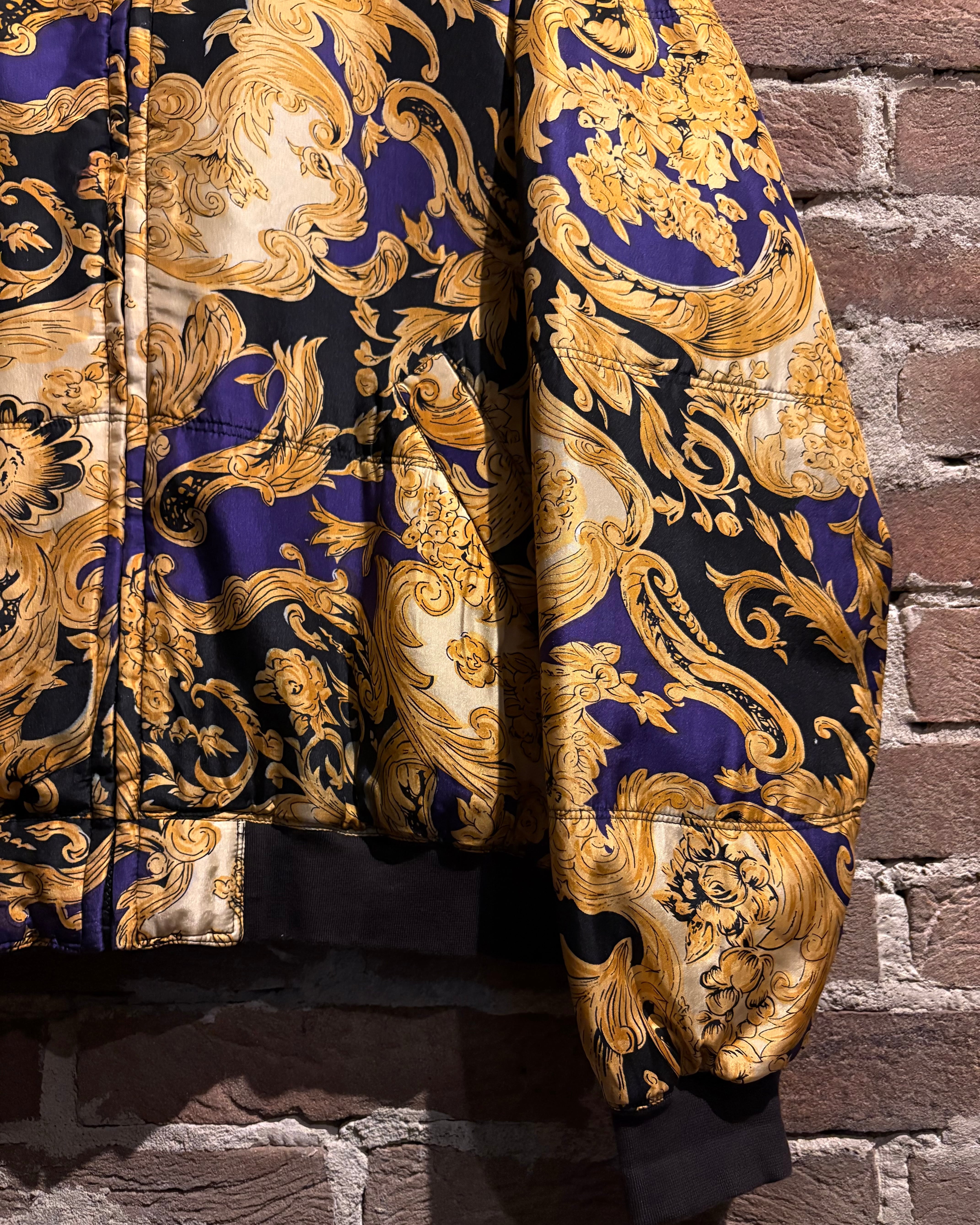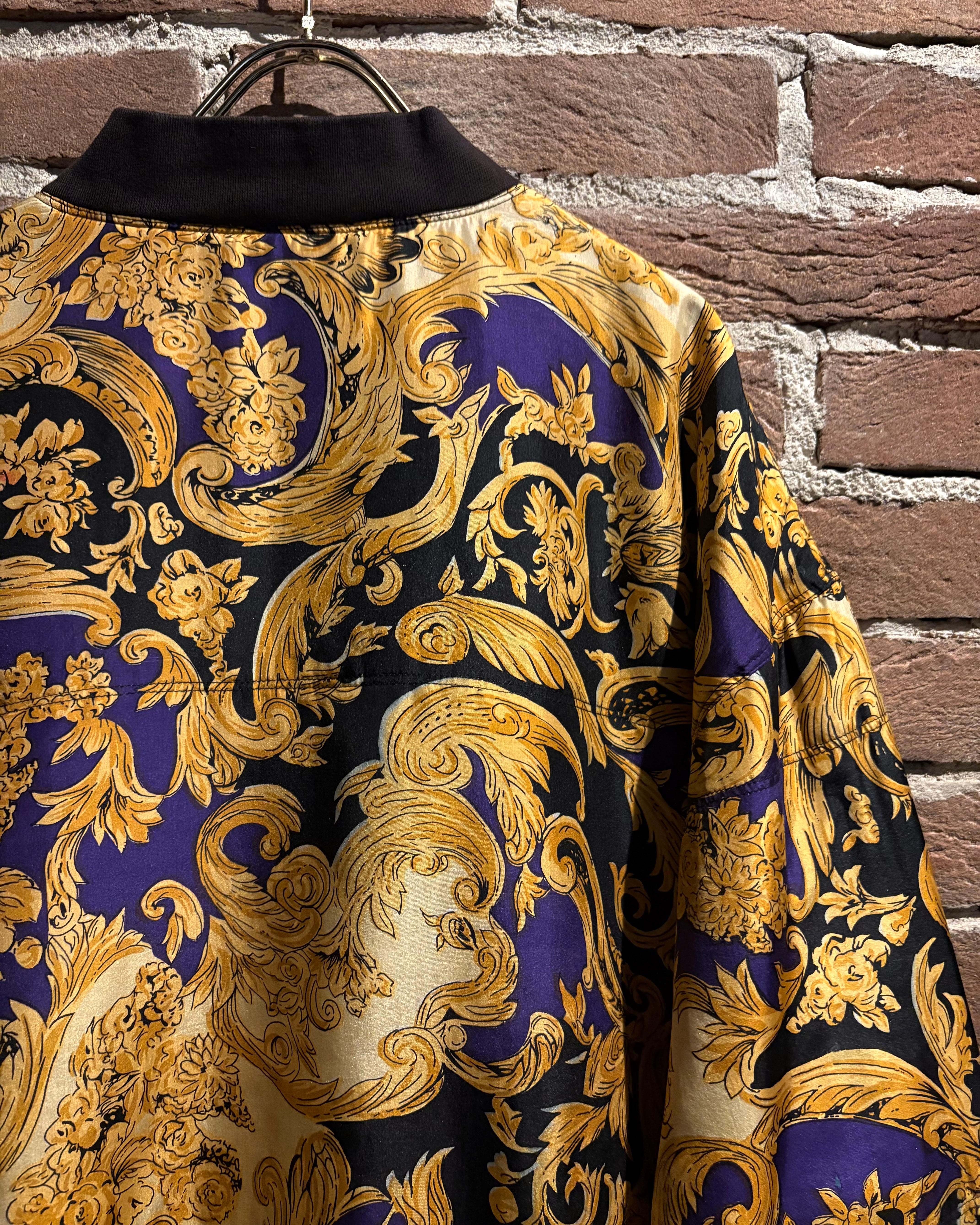ラグジュアリーブランドを彷彿とさせる、バロック調パターンが全面に施されたブルゾンをご紹介いたします。