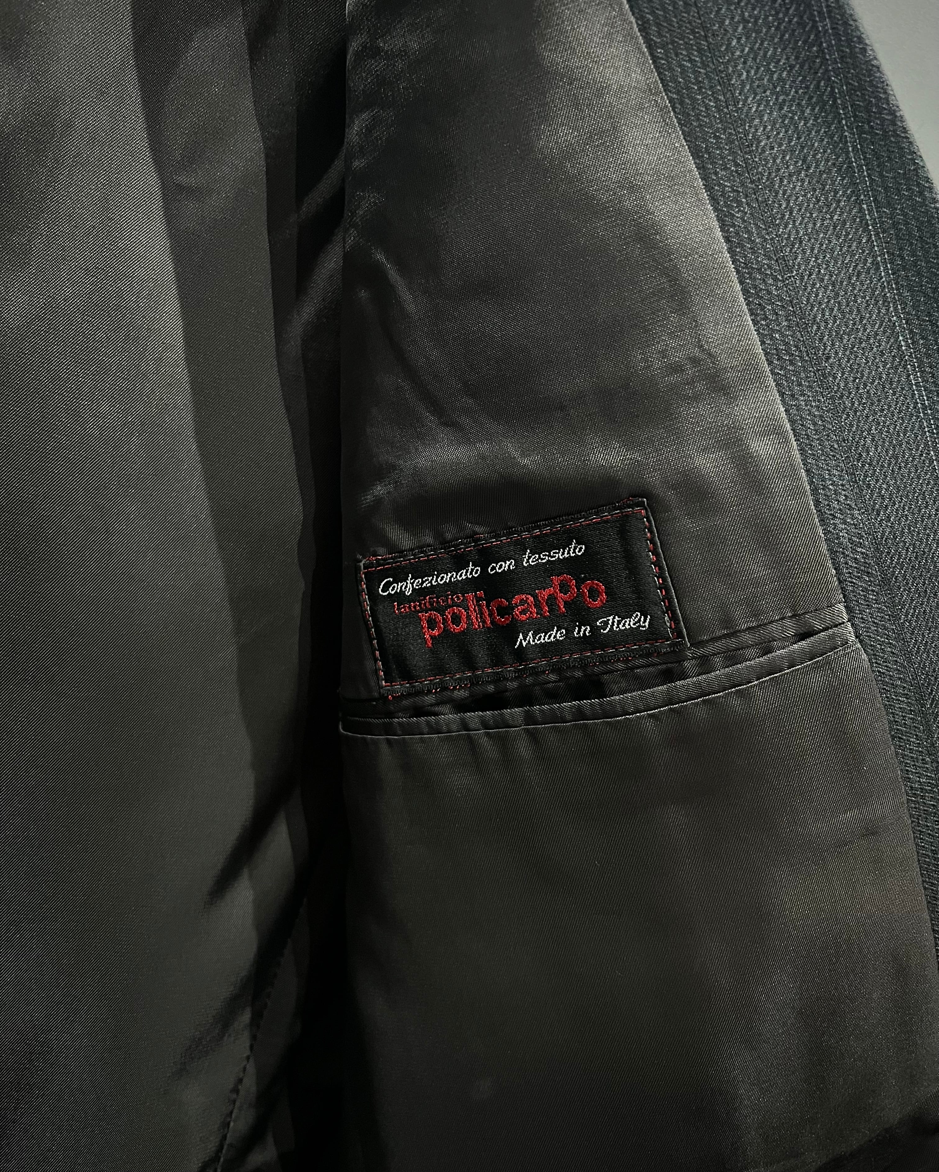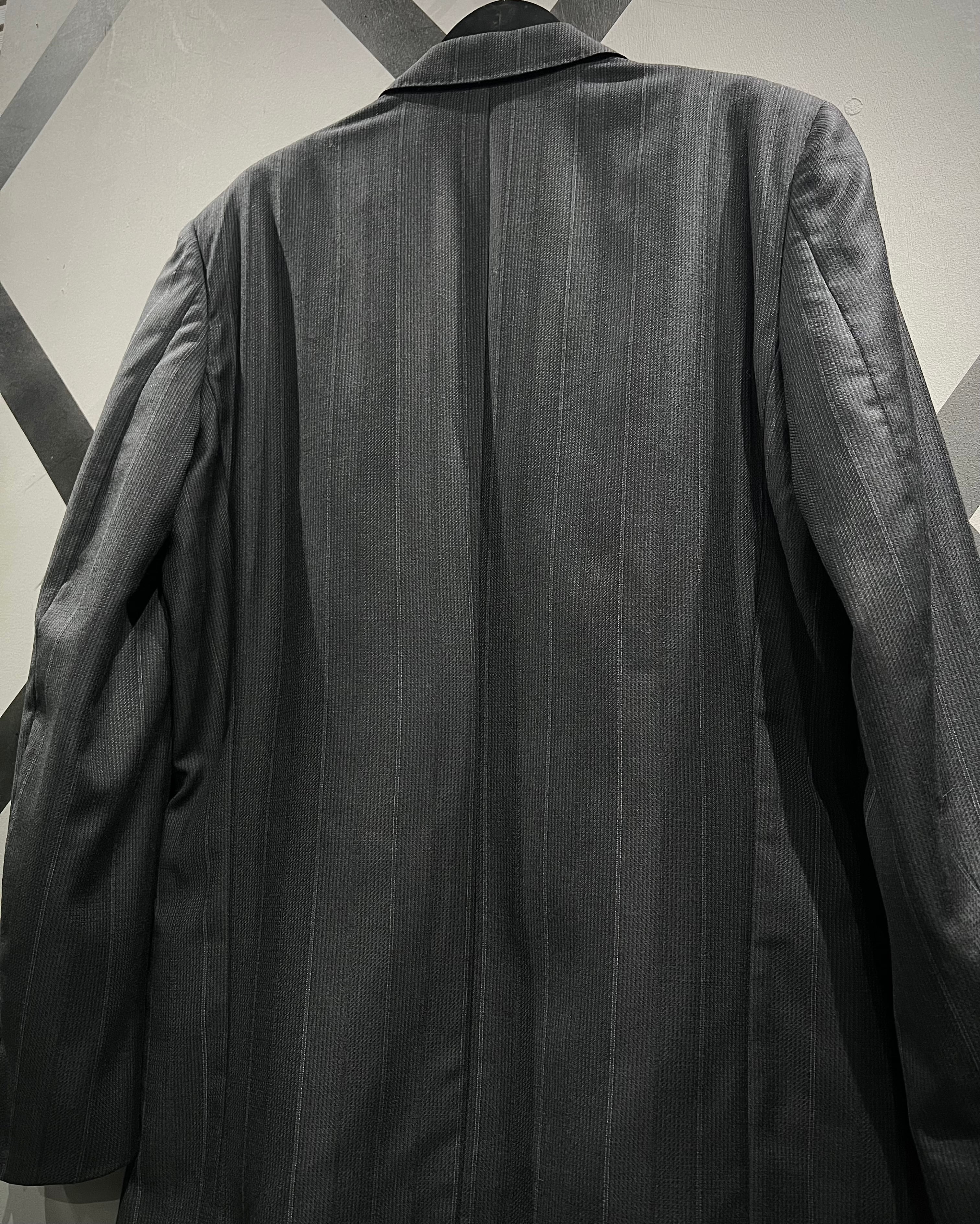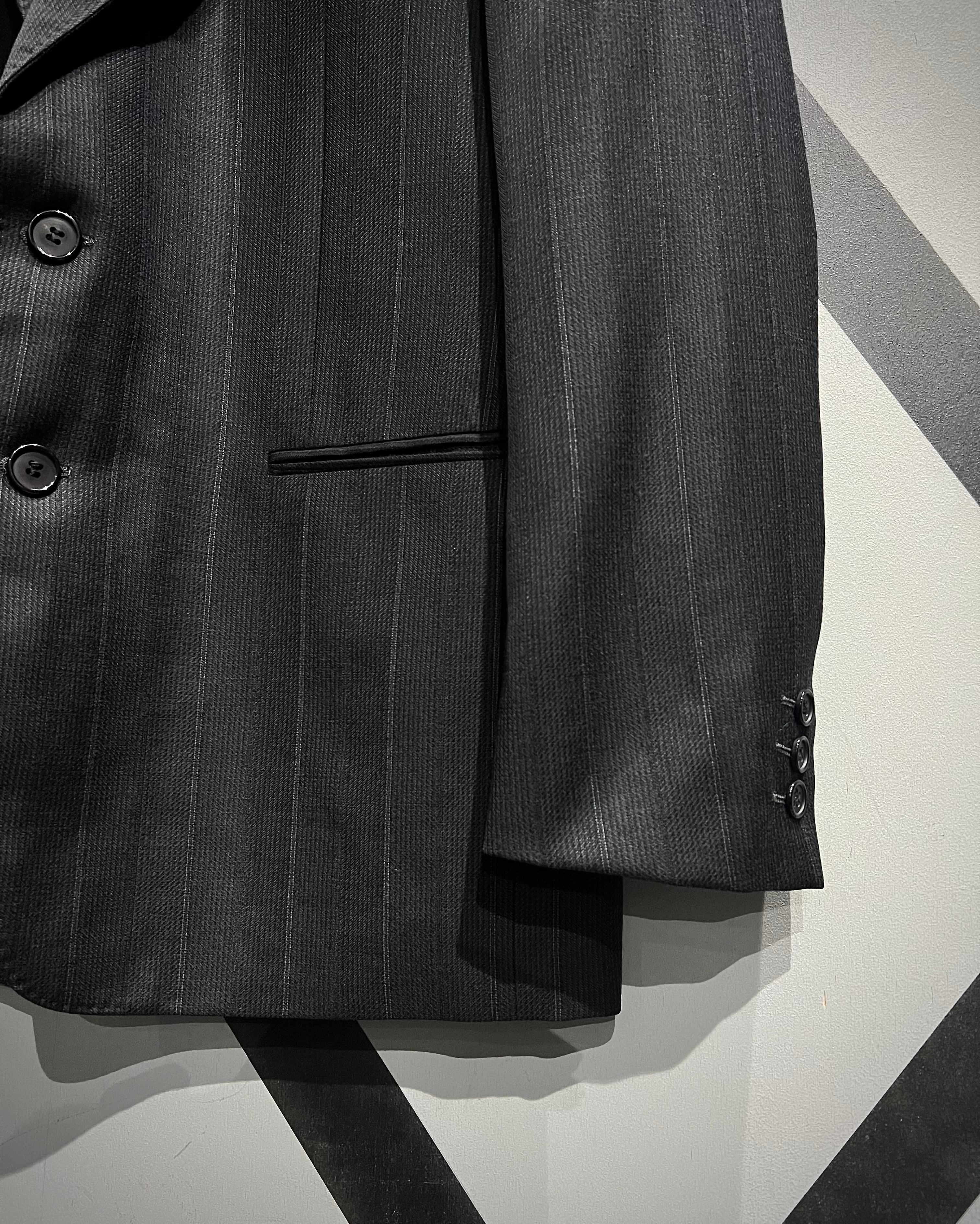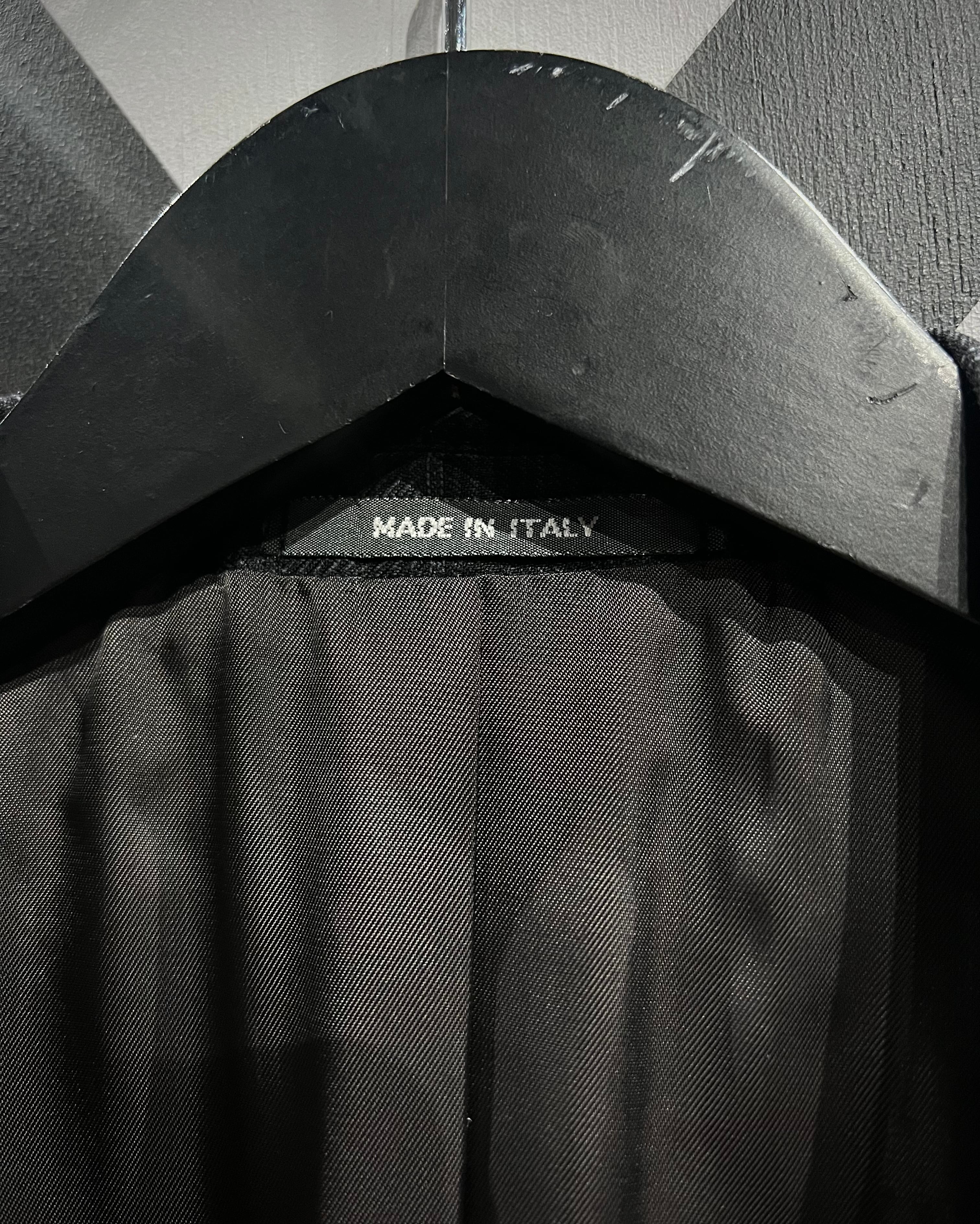 ピークドラペルにシングルブレストの仕様が特徴的で、クラシックな中にもしっかりとしたドレッシーさを感じさせるディテール。イタリアメイドらしい洗練された佇まいが際立ちます。