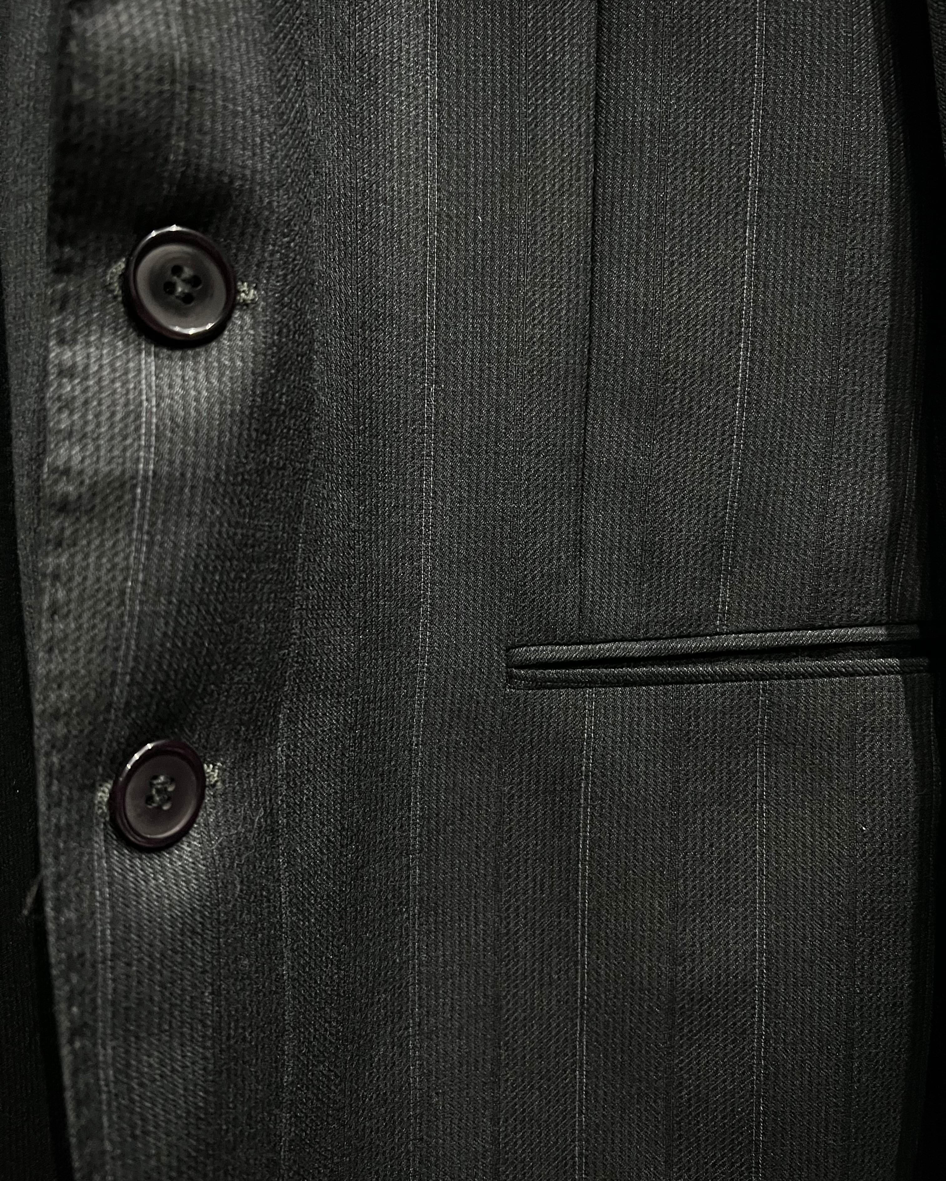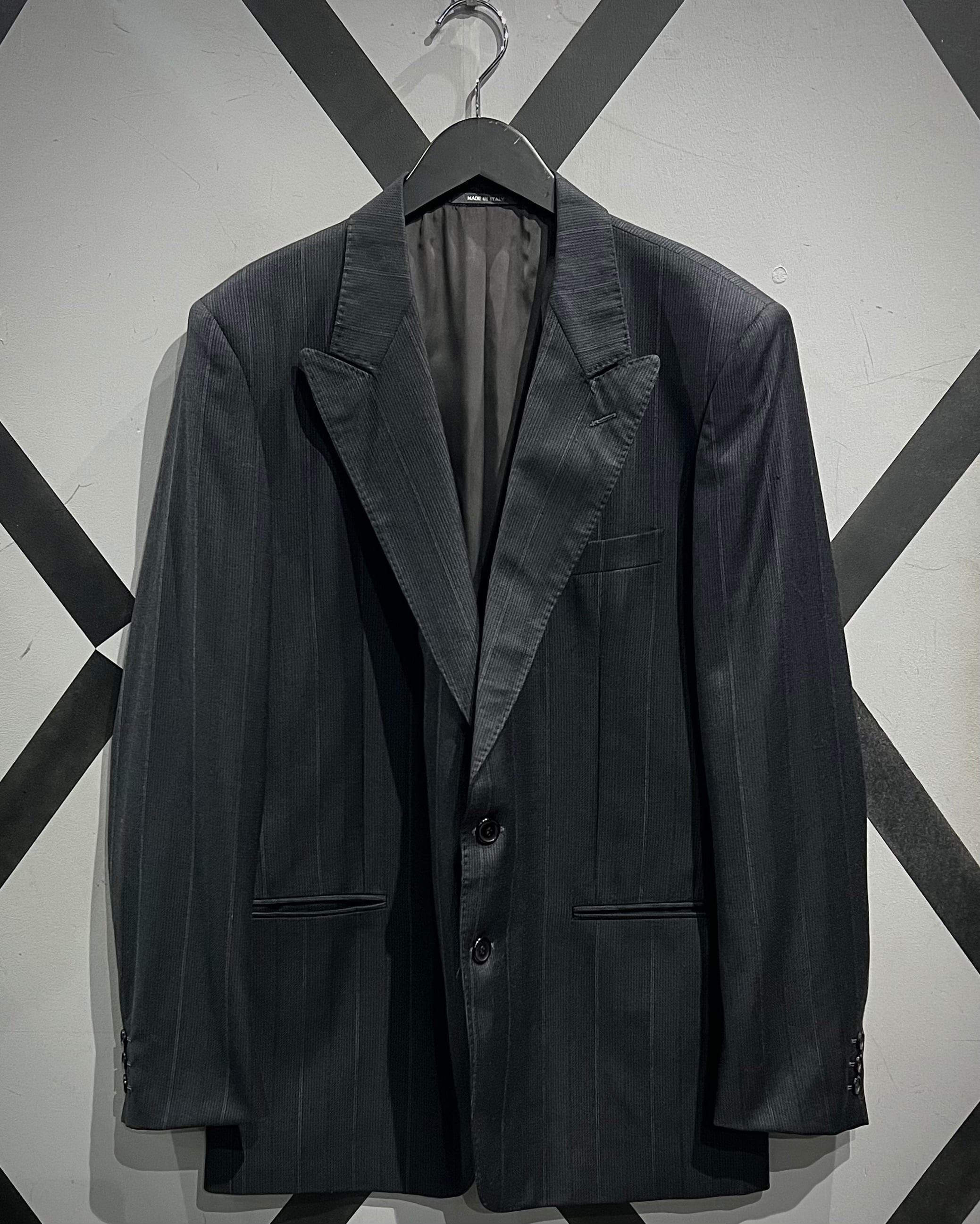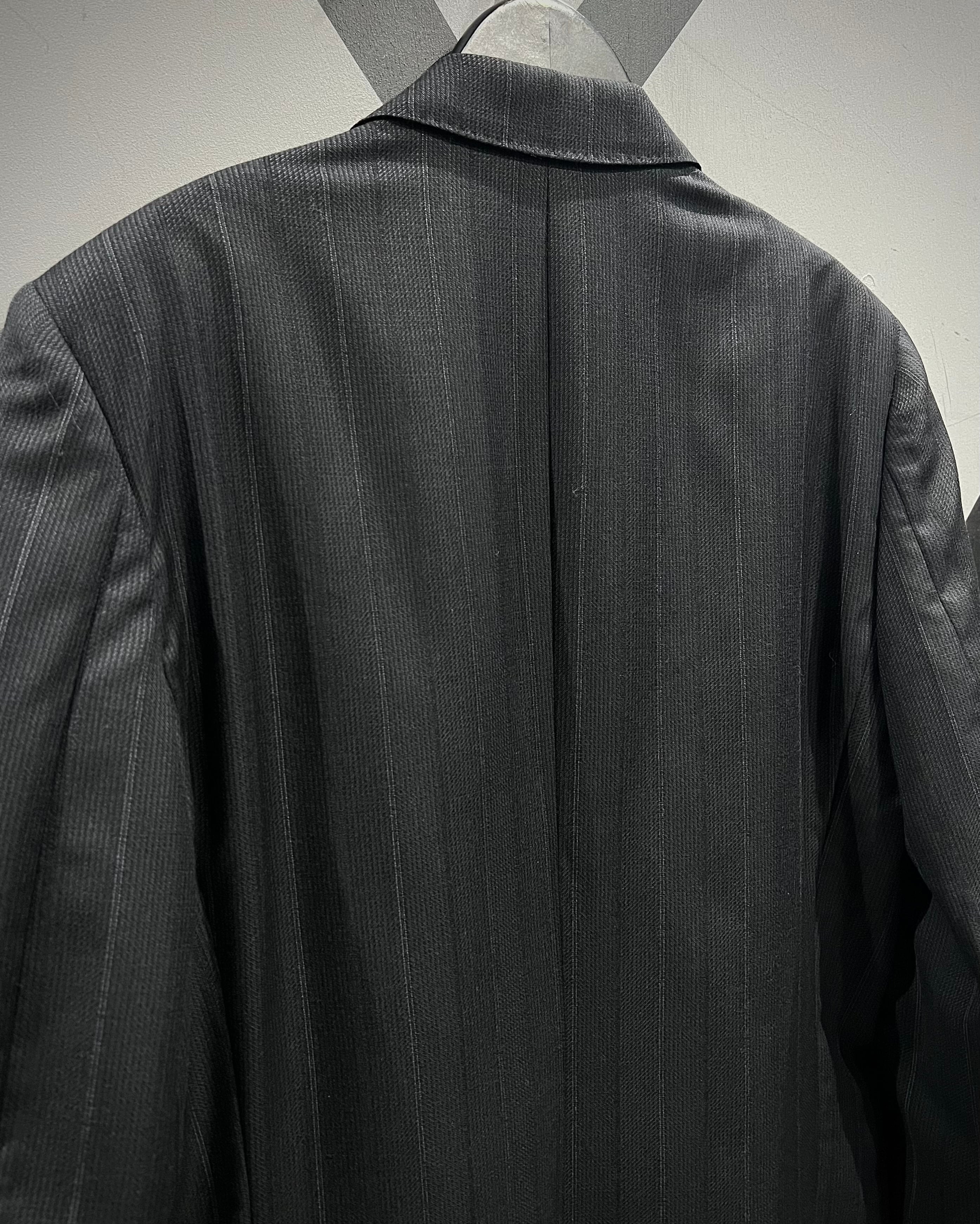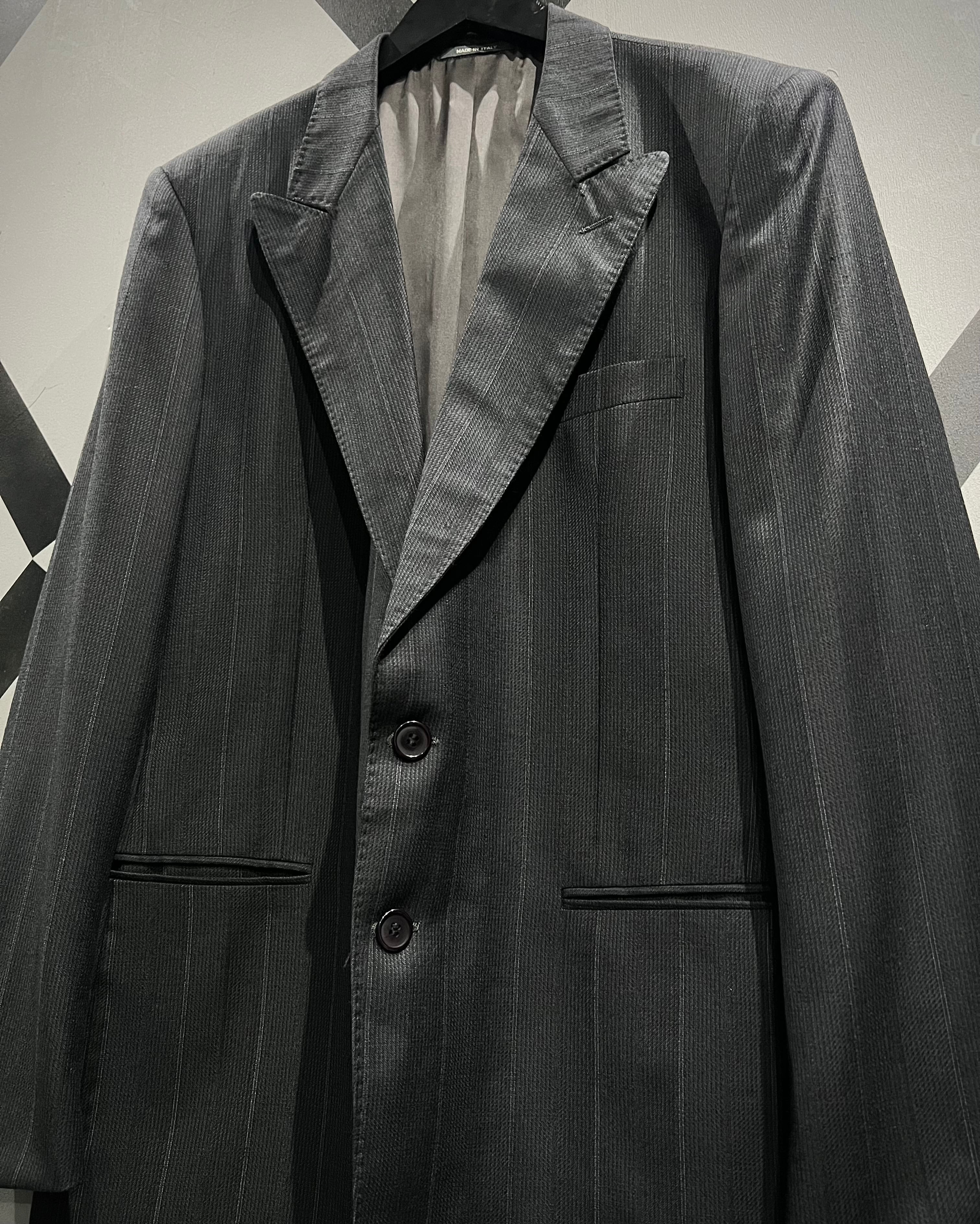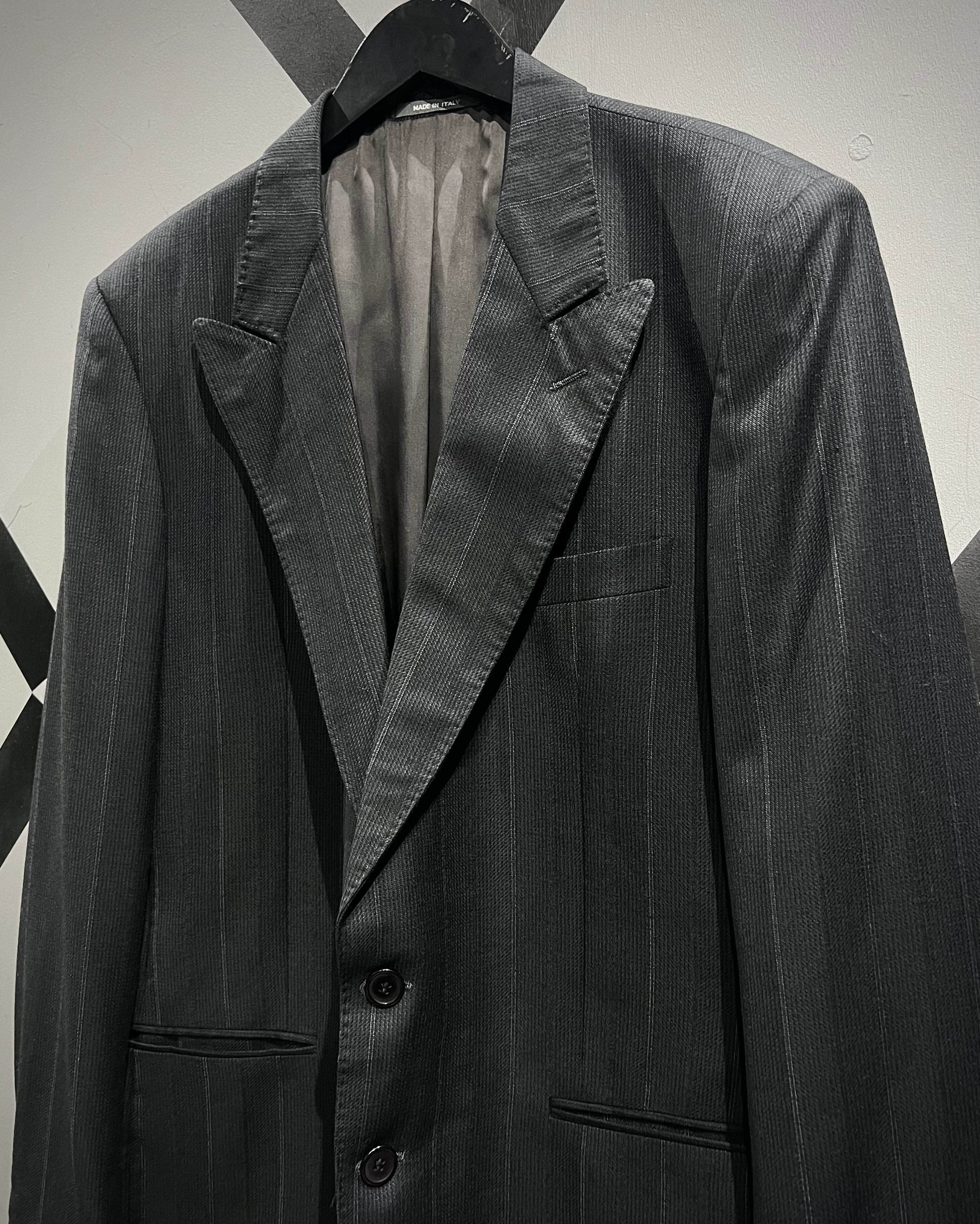 ピークドラペルにシングルブレストの仕様が特徴的で、クラシックな中にもしっかりとしたドレッシーさを感じさせるディテール。イタリアメイドらしい洗練された佇まいが際立ちます。