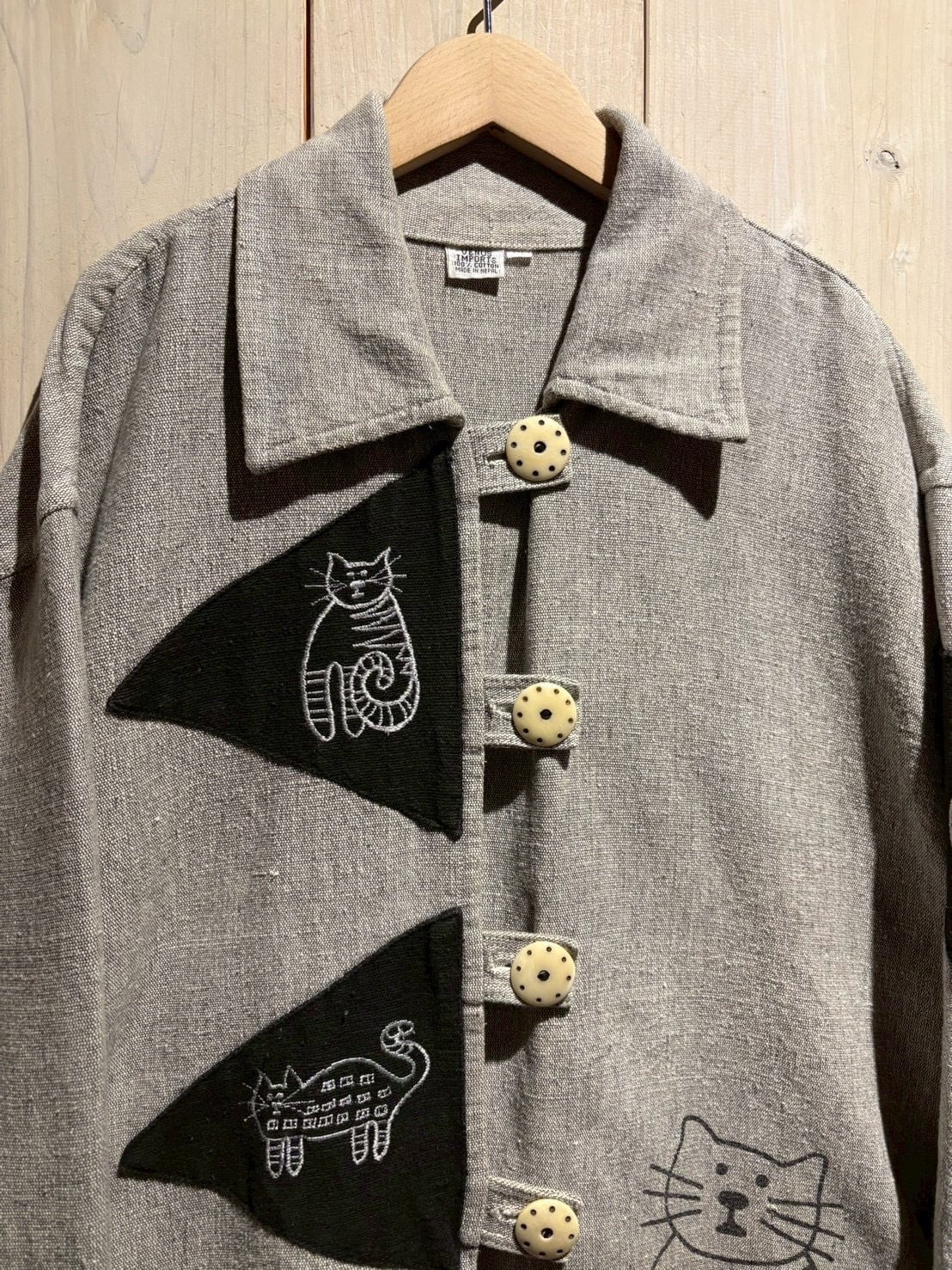ネパール製ならではのクラフト感と温もりを感じられる、猫モチーフのジャケットをご紹介いたします。