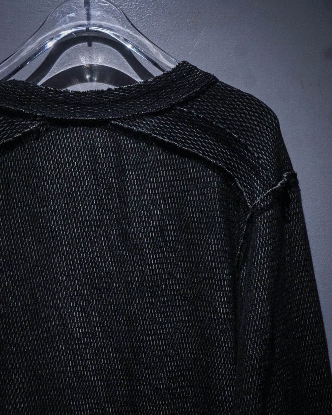 立体感のあるサーマルボディによって生み出された陰影のある表情に、インサイドアウトやカットオフといったディテールによって、ゴシックかつ退廃的な空気感をさらに底上げ。