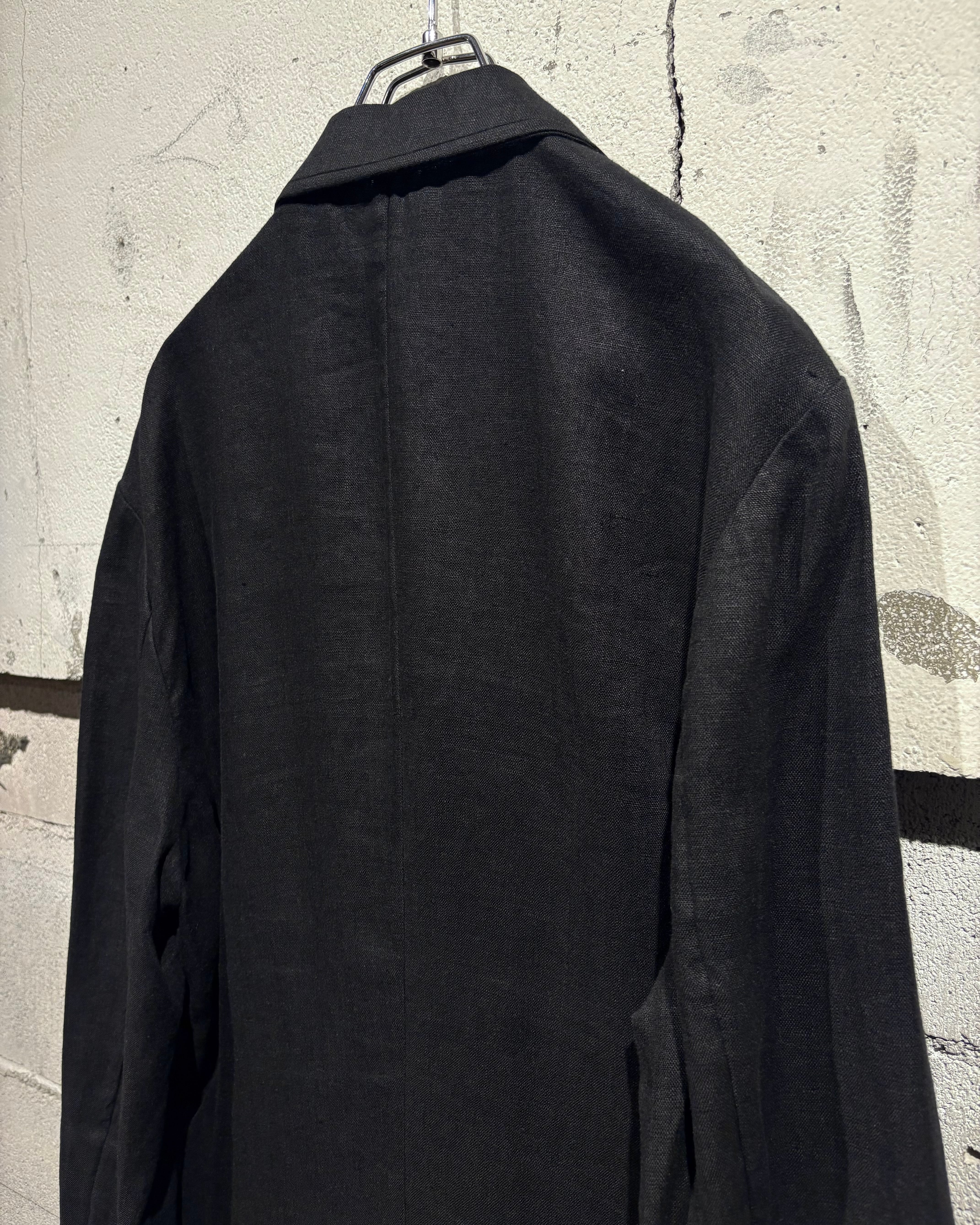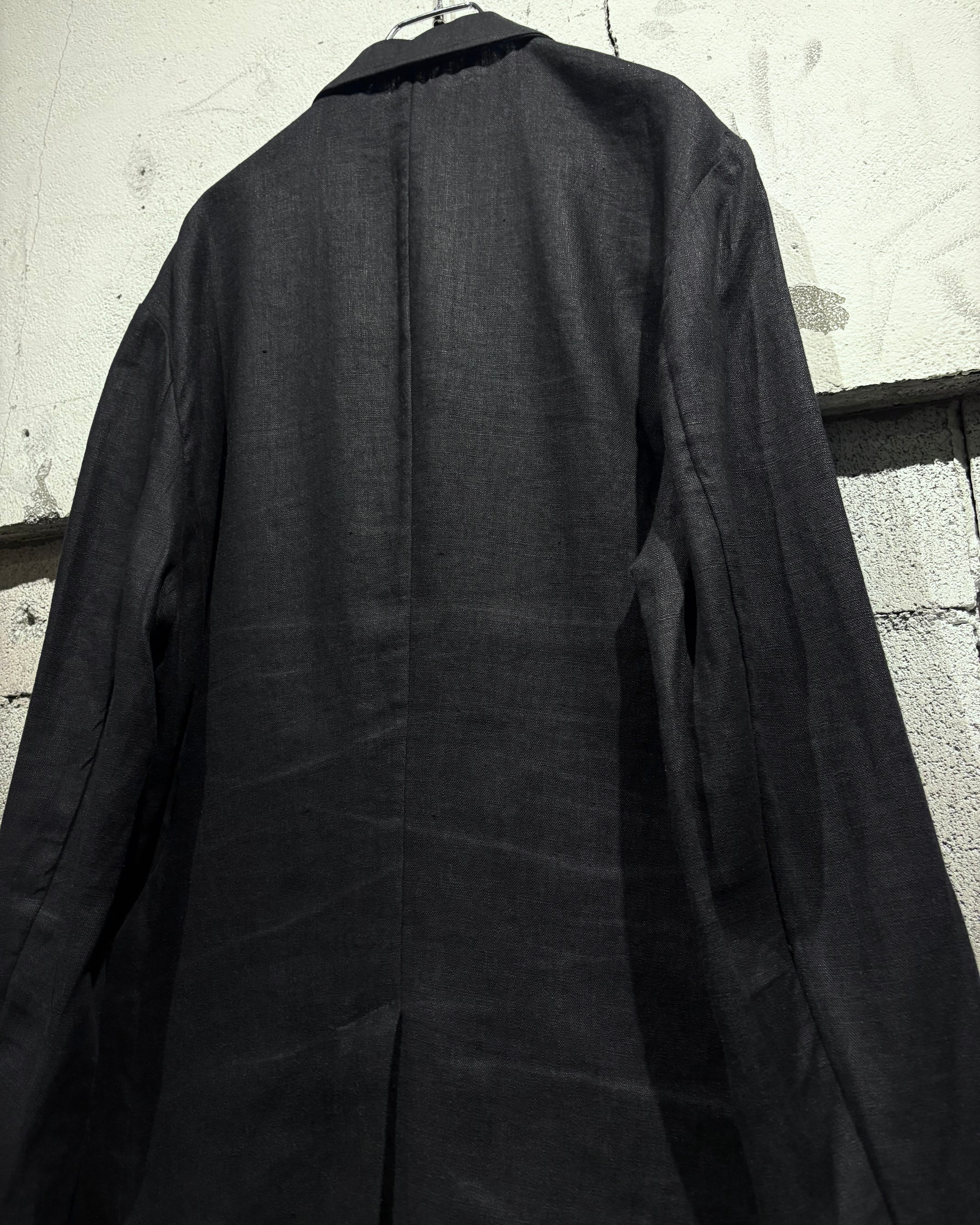 ヴィンテージリネンの中では稀少な、ブラックカラーで仕立てられた1着。リネン特有の軽やかでドライな質感を持ちながらも、深みのある色味によって落ち着きとシックなムードを両立しています。