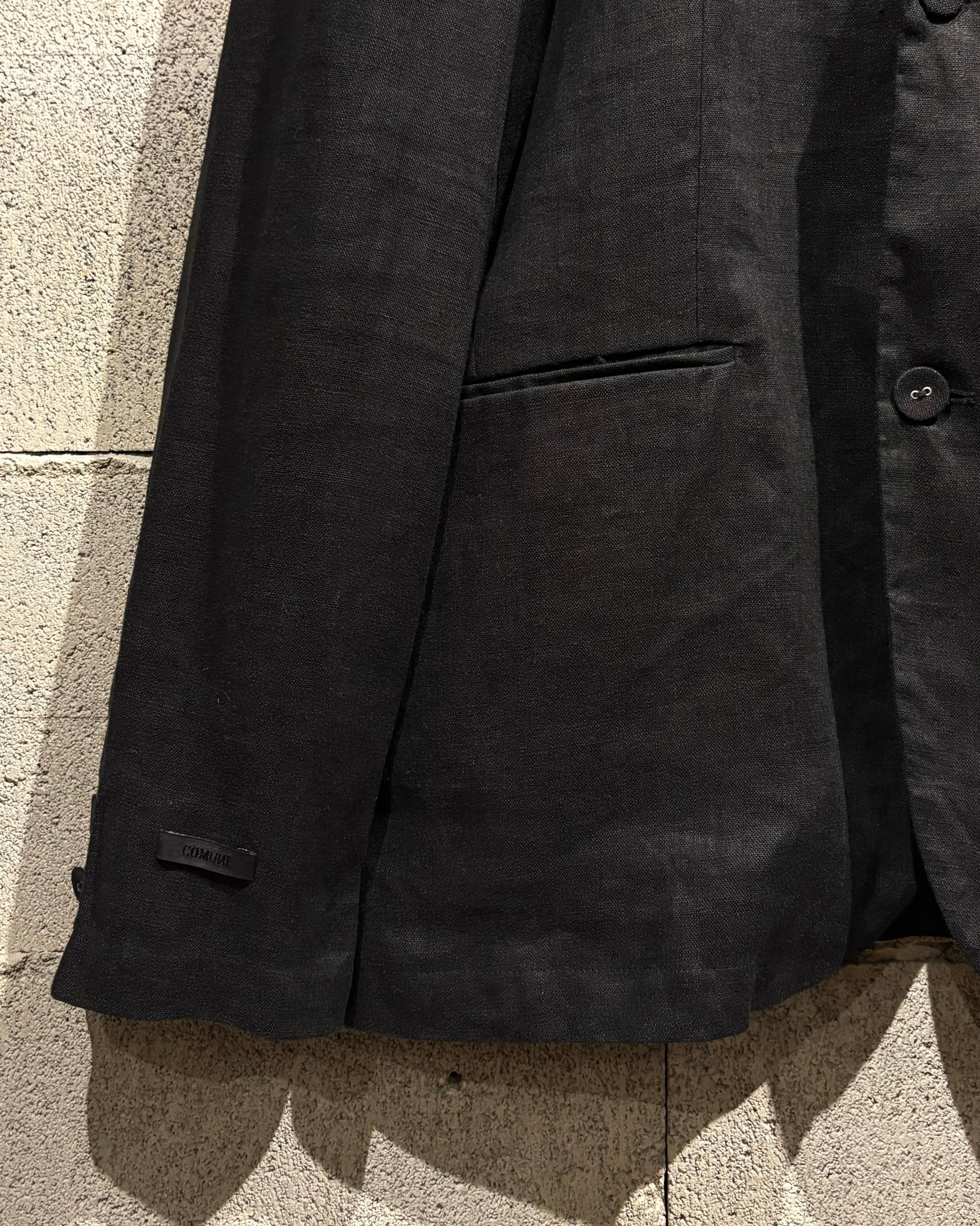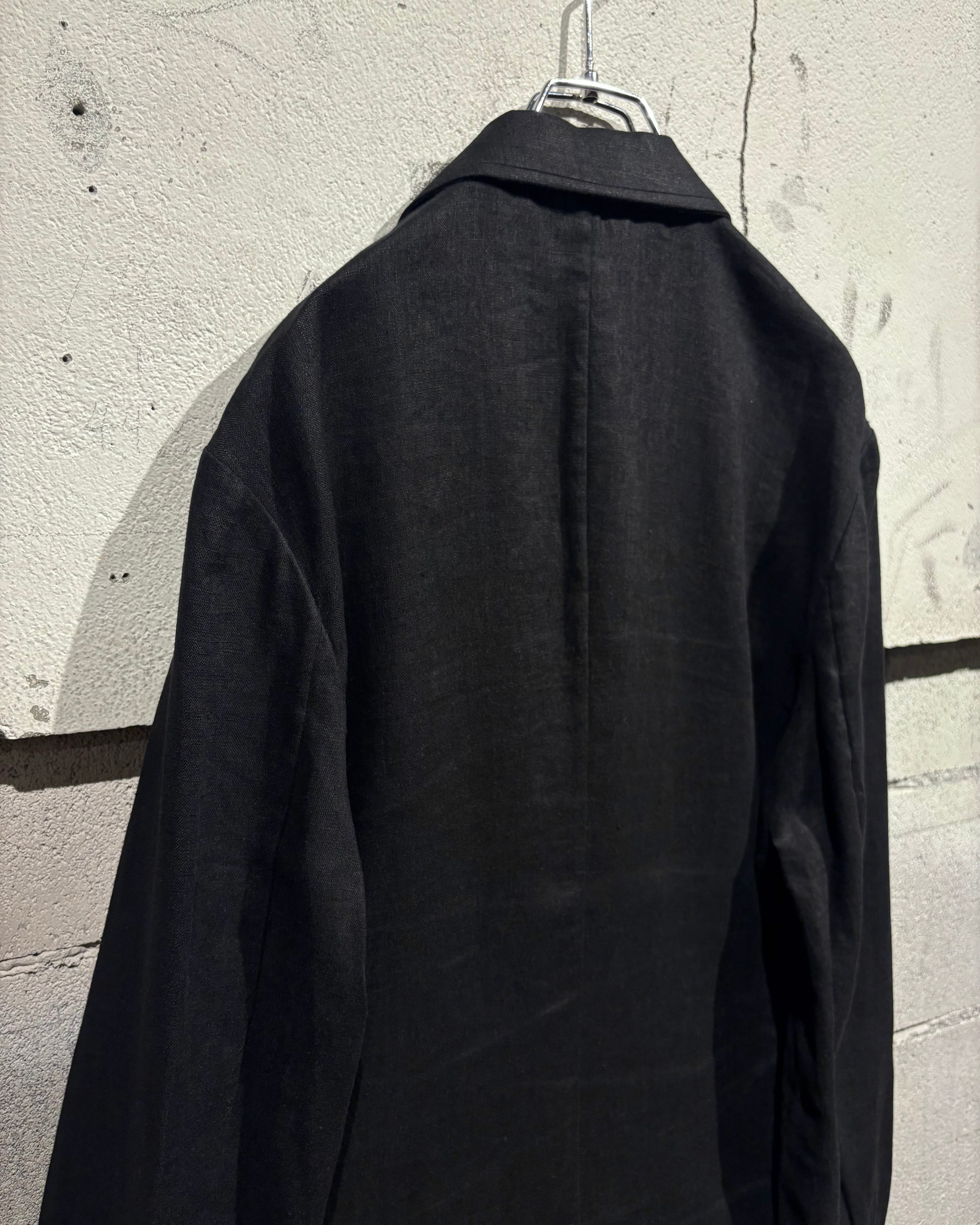 リネン素材ならではの通気性と軽さにより、気温の高いシーズンでも快適な着用感を実現。肩パッドを排しており、堅くなりすぎずリラックスした雰囲気で羽織れるのも魅力かと。