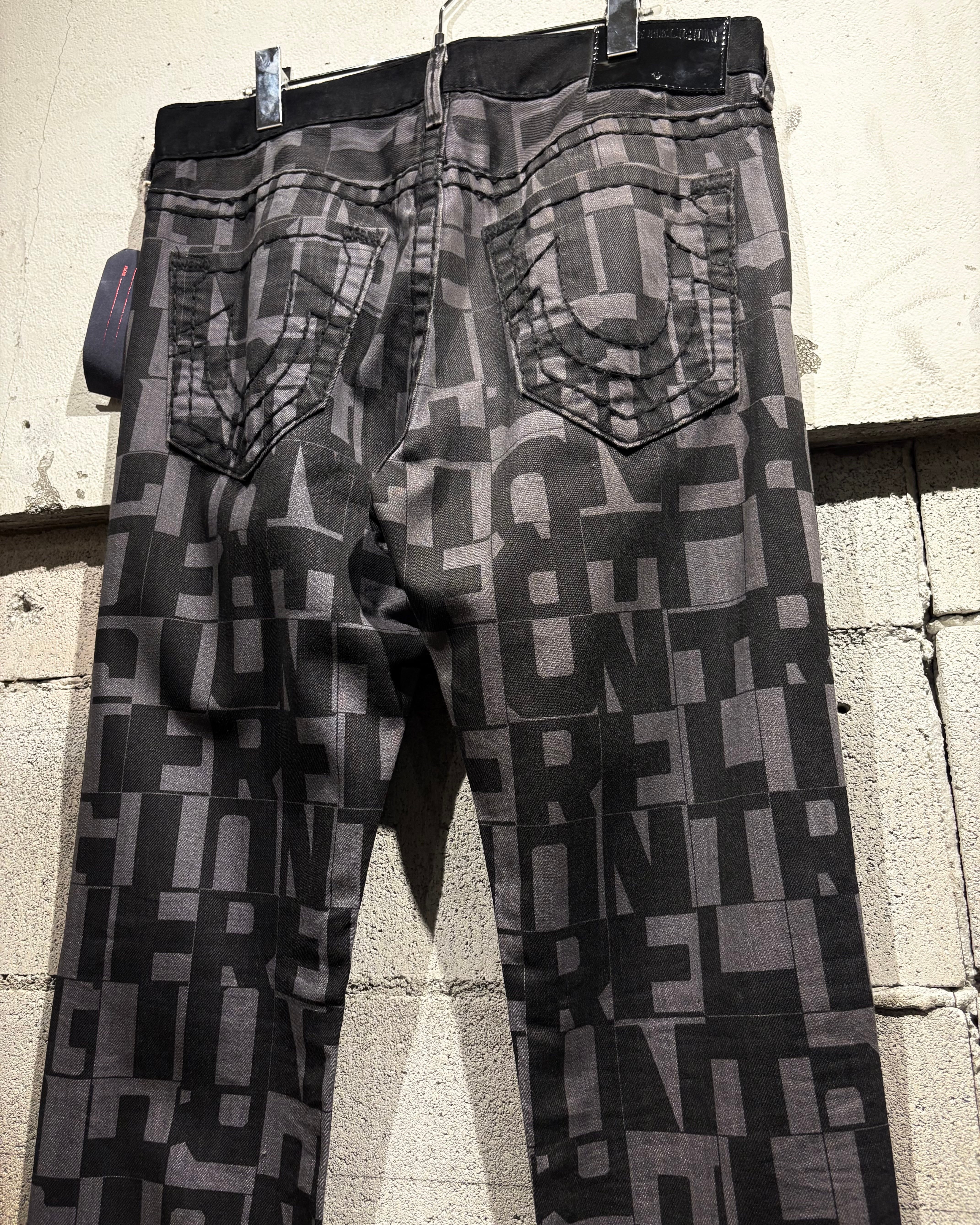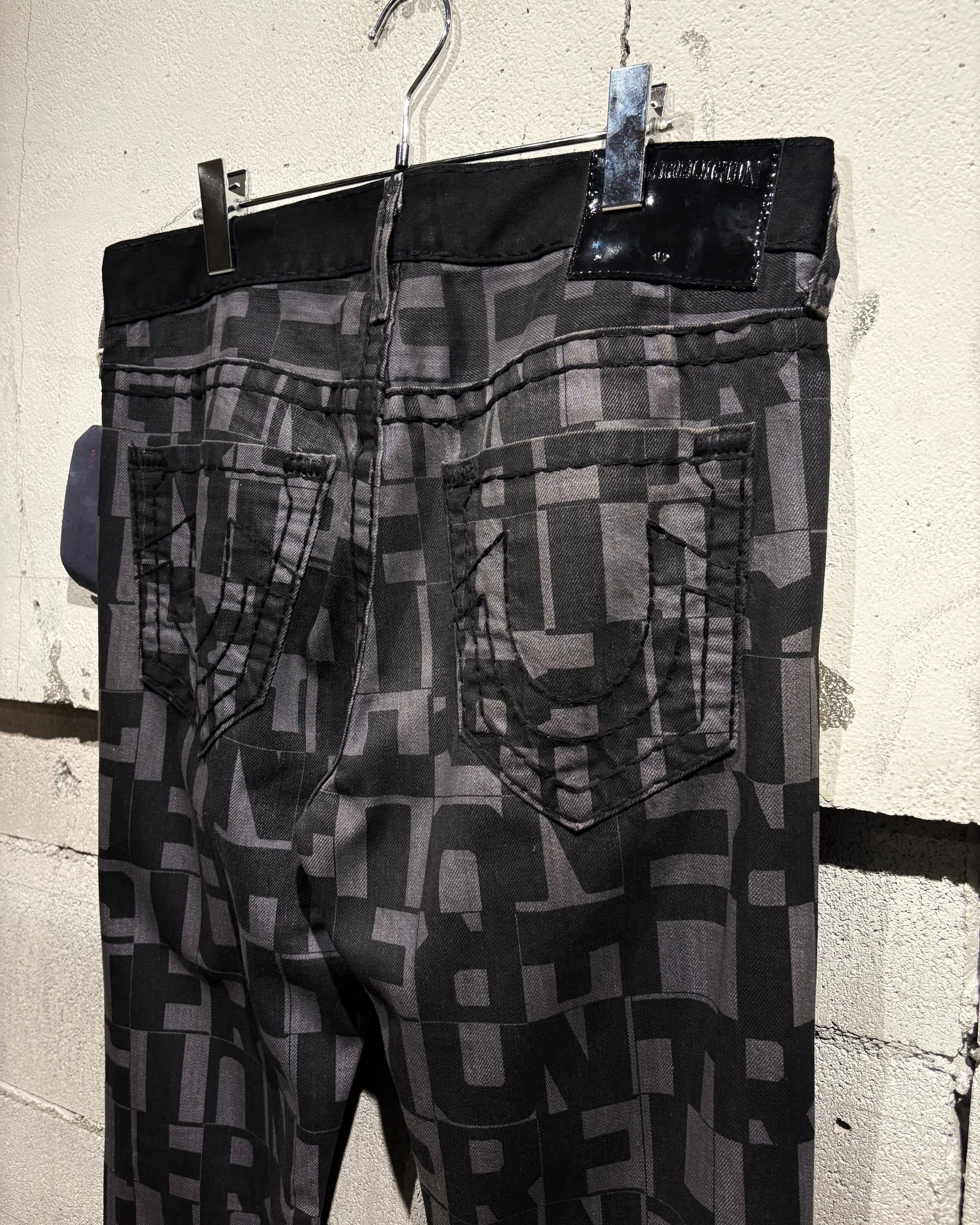 バックポケットにはブランドを象徴する蹄鉄モチーフの刺繍を配置。TRUE RELIGIONらしいアイコニックなディテールをしっかりと押さえつつ、ブランドロゴの総柄とのバランスも秀逸です。
