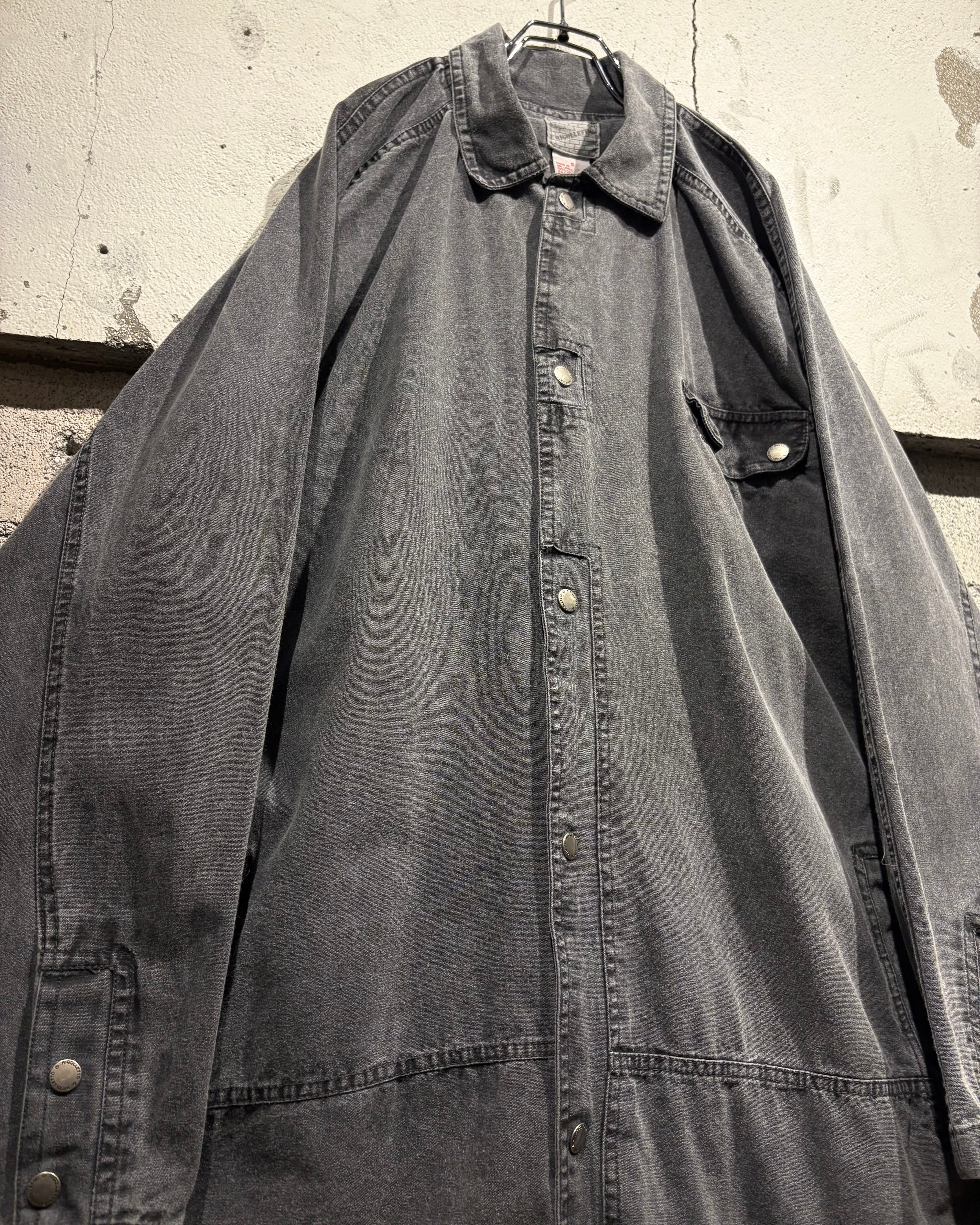 ダック地ながら薄手かつ、着用を重ねたことで生まれた柔らかさがあり、着心地も良好。ラグランスリーブに、全体的に落ち感のあるルーズなシルエットで、羽織るだけでスタイリングに雰囲気を加えてくれます。