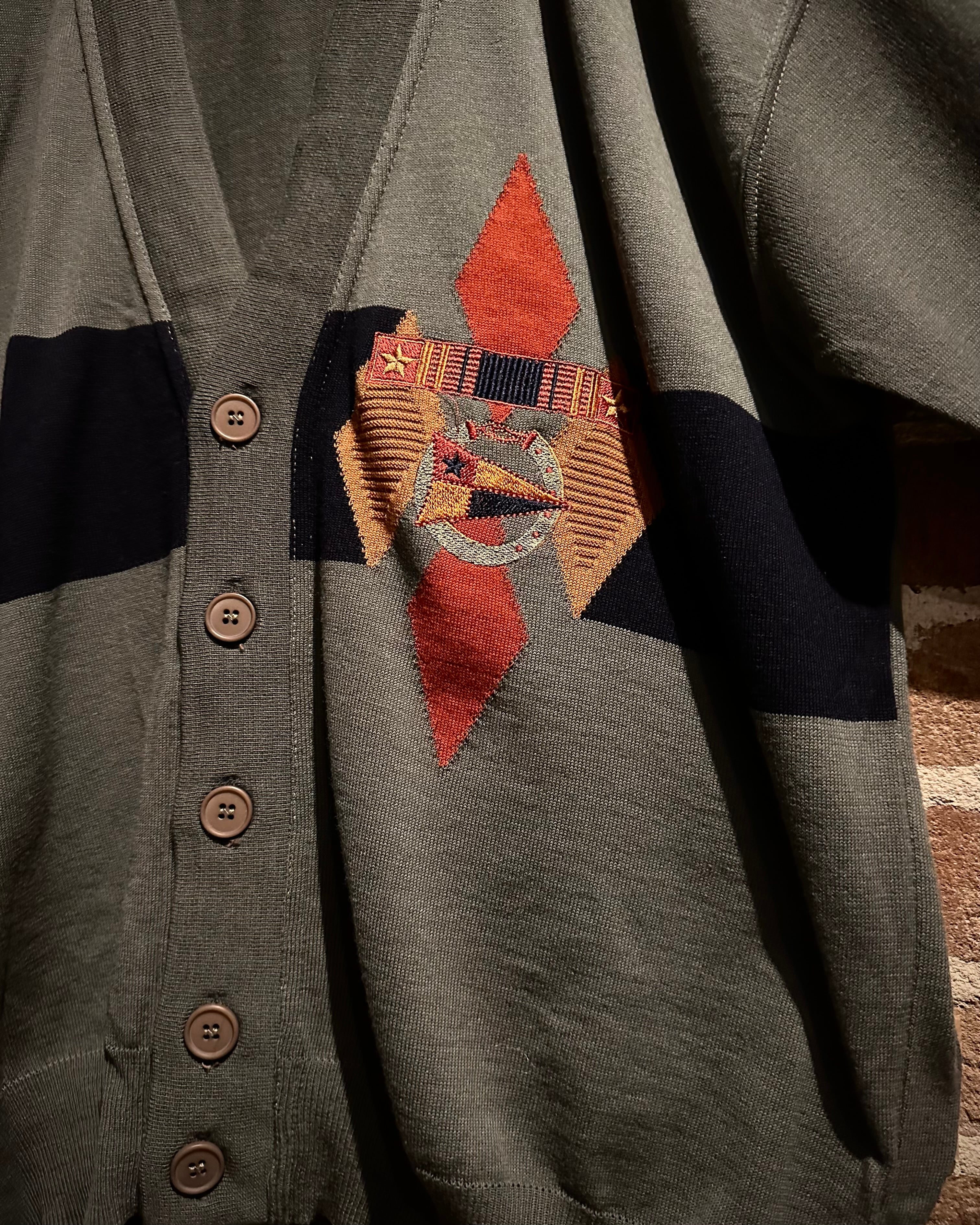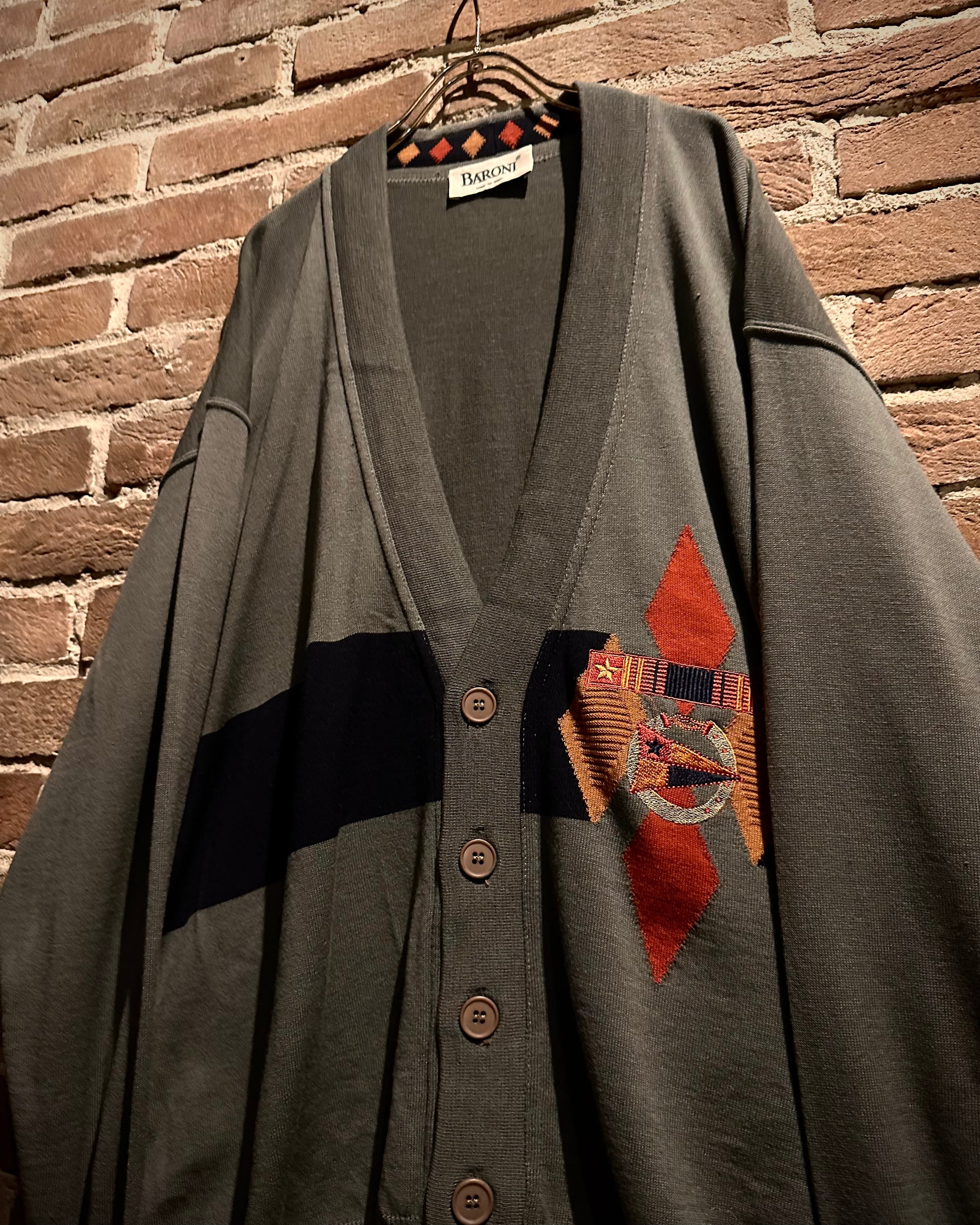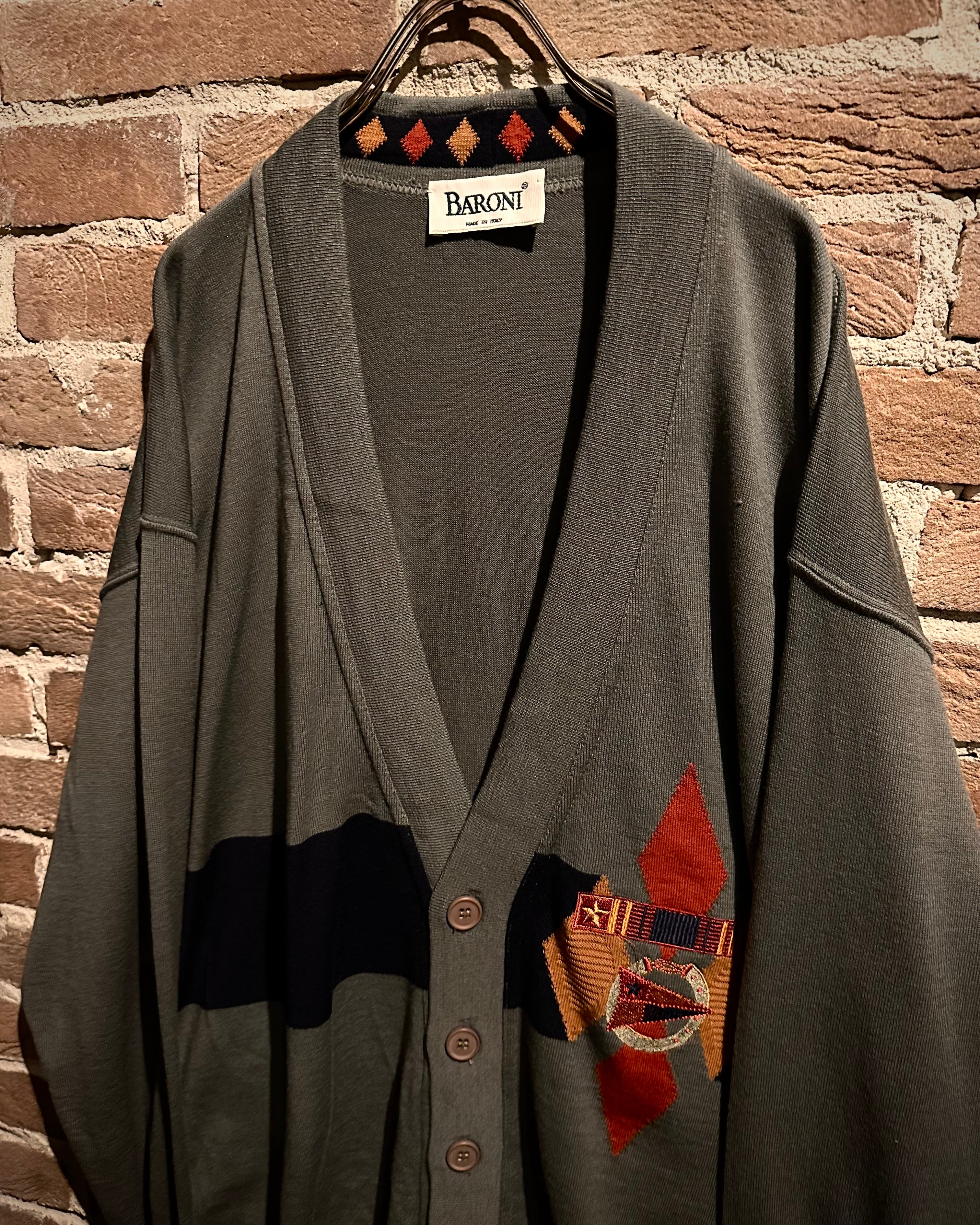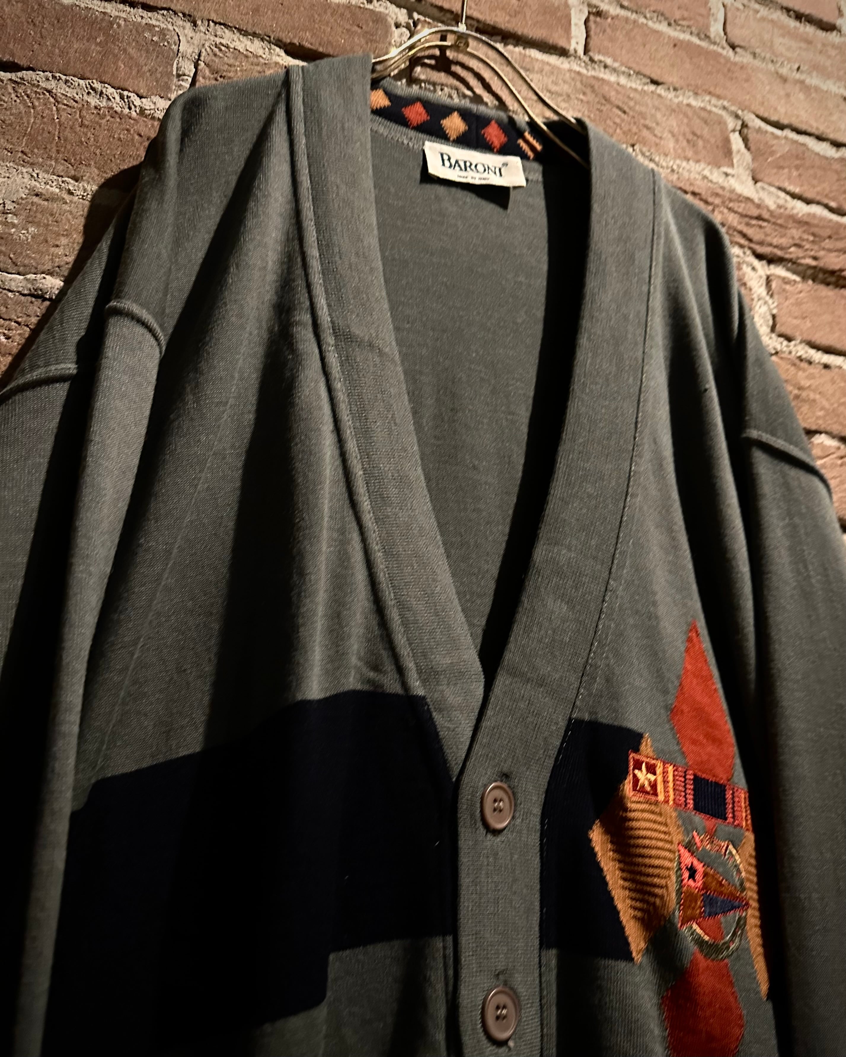 ピュアバージンウールを使用した、ライトな質感のニットファブリックをボディに使用し、胸元に刺繍デザインを配したイタリア製のニットカーディガン。